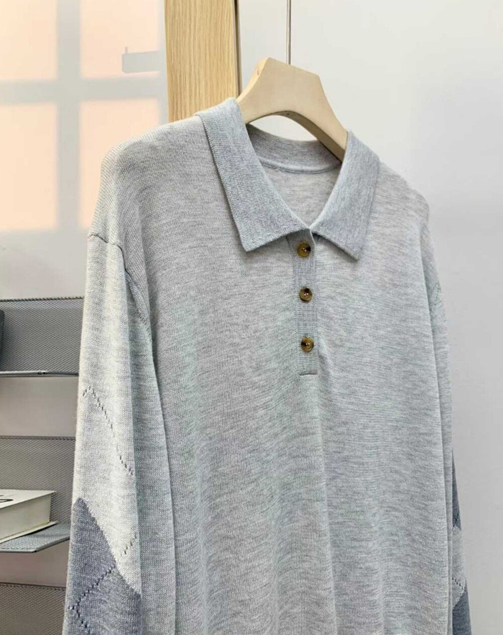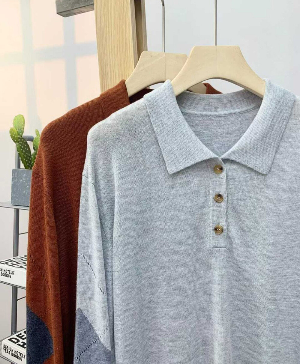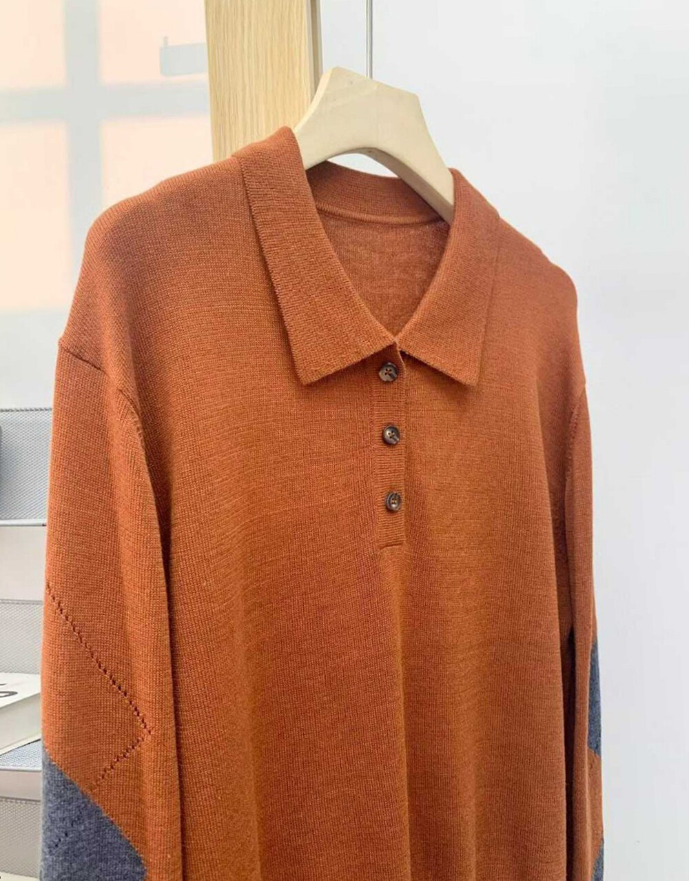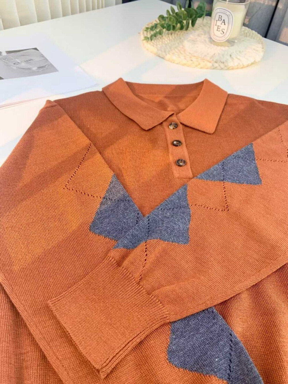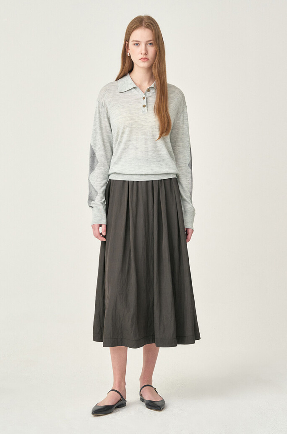 THE CASHMERE. Wool Argyle Sleeve Knit Top