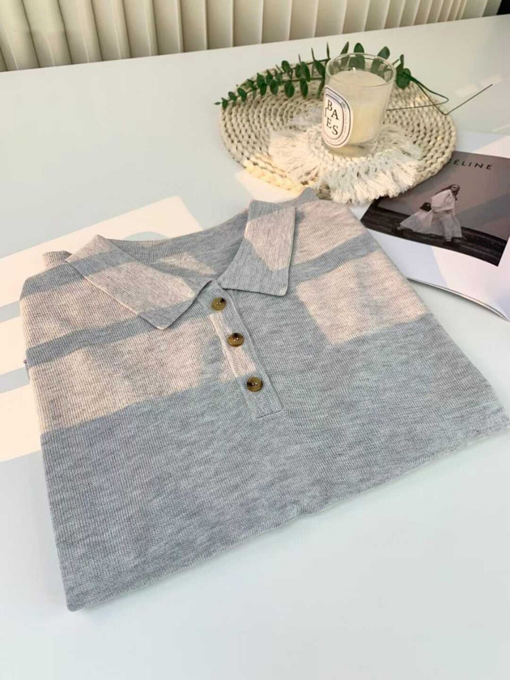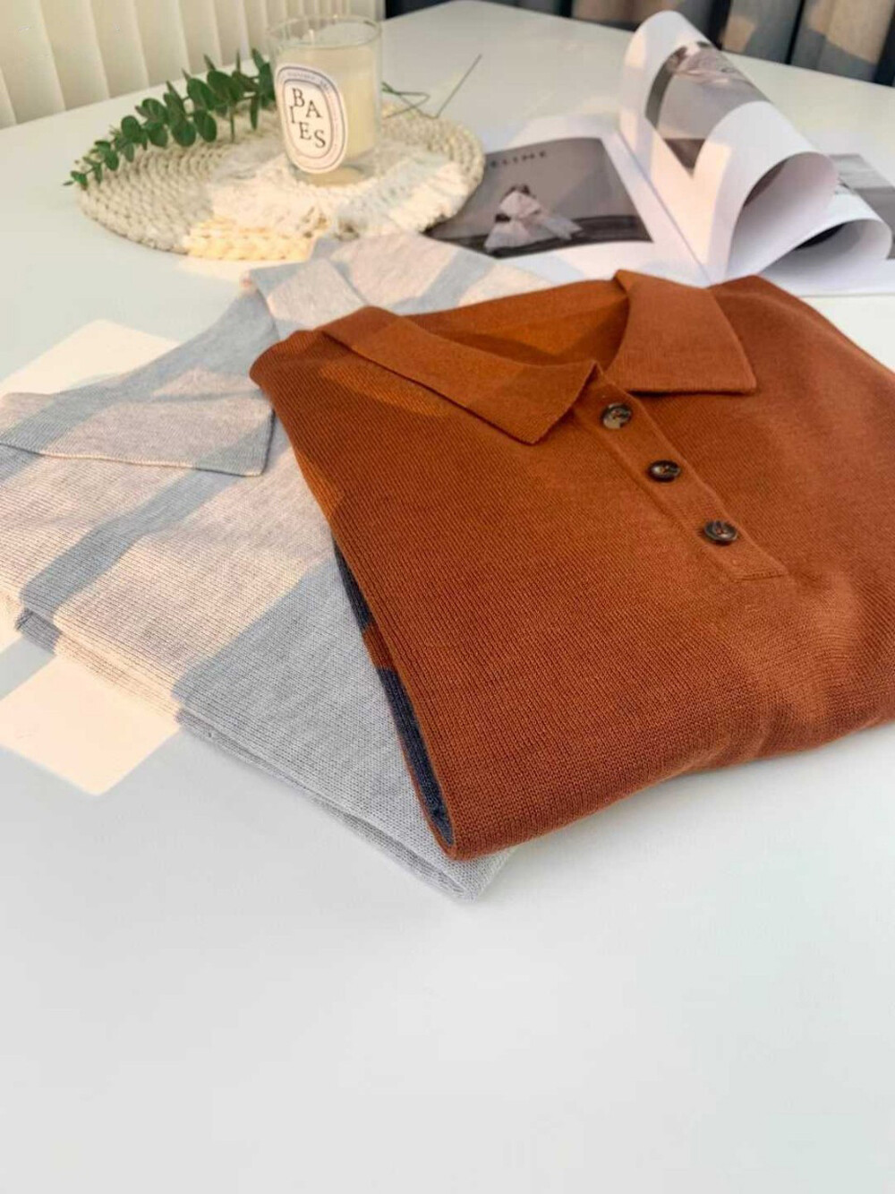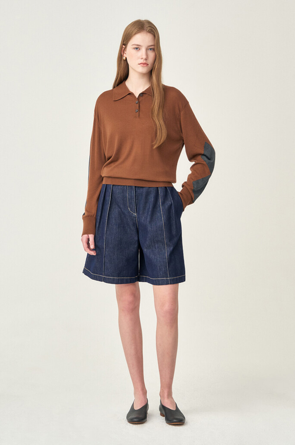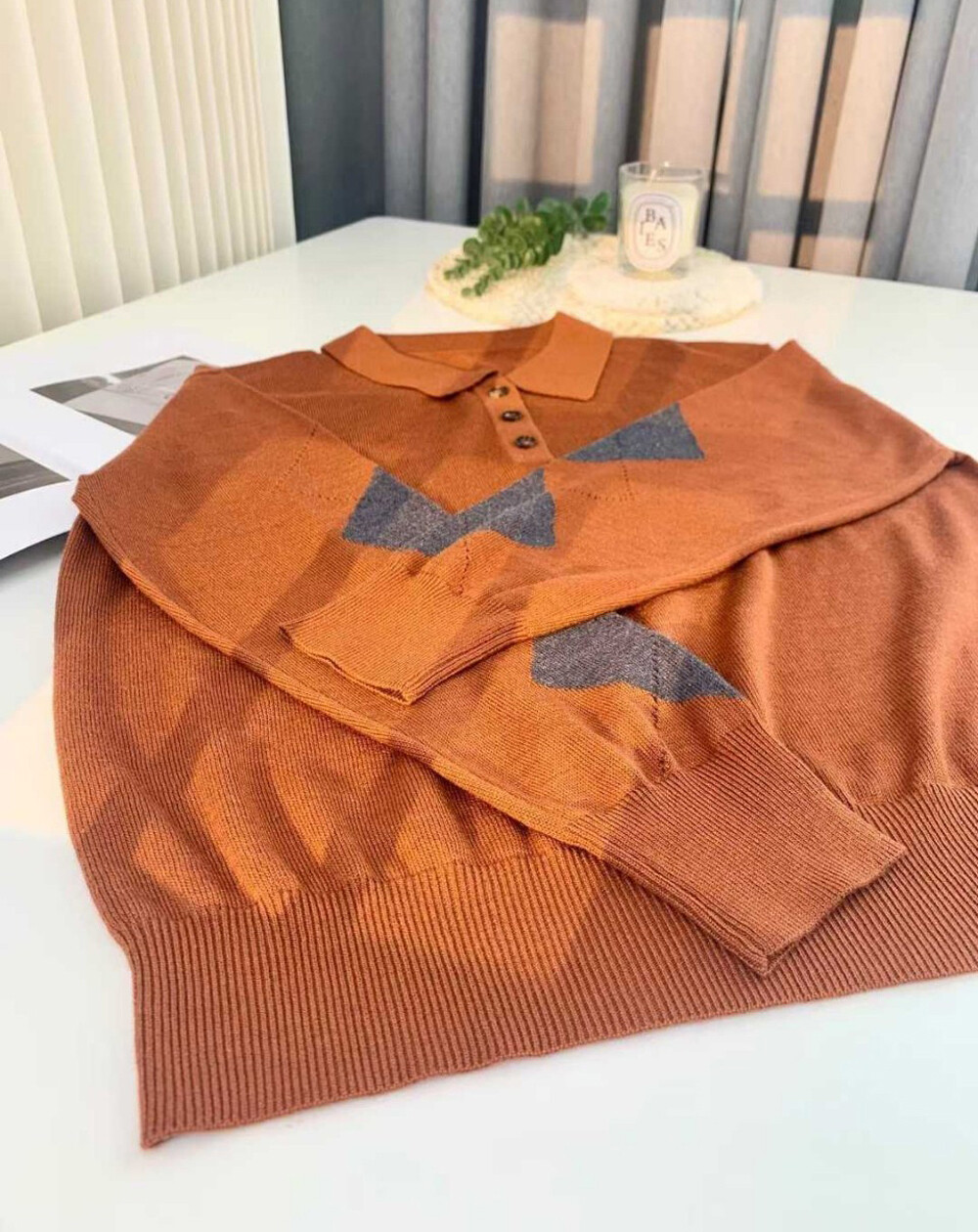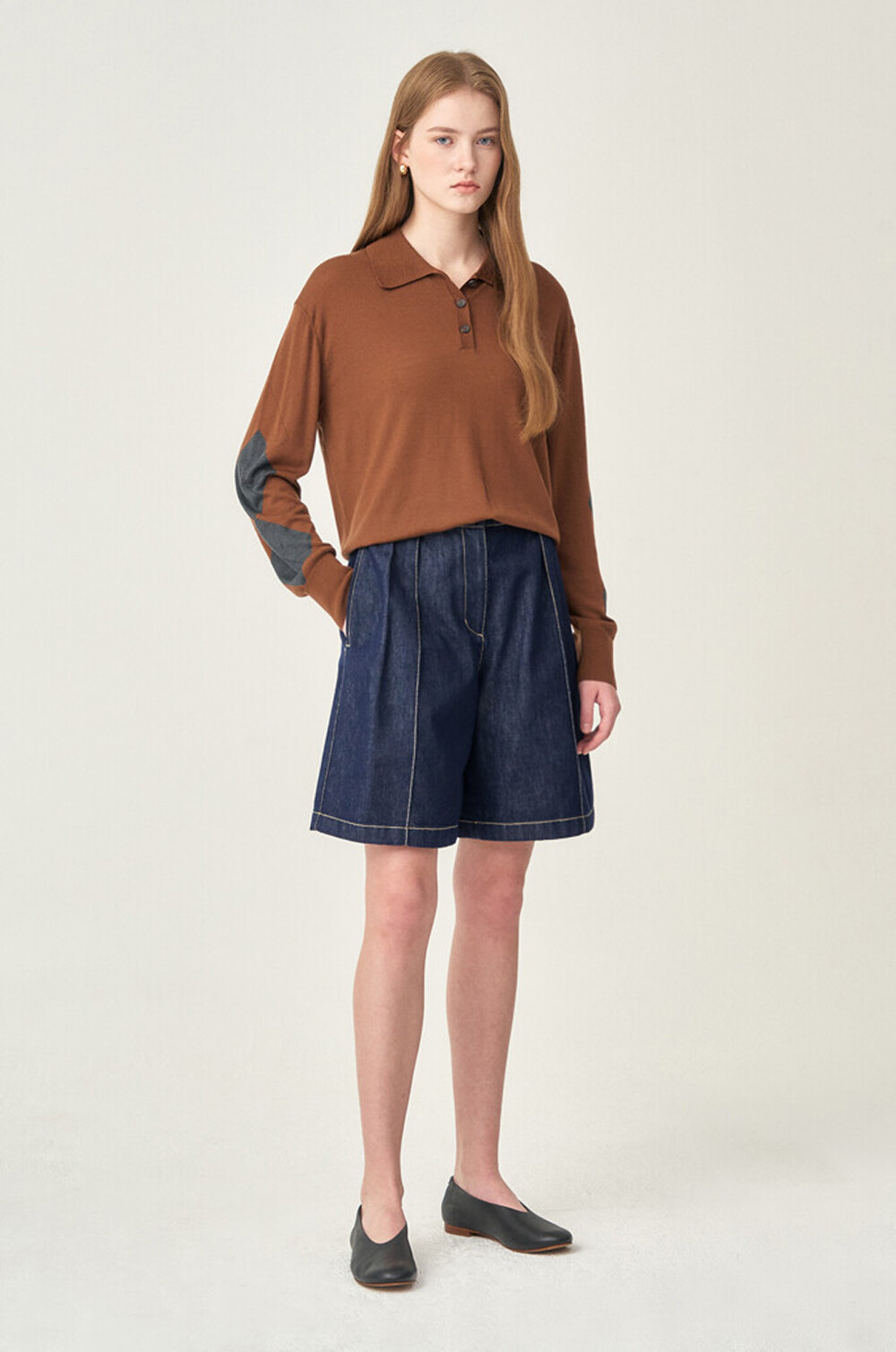 THE CASHMERE. Wool Argyle Sleeve Knit Top