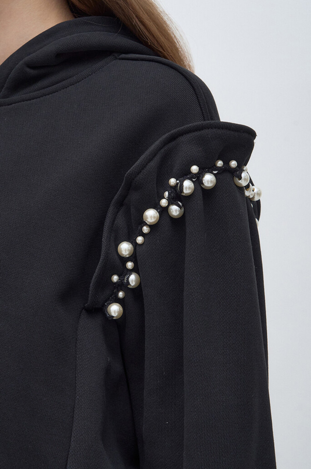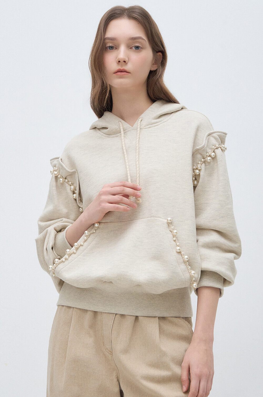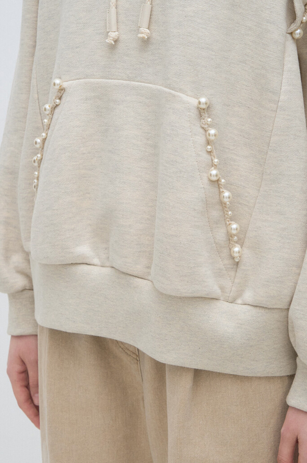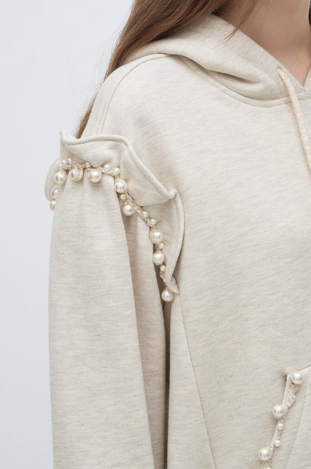 랑방컬렉션 펄 트리밍 후드 스웻셔츠
