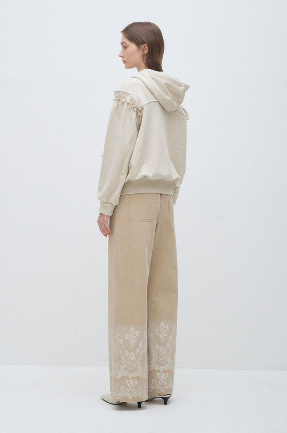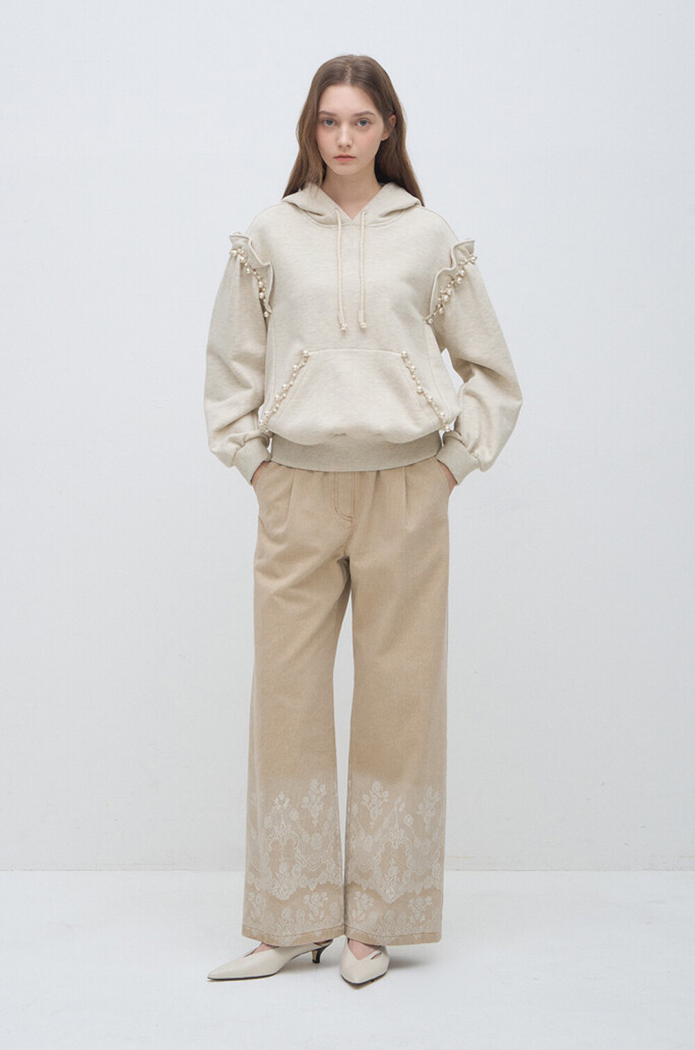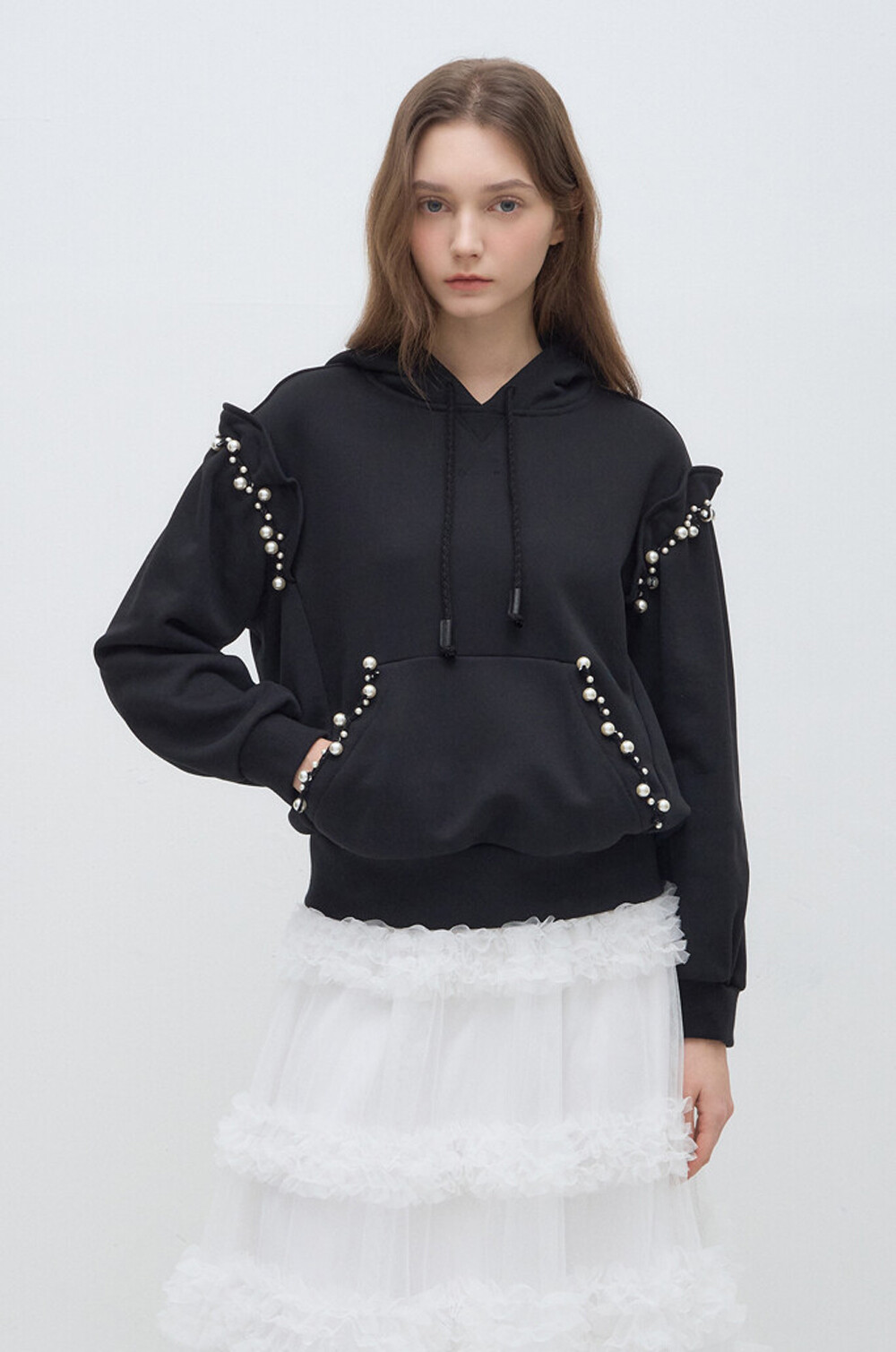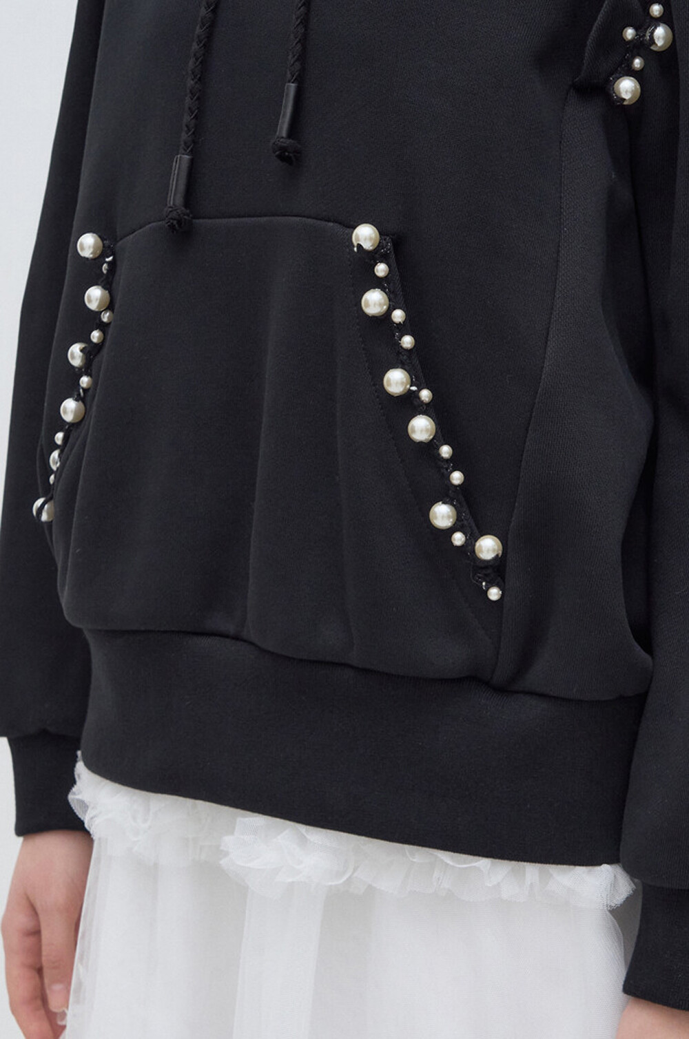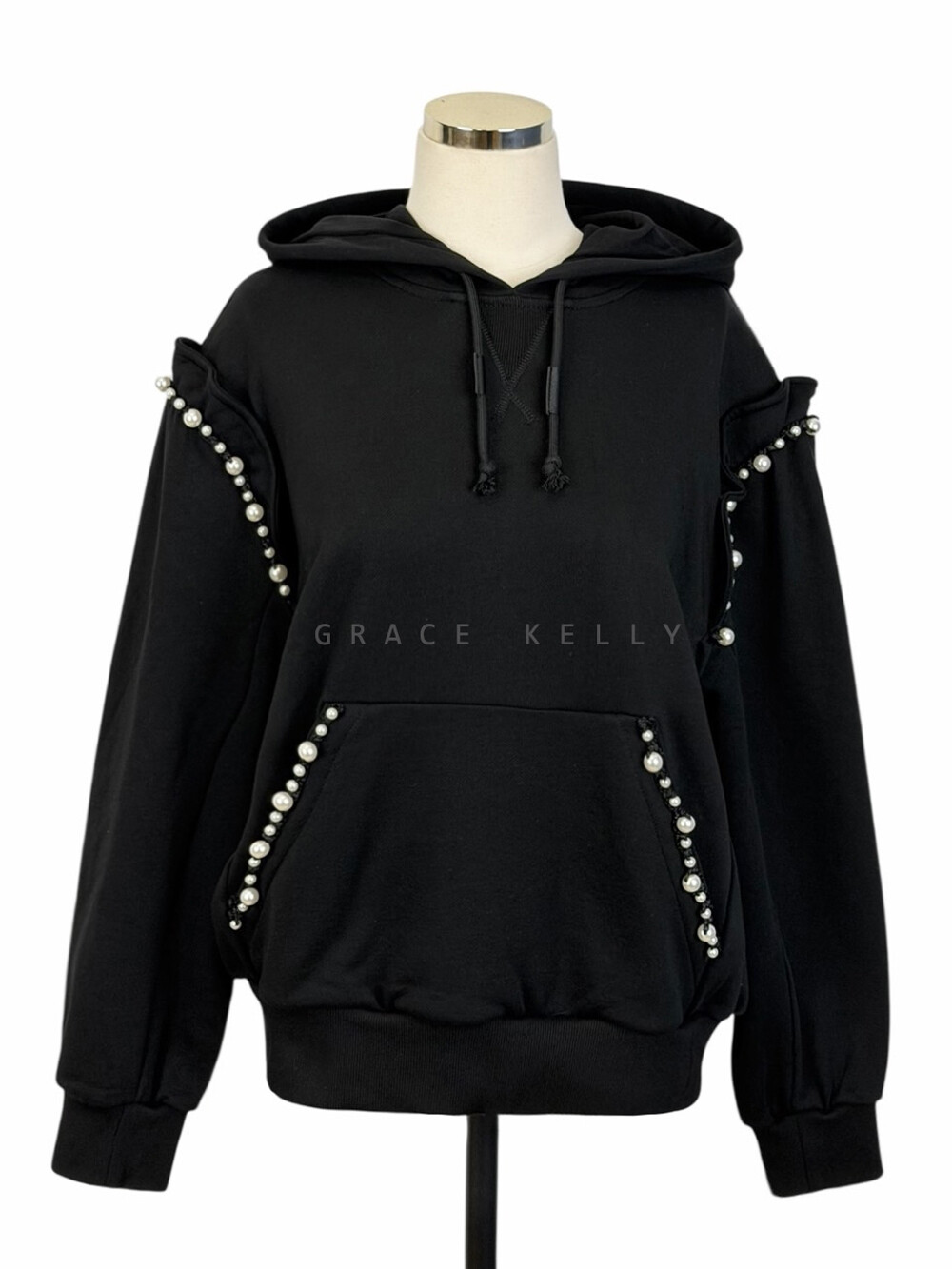 랑방컬렉션 펄 트리밍 후드 스웻셔츠