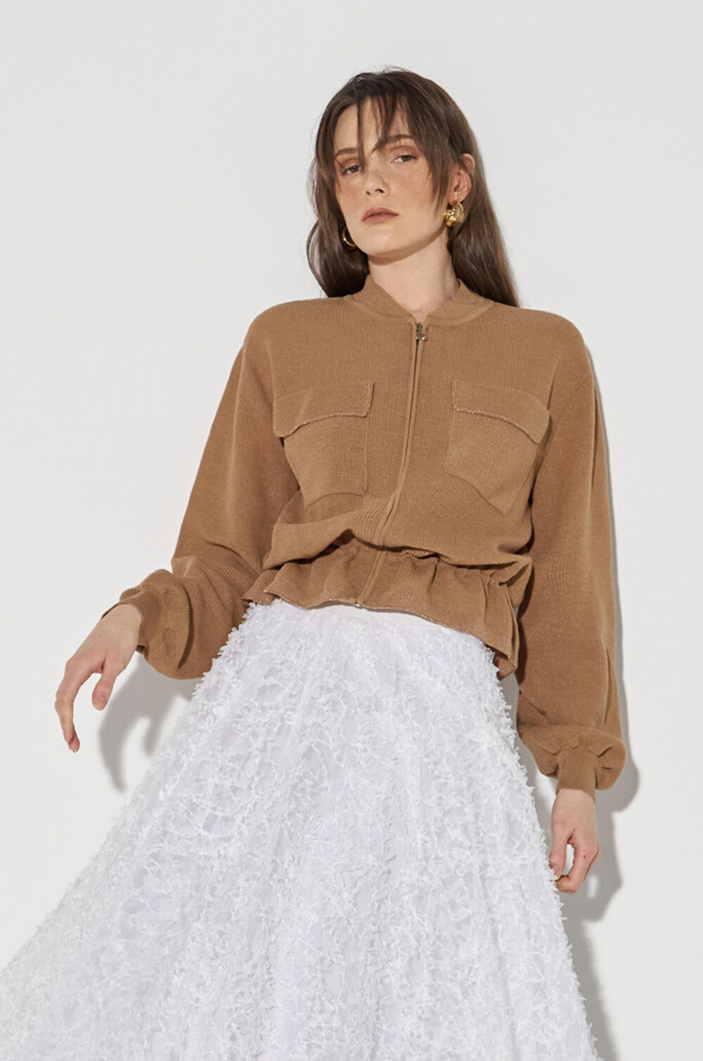 실루엣 조절과 러플 헴을 연출하며,
