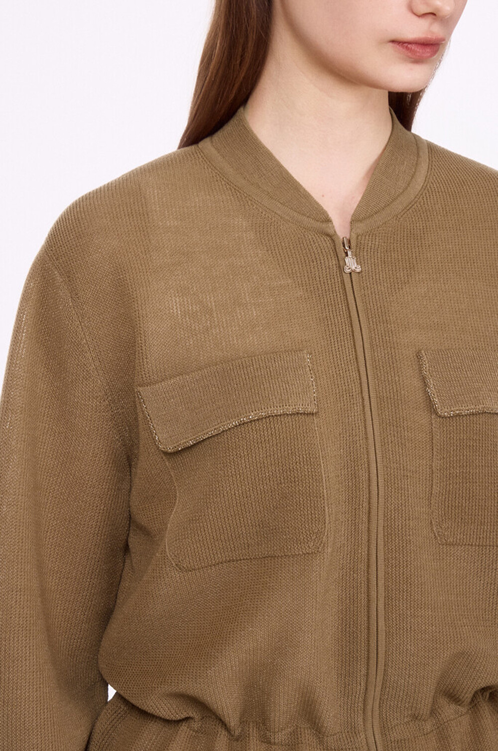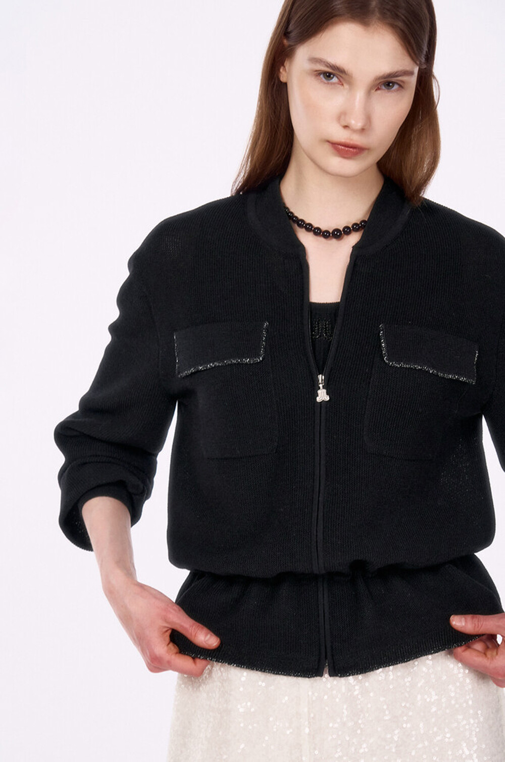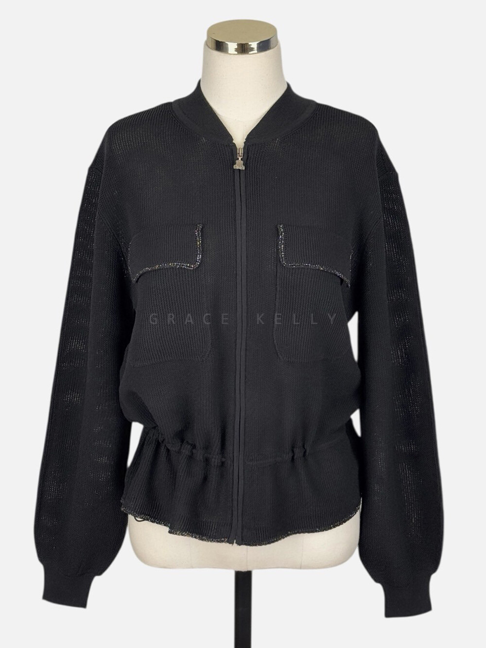 랑방컬렉션 플랩 포켓 드로우스트링 니트 집업 점퍼