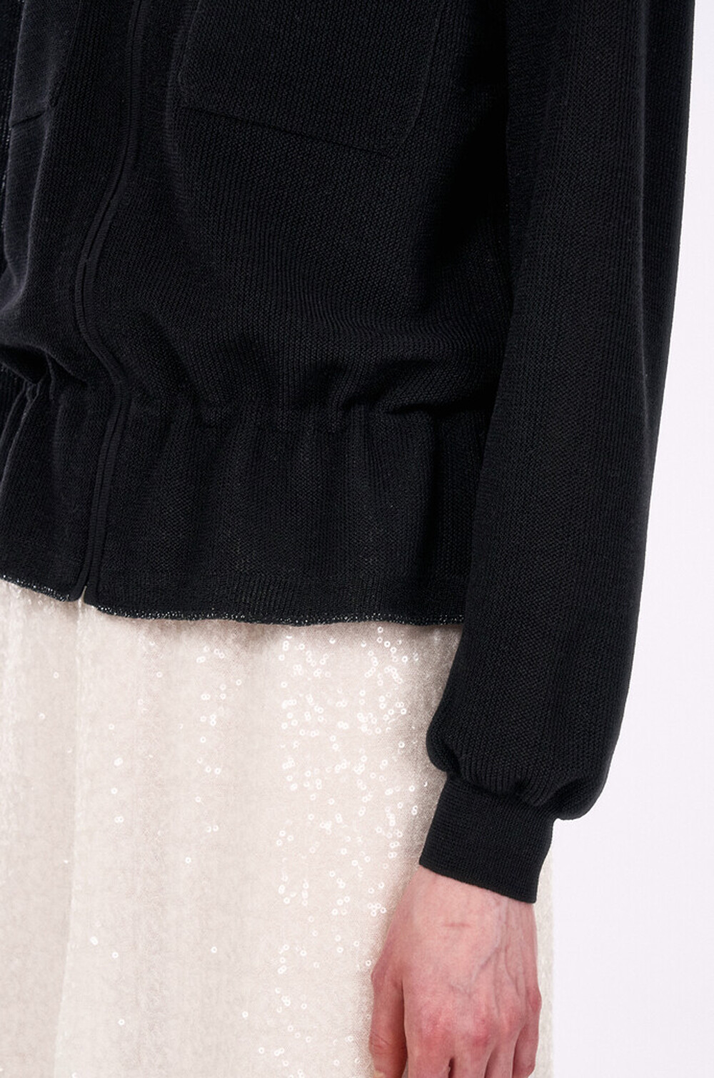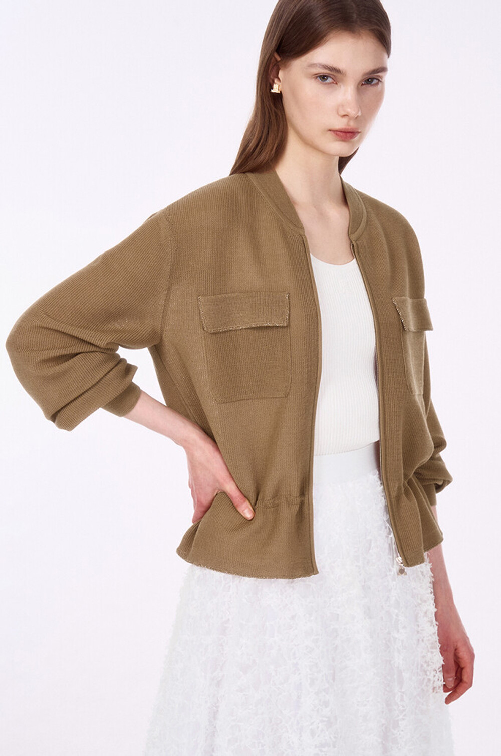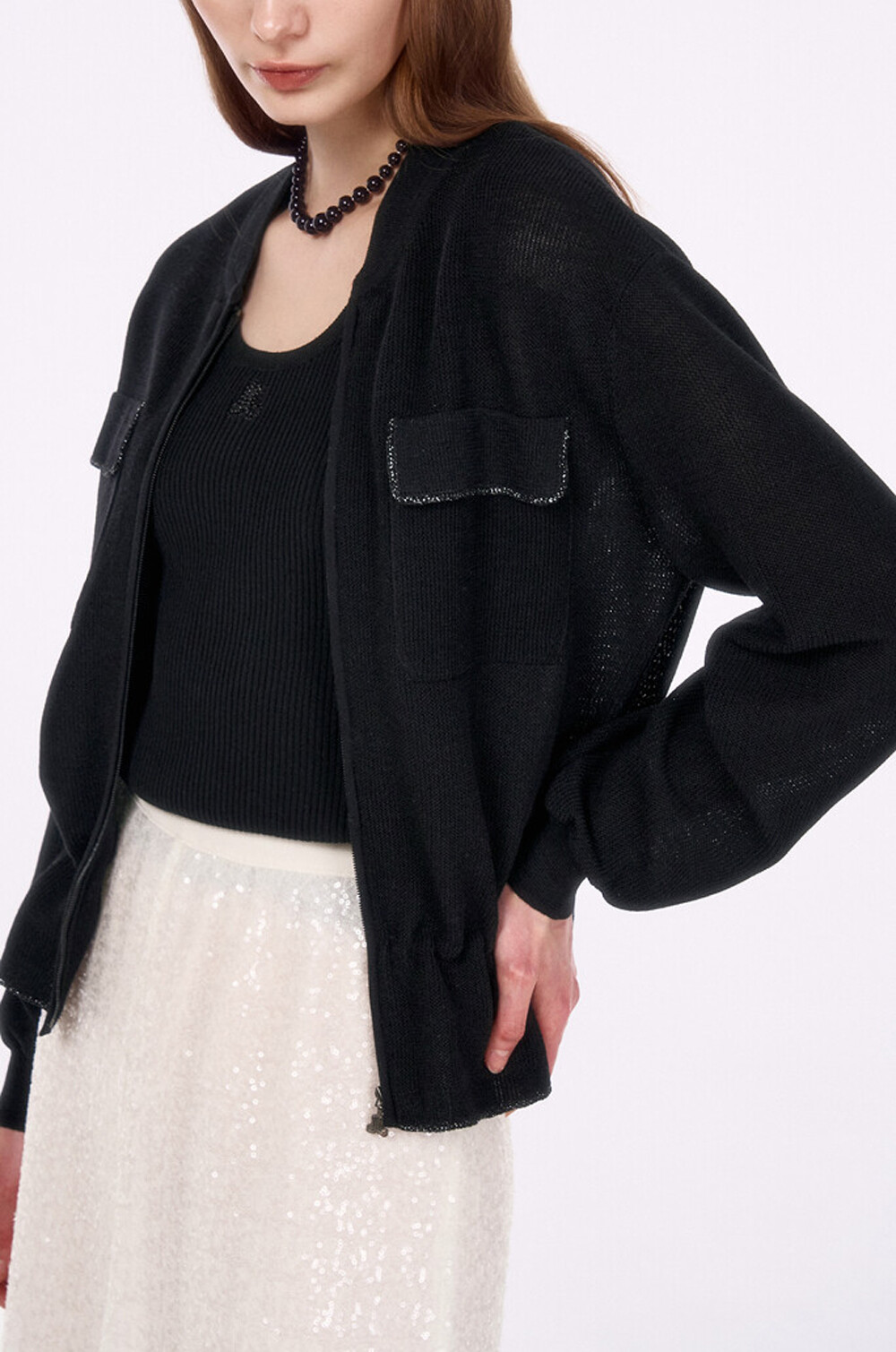 랑방컬렉션 플랩 포켓 드로우스트링 니트 집업 점퍼