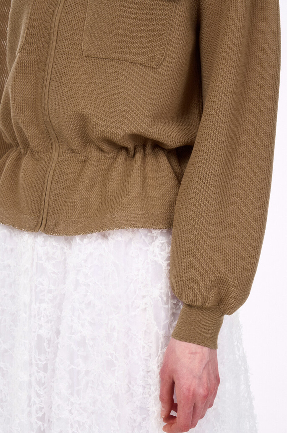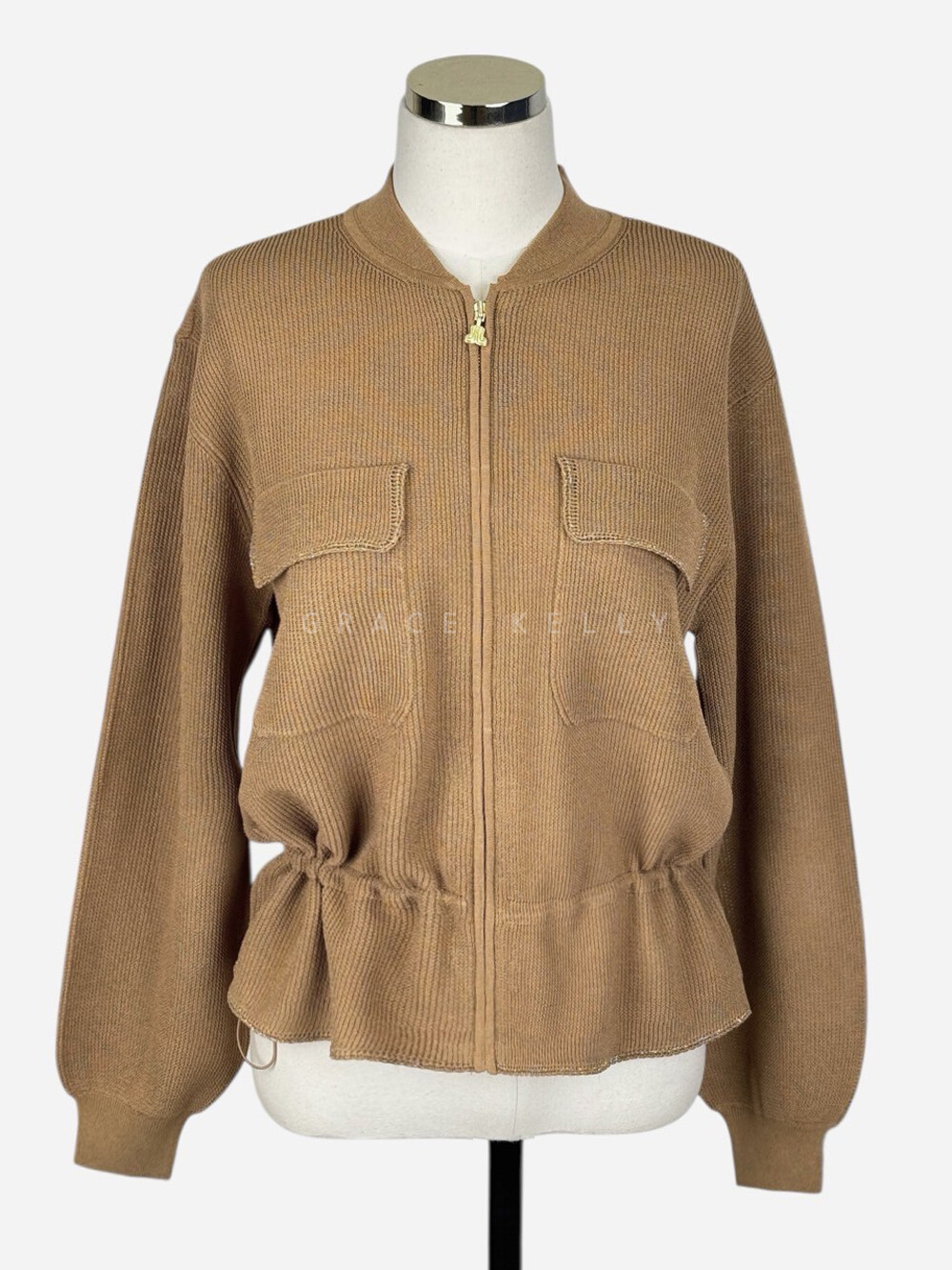 LANVIN. Flap Pocket Drawstring Knit Zip Up Jumper