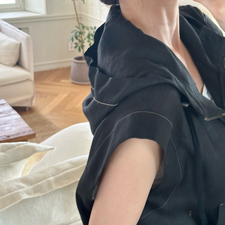 어깨를 살포시 덮는 캡 슬리브 디자인과