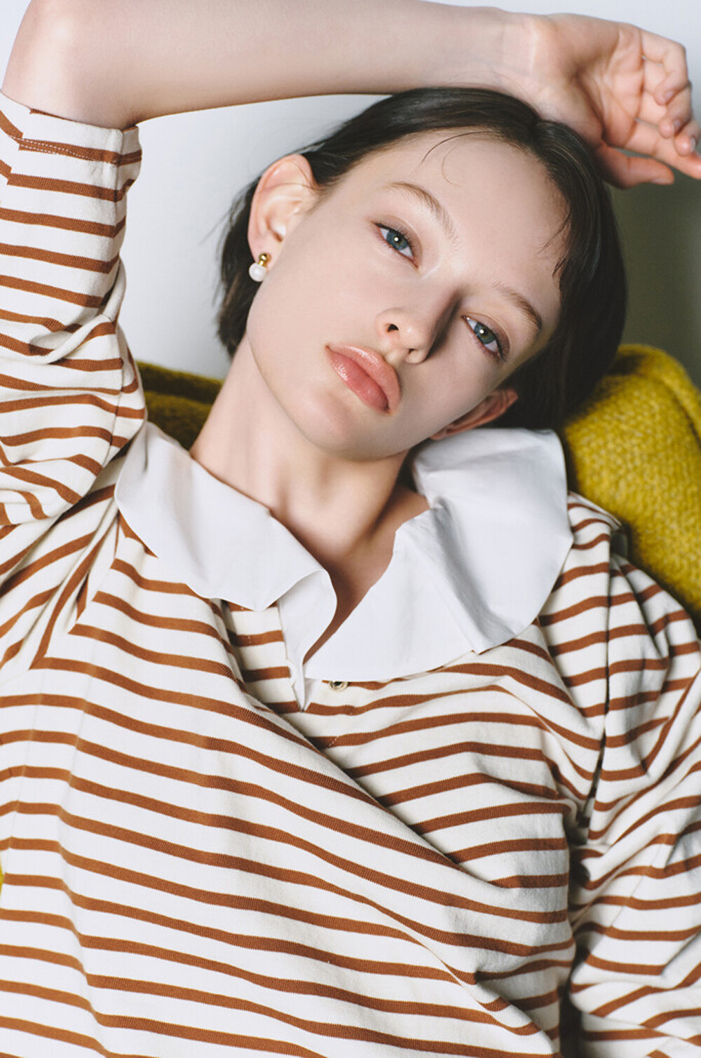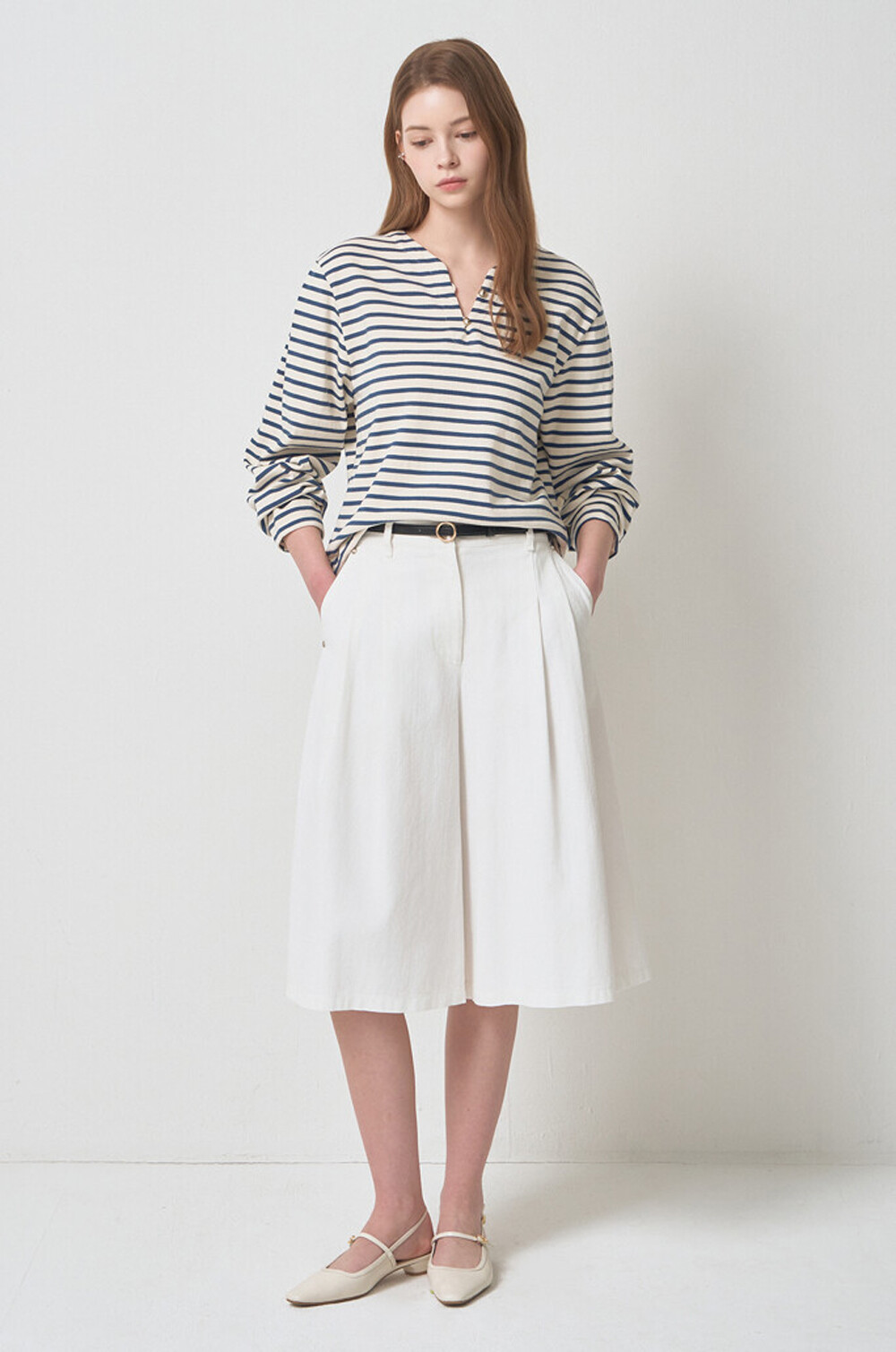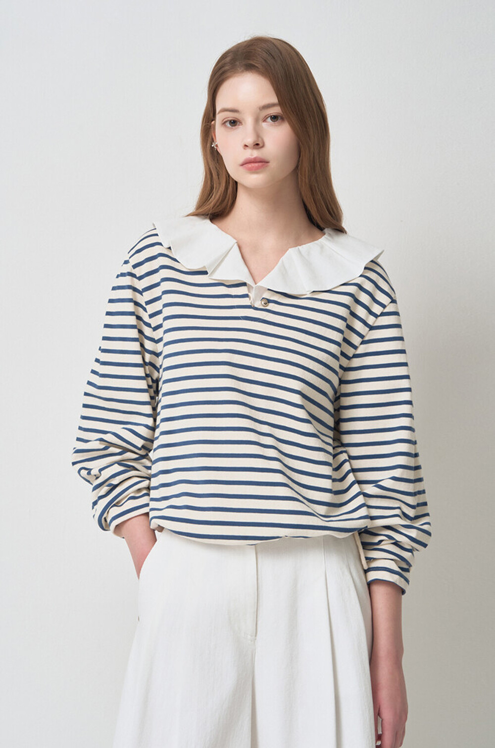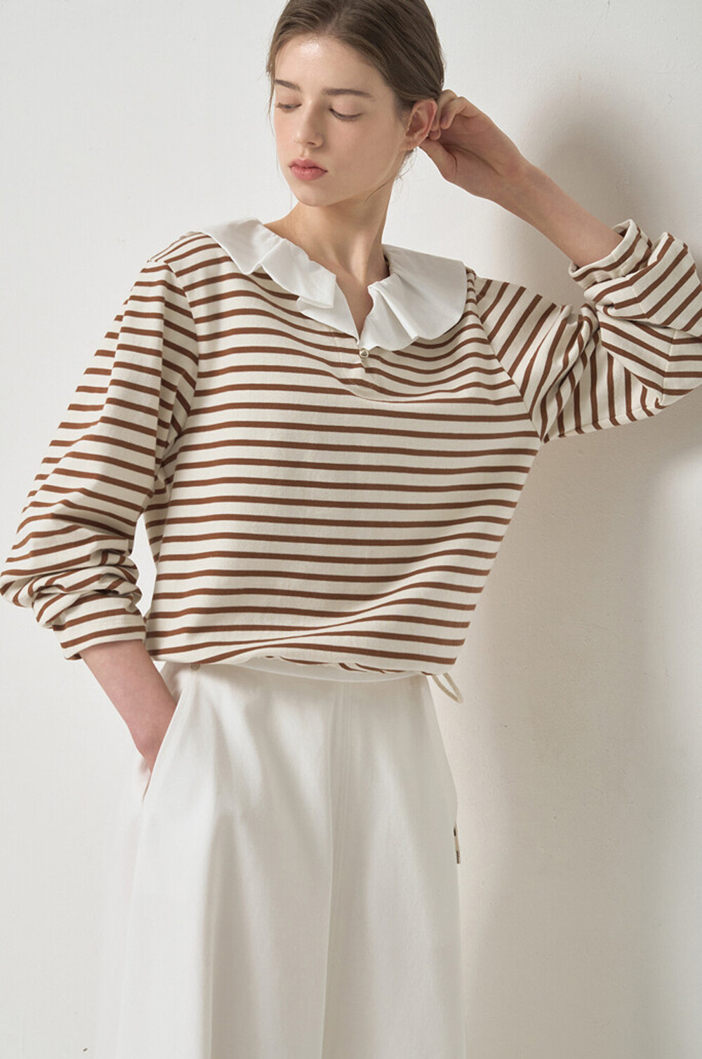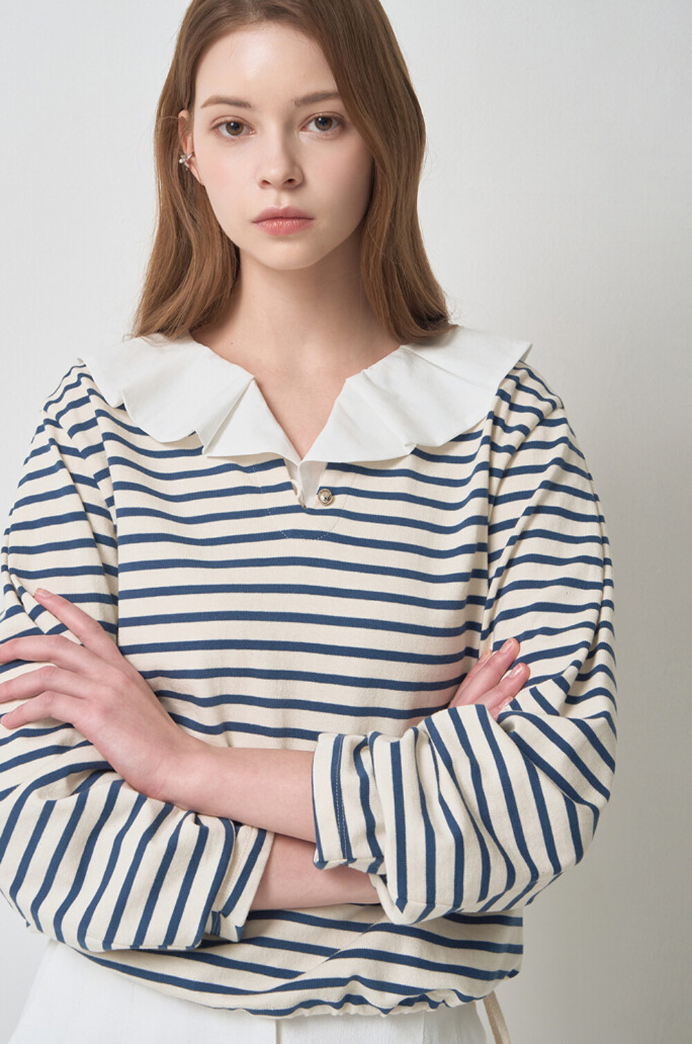 마인 디테쳐블 칼라 스트라이프 티셔츠