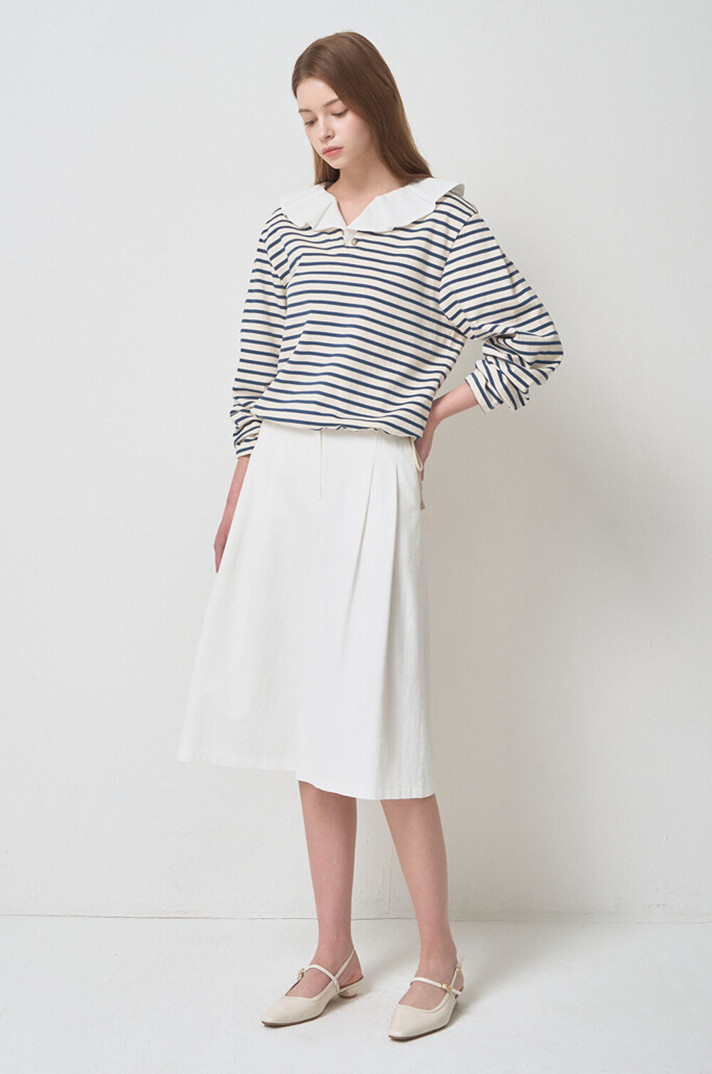 MINE. Detachable Collar Stripe T-shirt