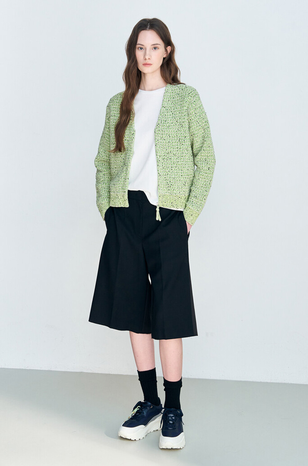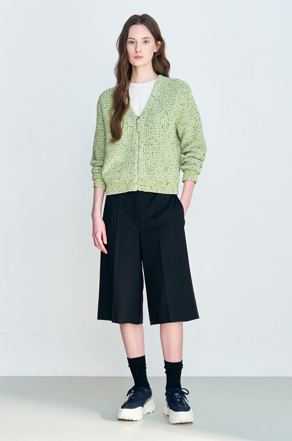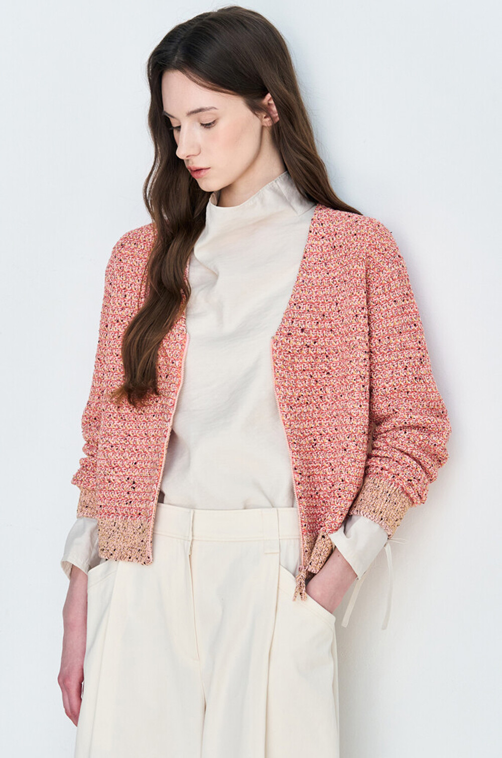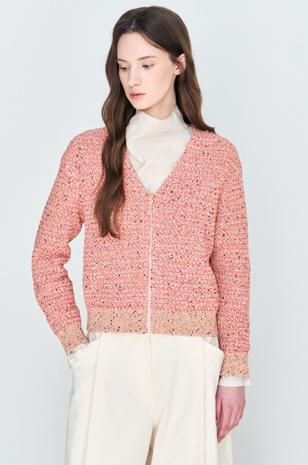 LATT. Wool Blend Melange Sequin Zip Up Knit Cardigan