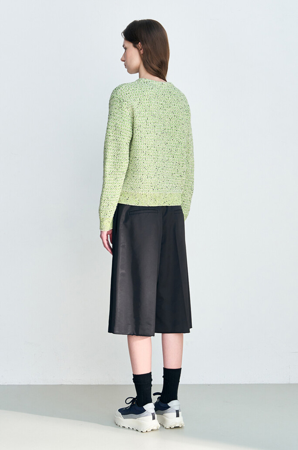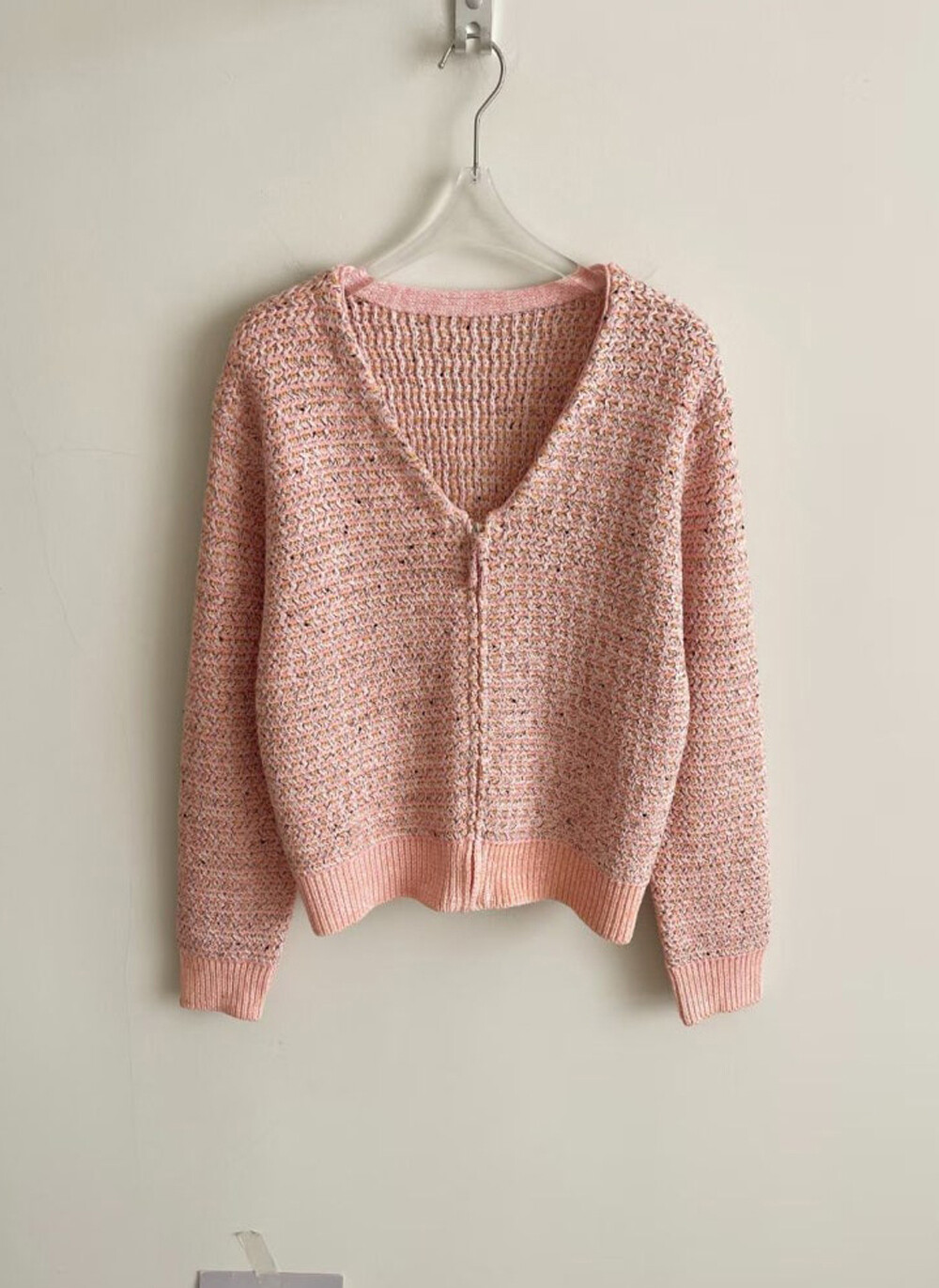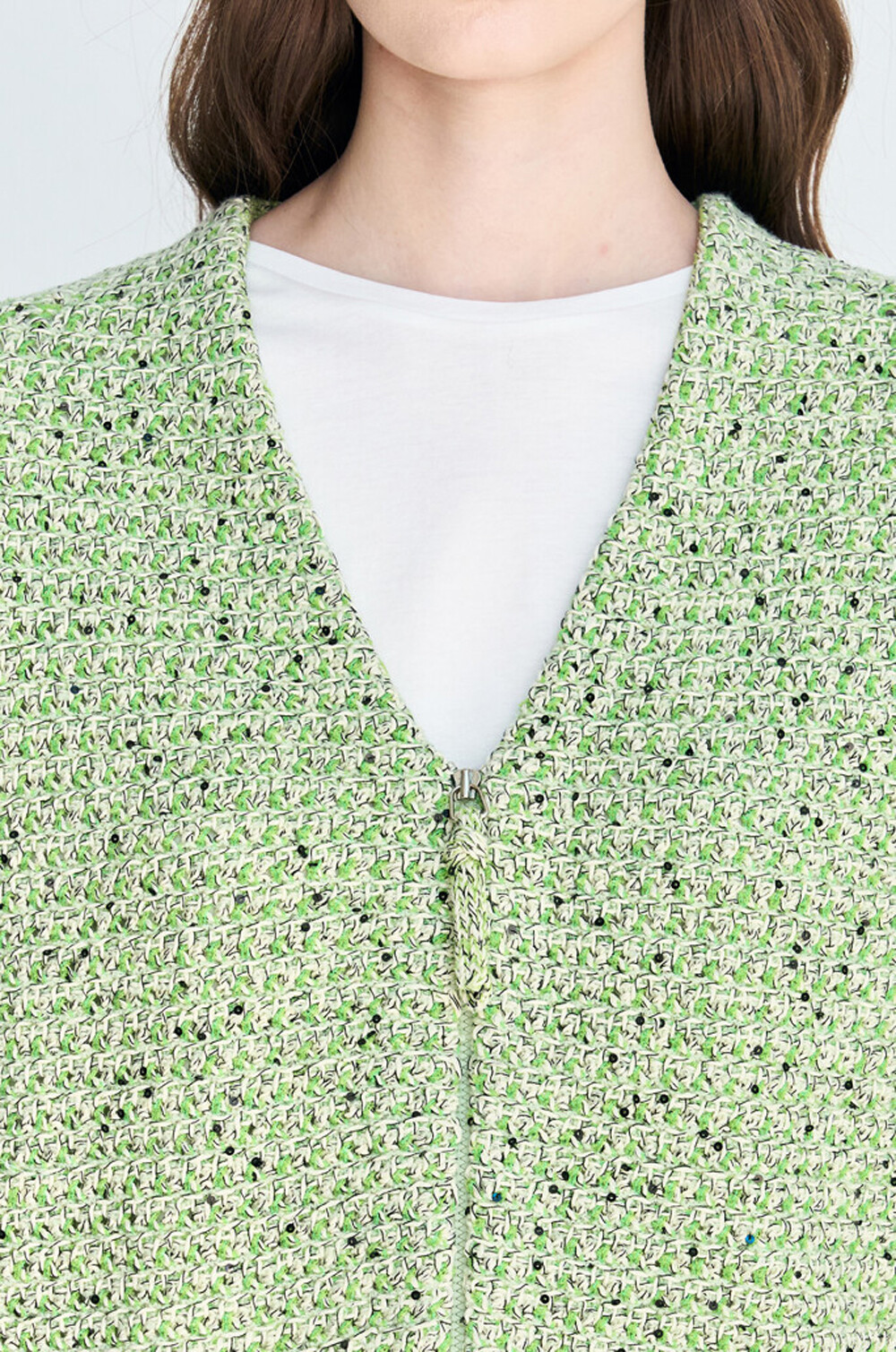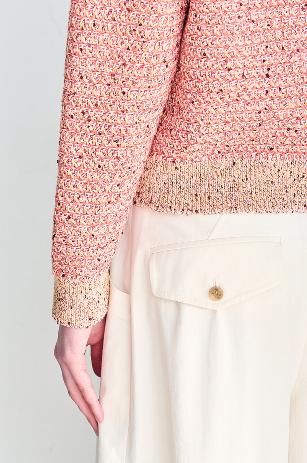 LATT. Wool Blend Melange Sequin Zip Up Knit Cardigan