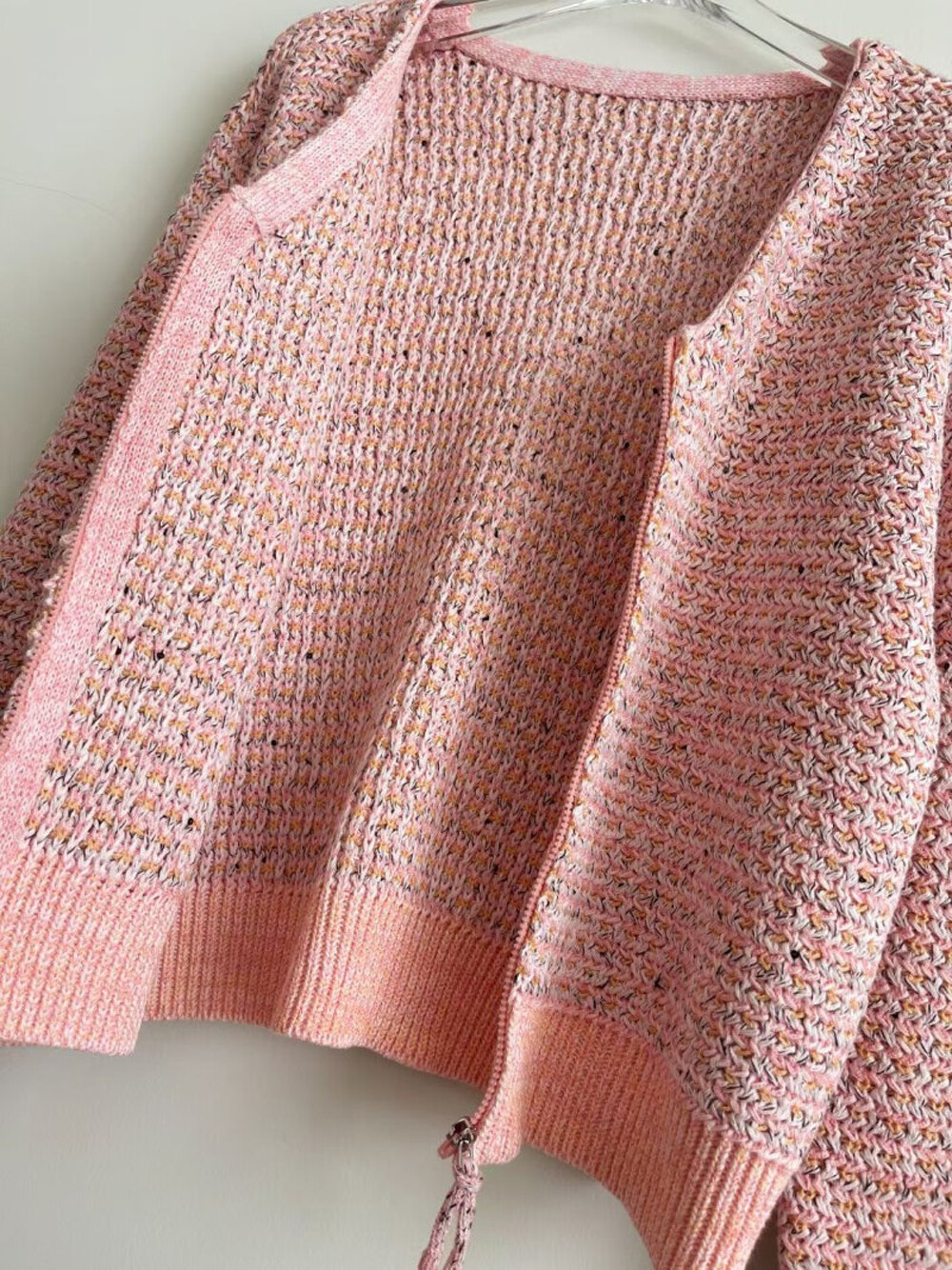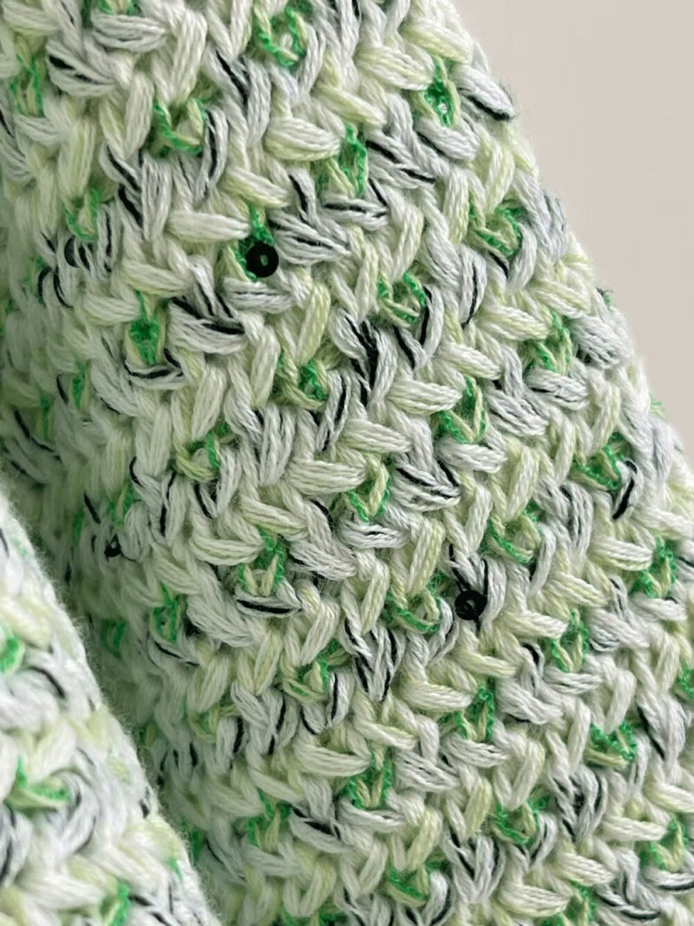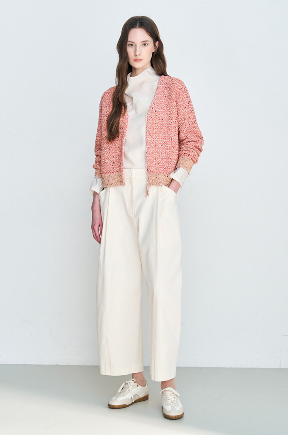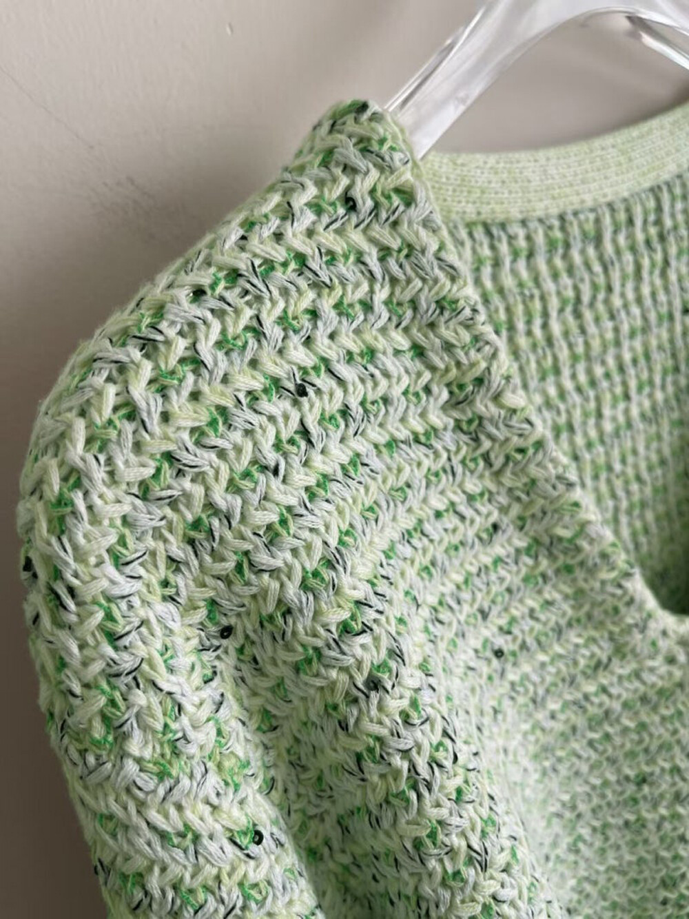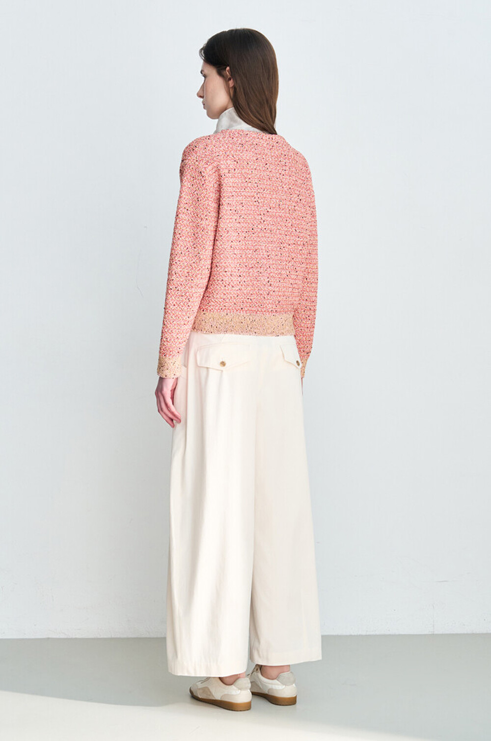 LATT. Wool Blend Melange Sequin Zip Up Knit Cardigan