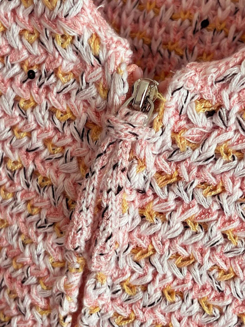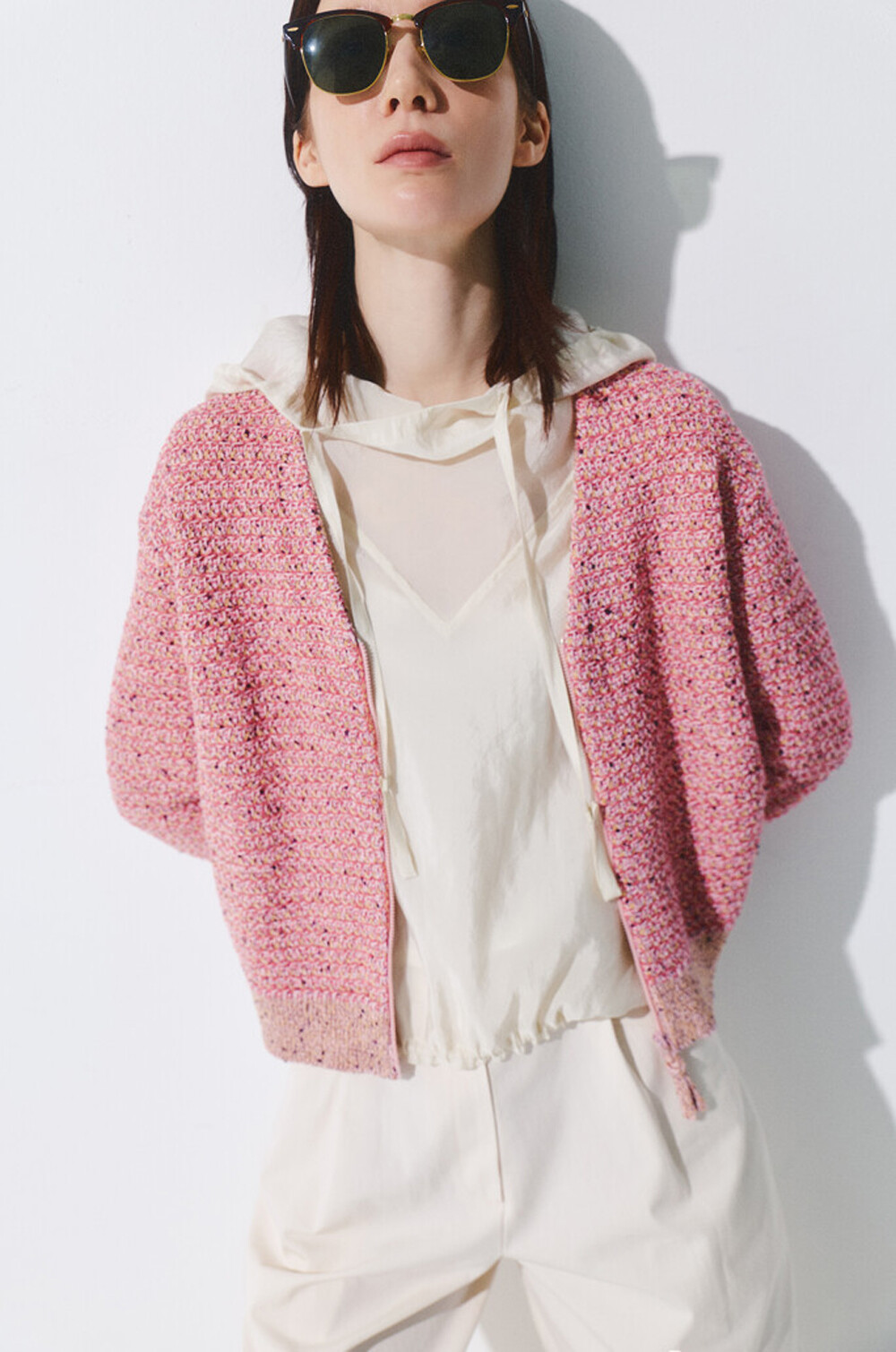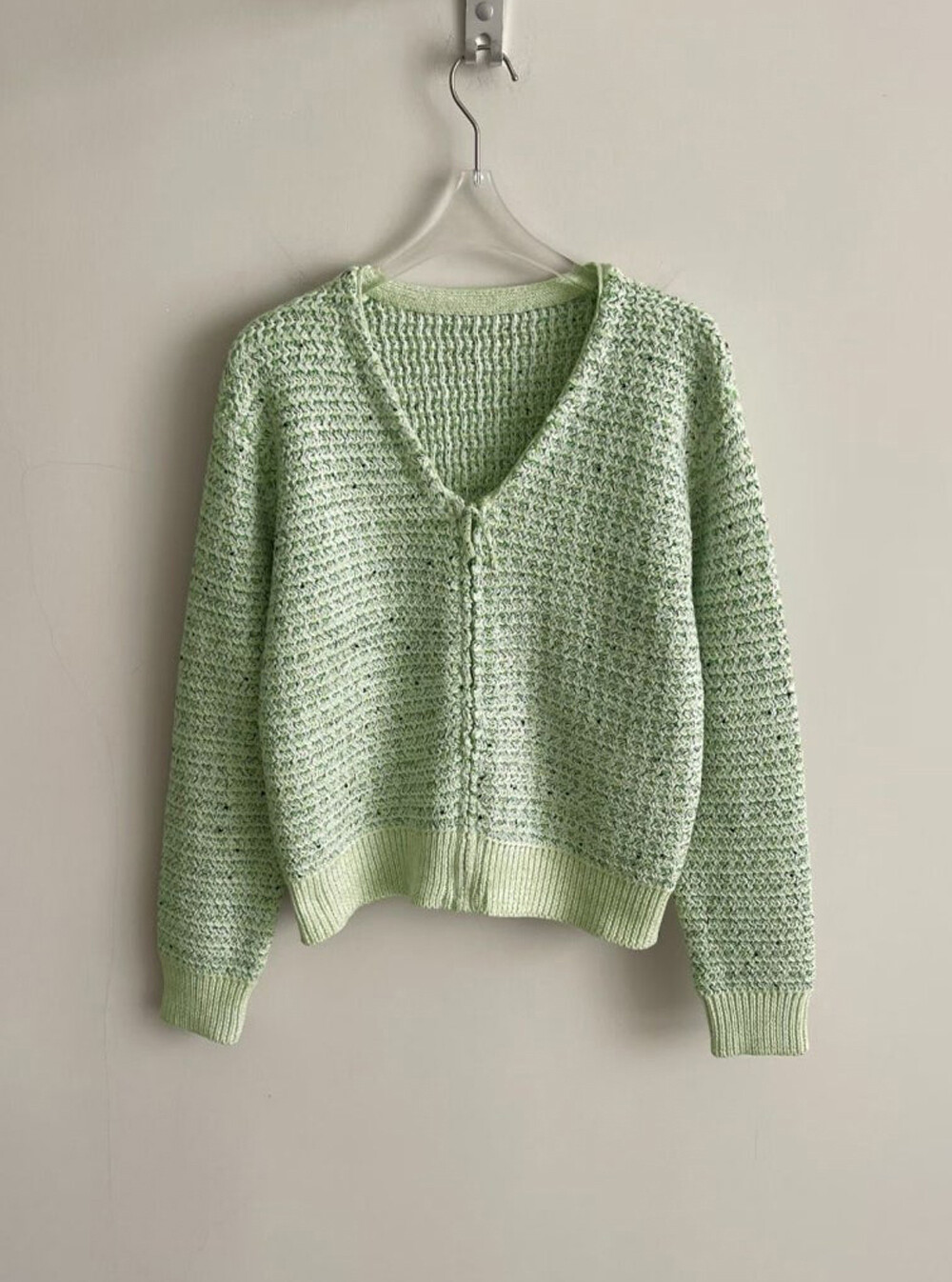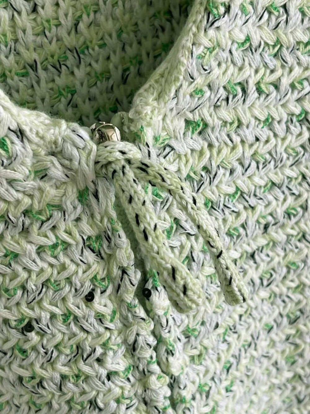 LATT. Wool Blend Melange Sequin Zip Up Knit Cardigan