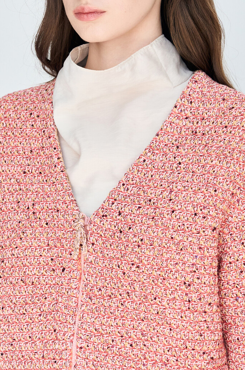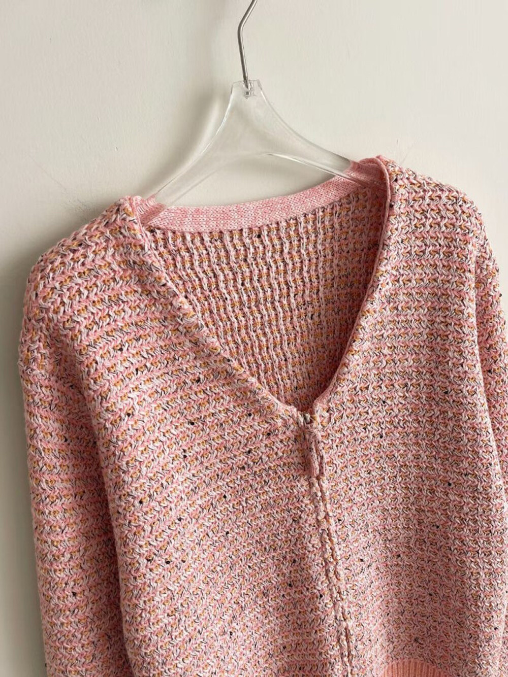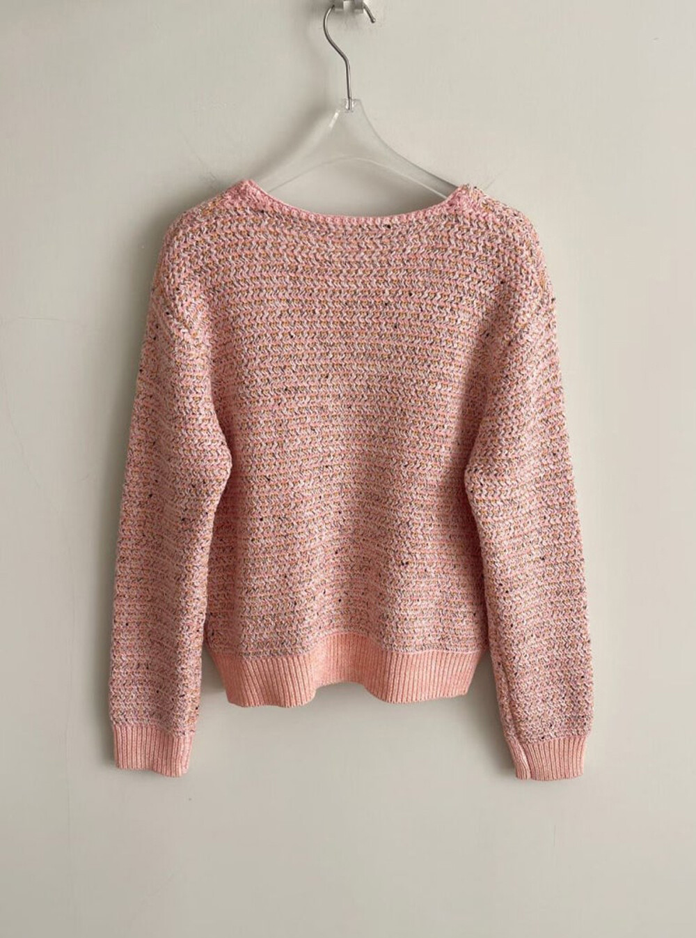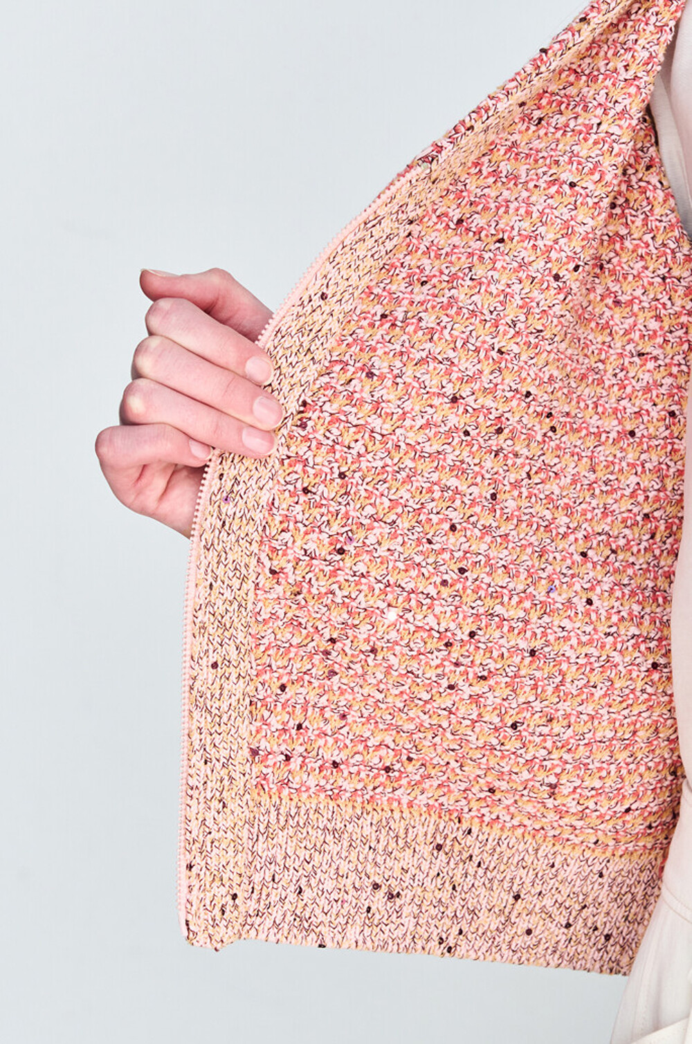 LATT. Wool Blend Melange Sequin Zip Up Knit Cardigan