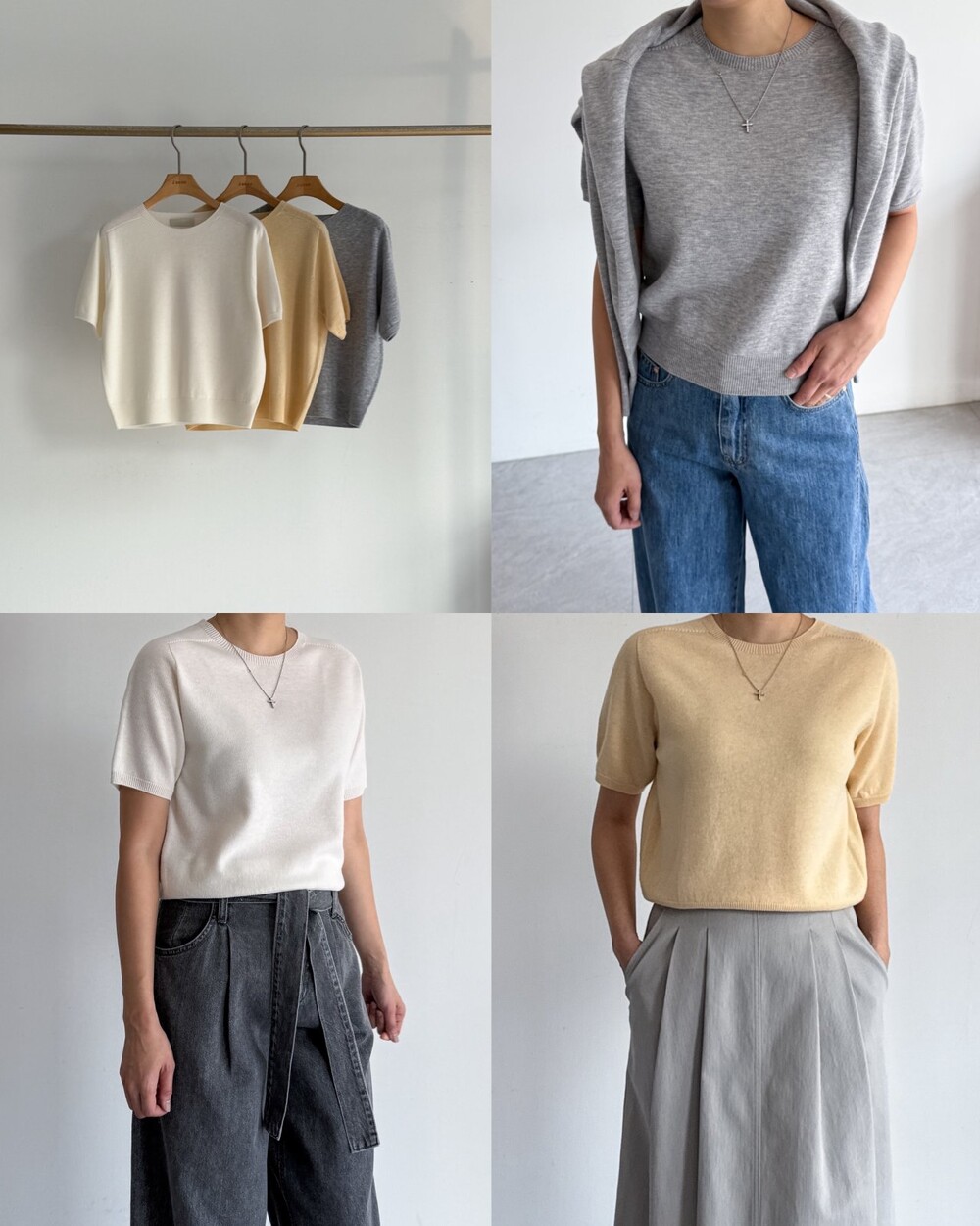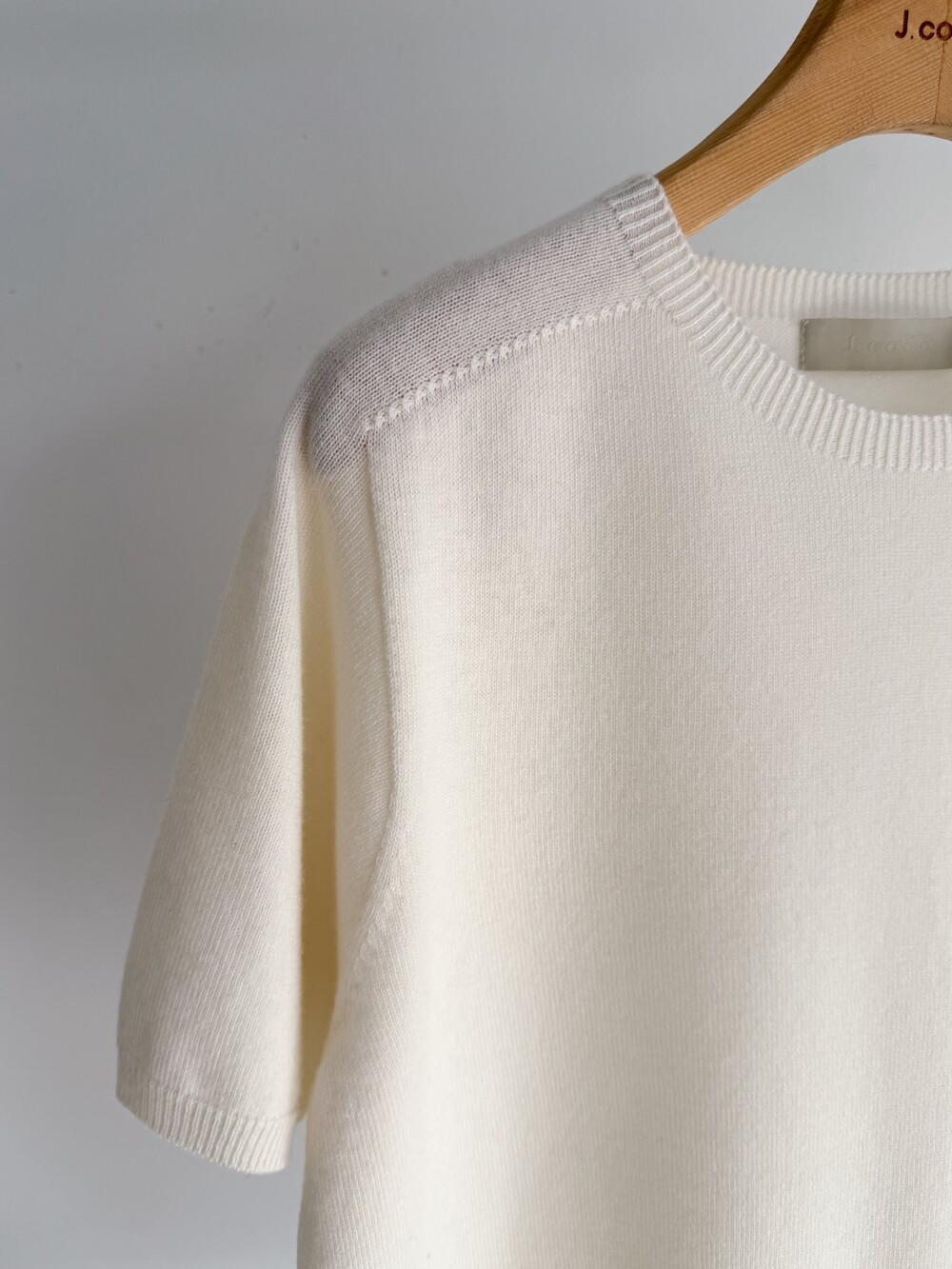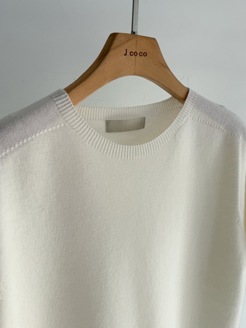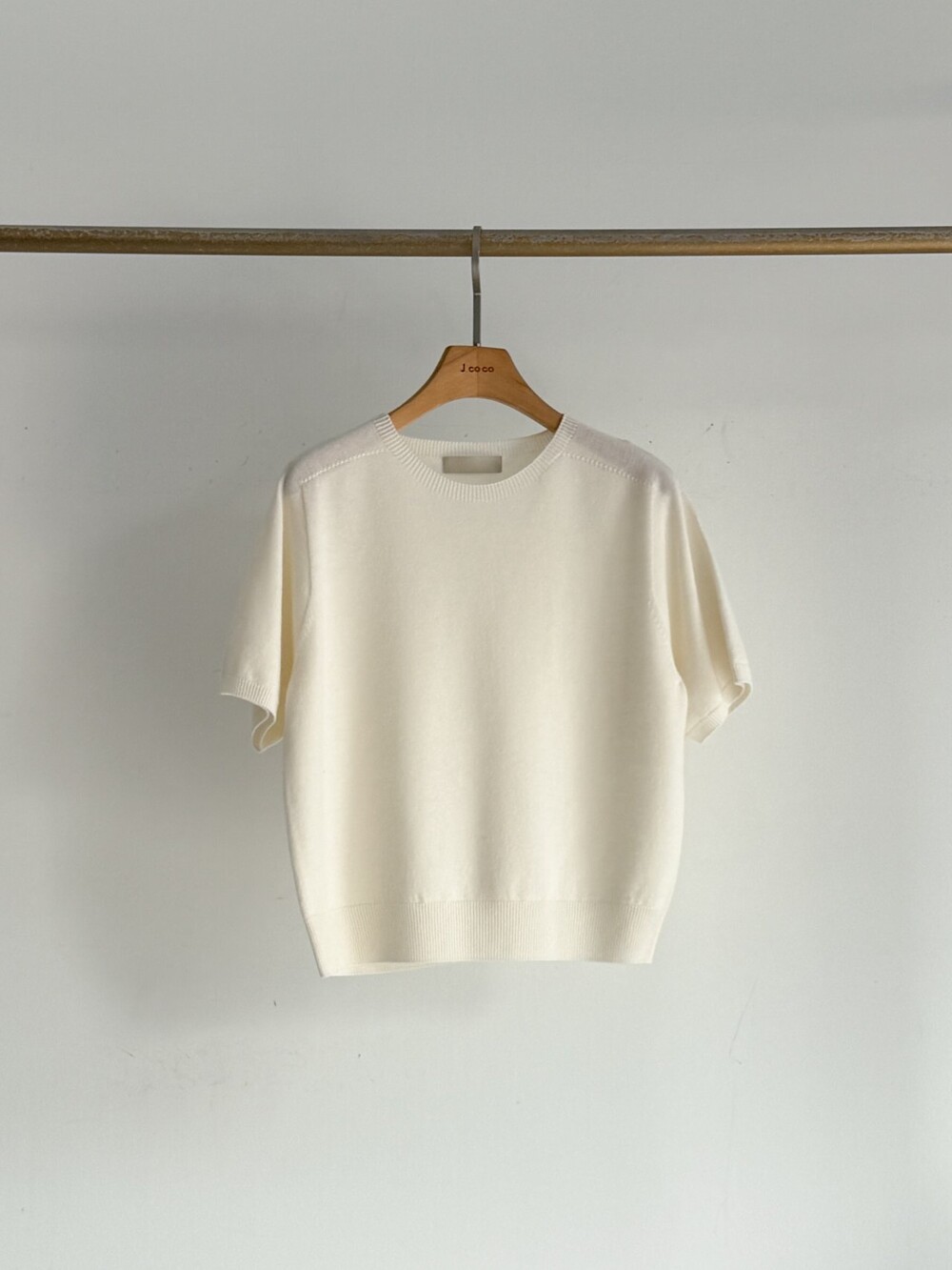 제이코코. 울 라운드넥 하프 슬리브 니트 탑