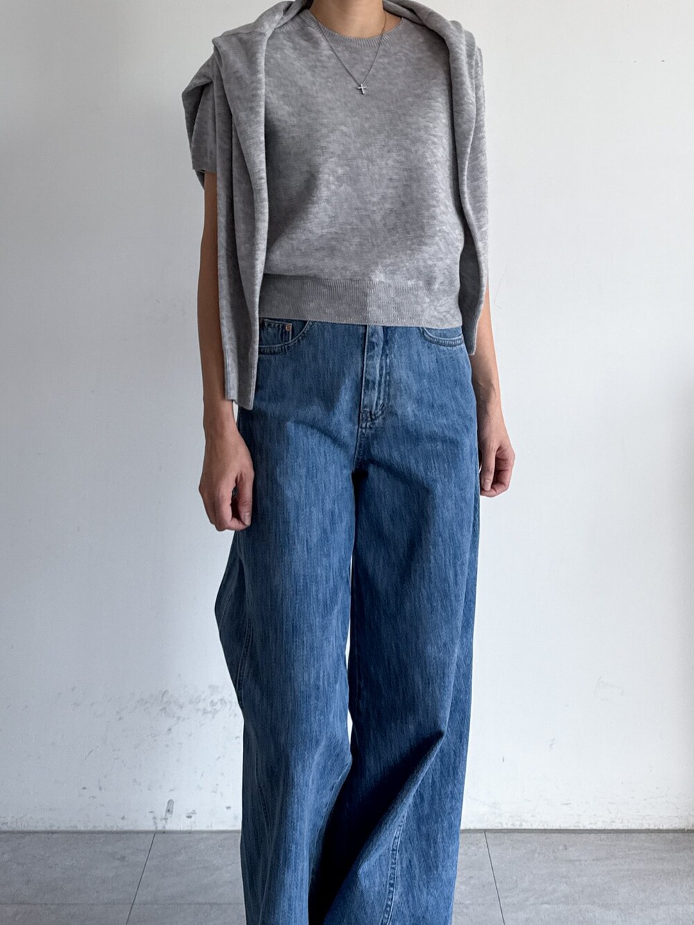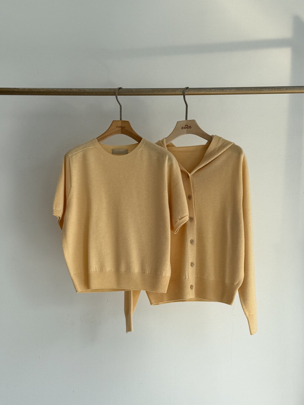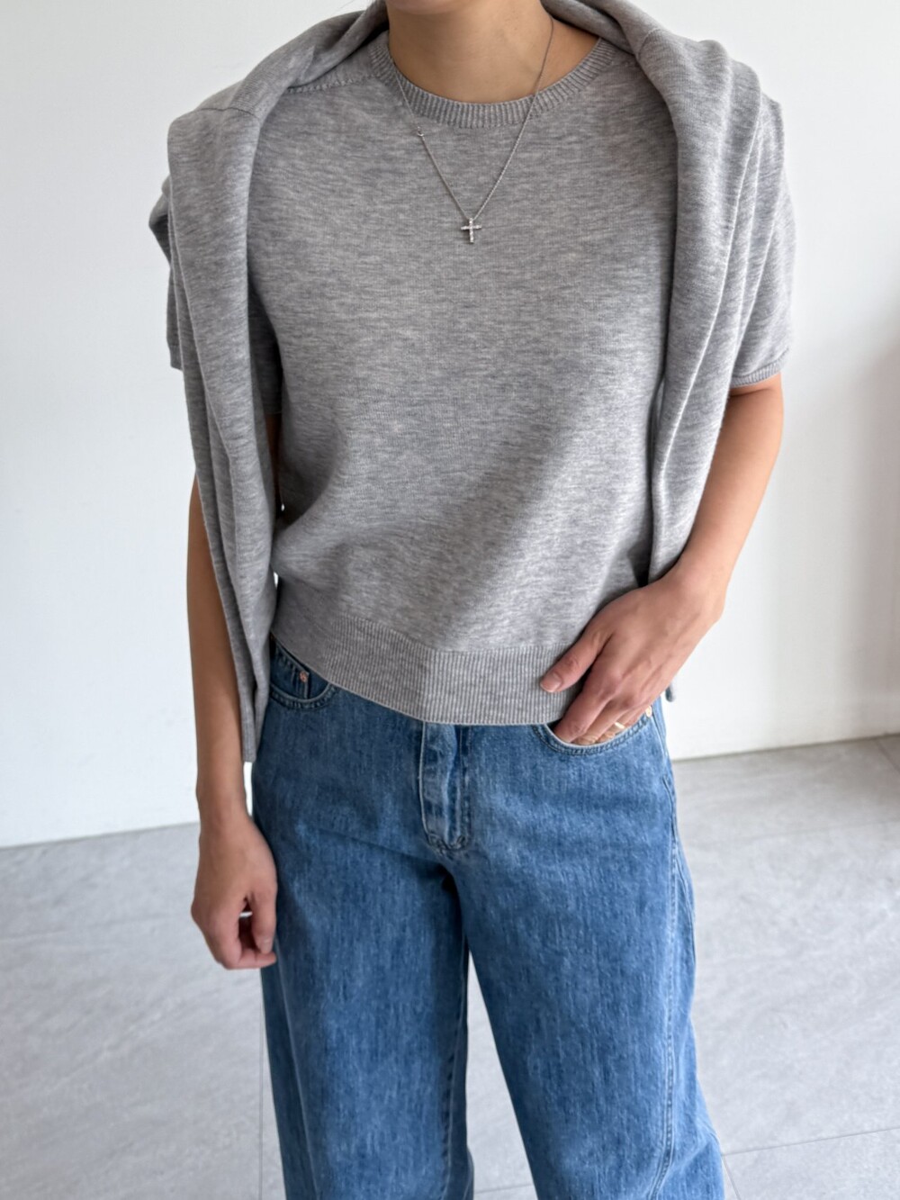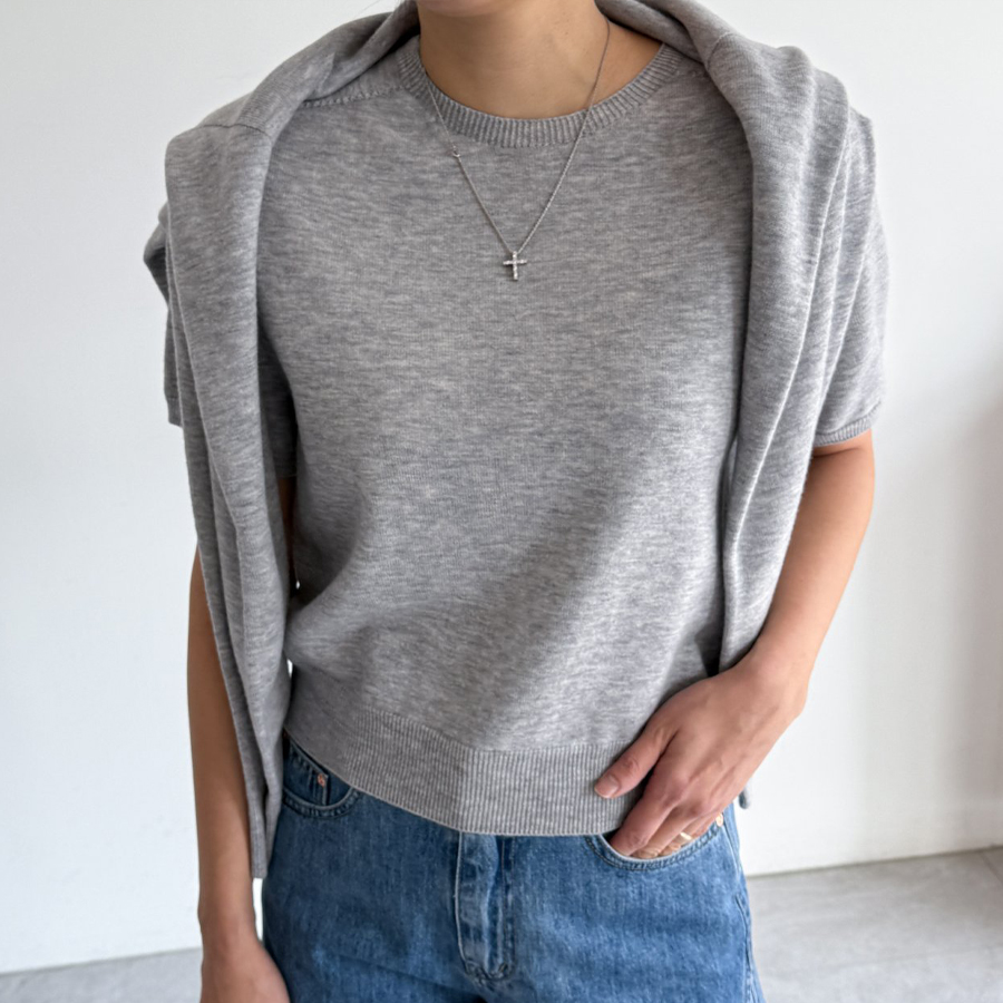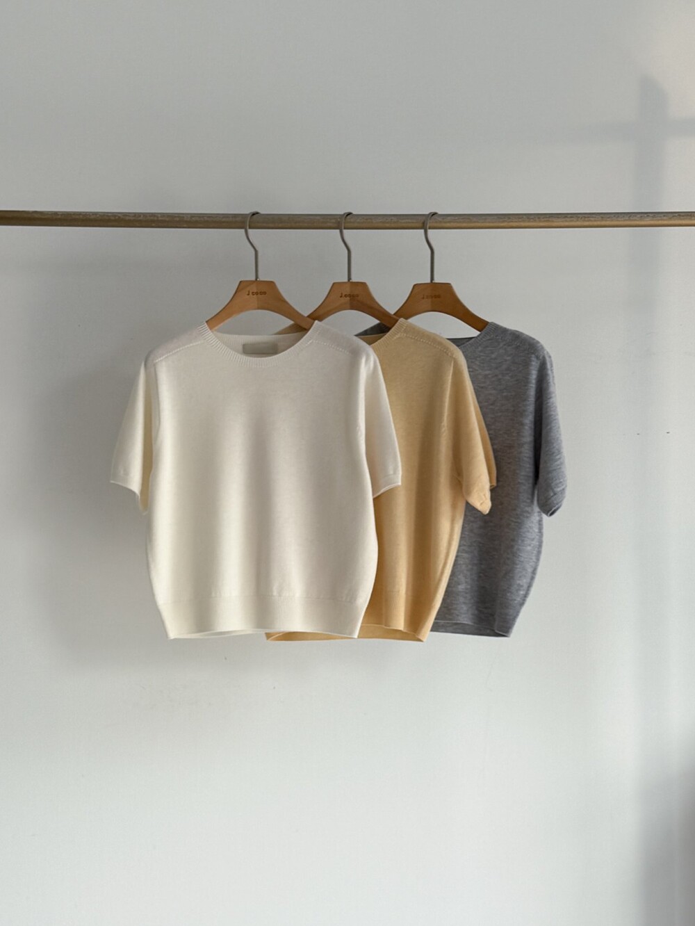 제이코코. 울 라운드넥 하프 슬리브 니트 탑
