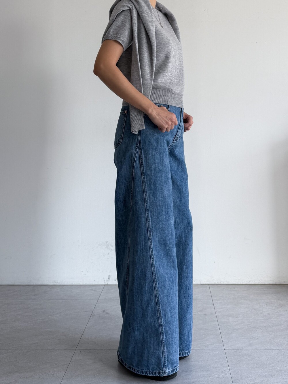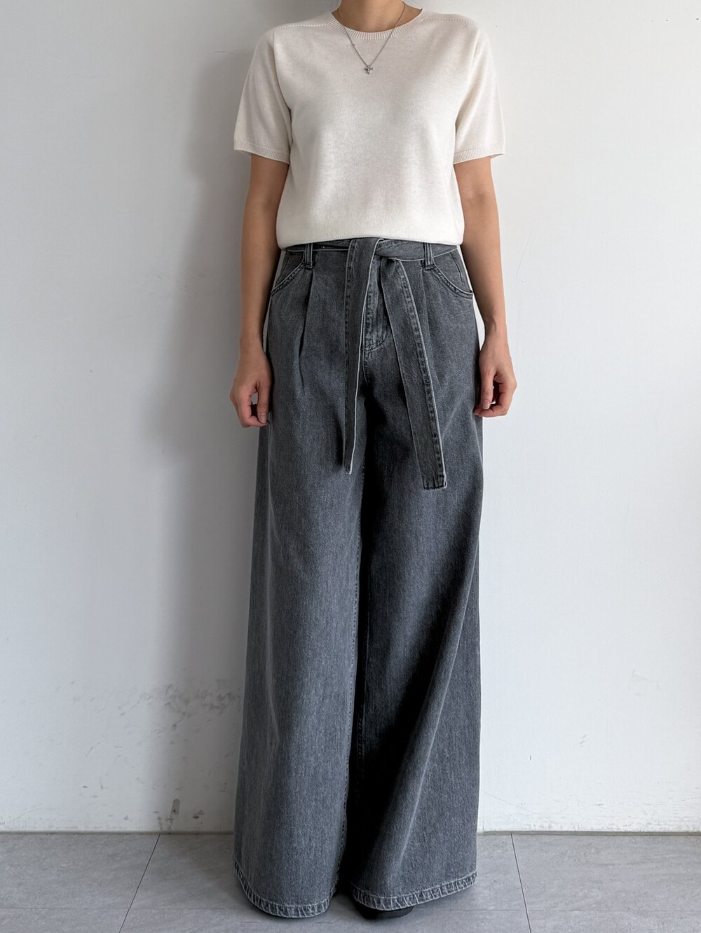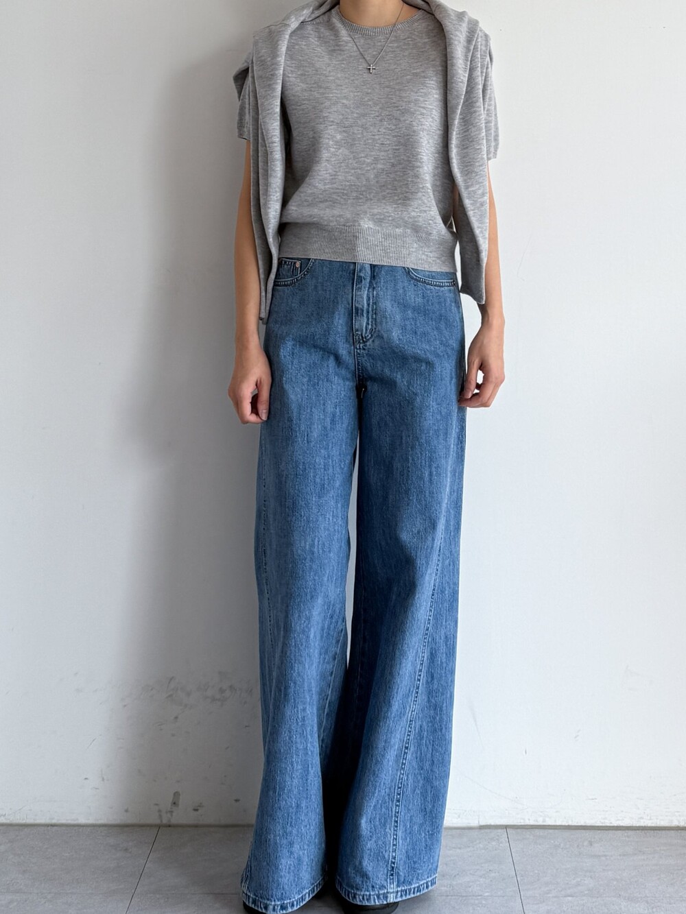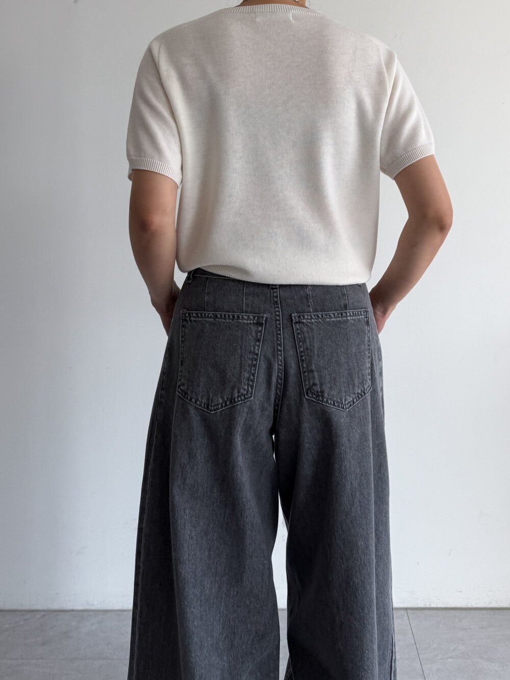 제이코코. 울 라운드넥 하프 슬리브 니트 탑