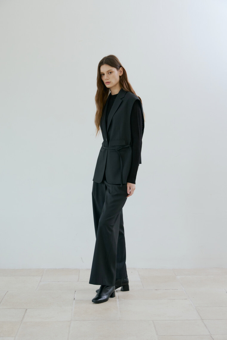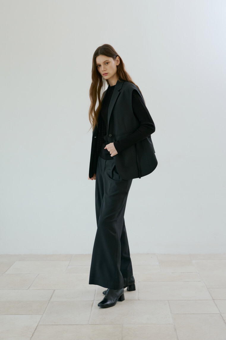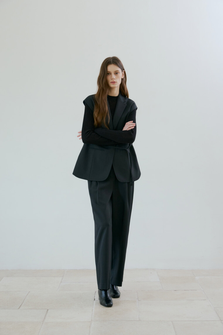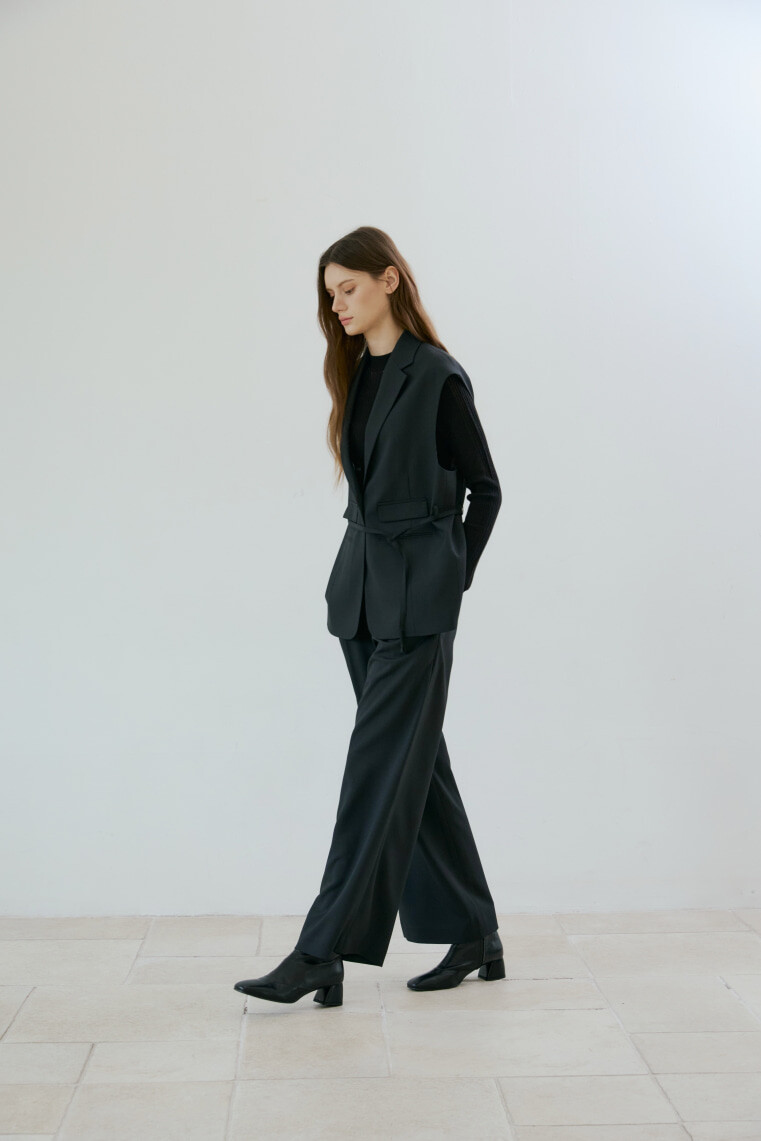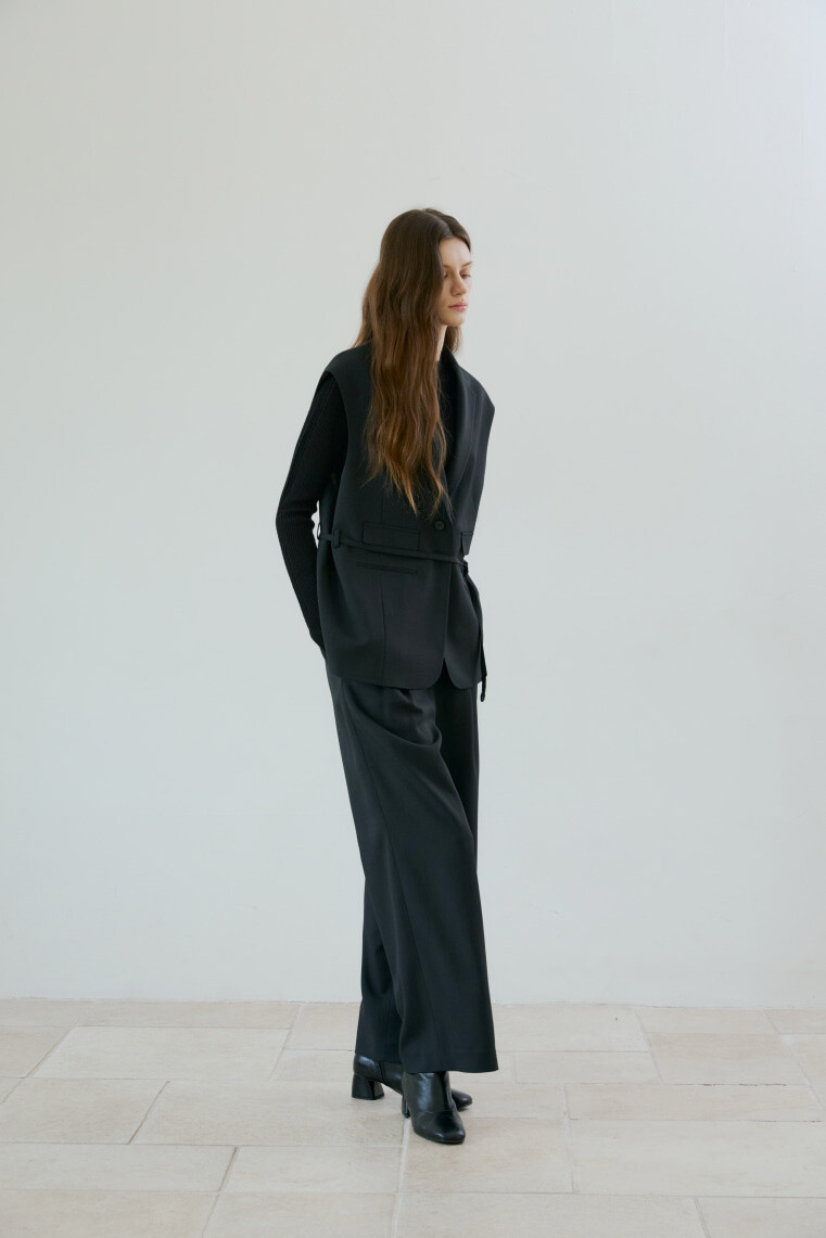 웨이스트 밴딩 투턱 와이드 팬츠와