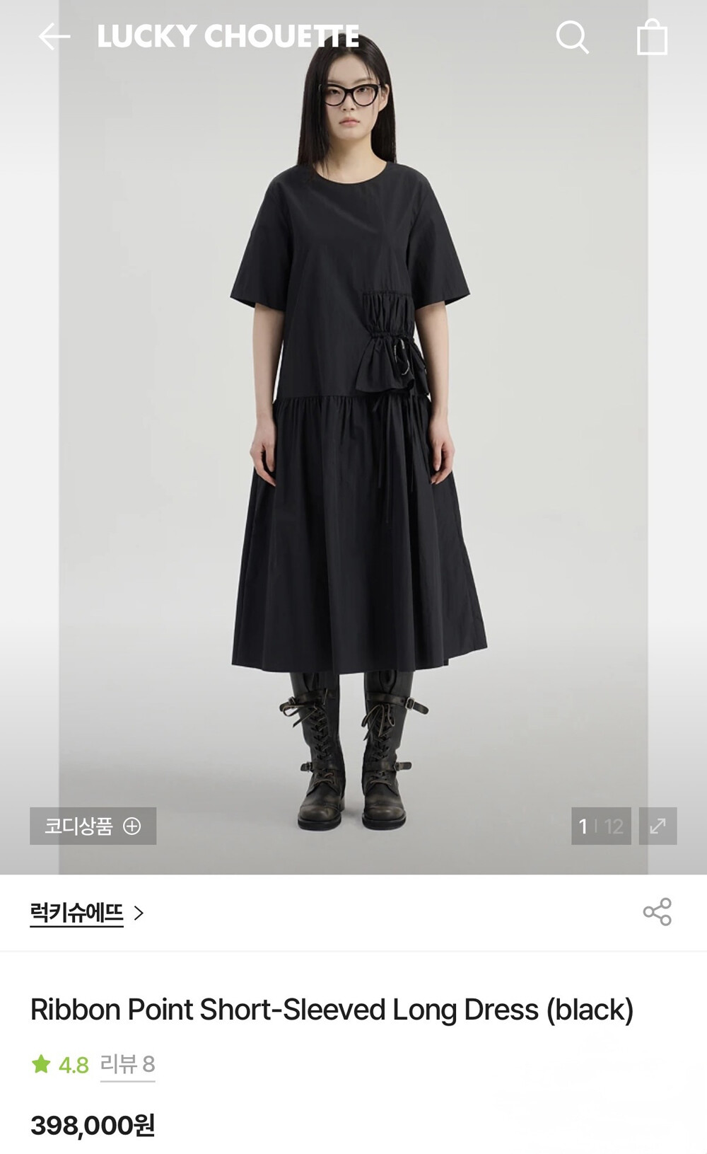 럭키슈에뜨 리본 포인트 반팔 롱 드레스