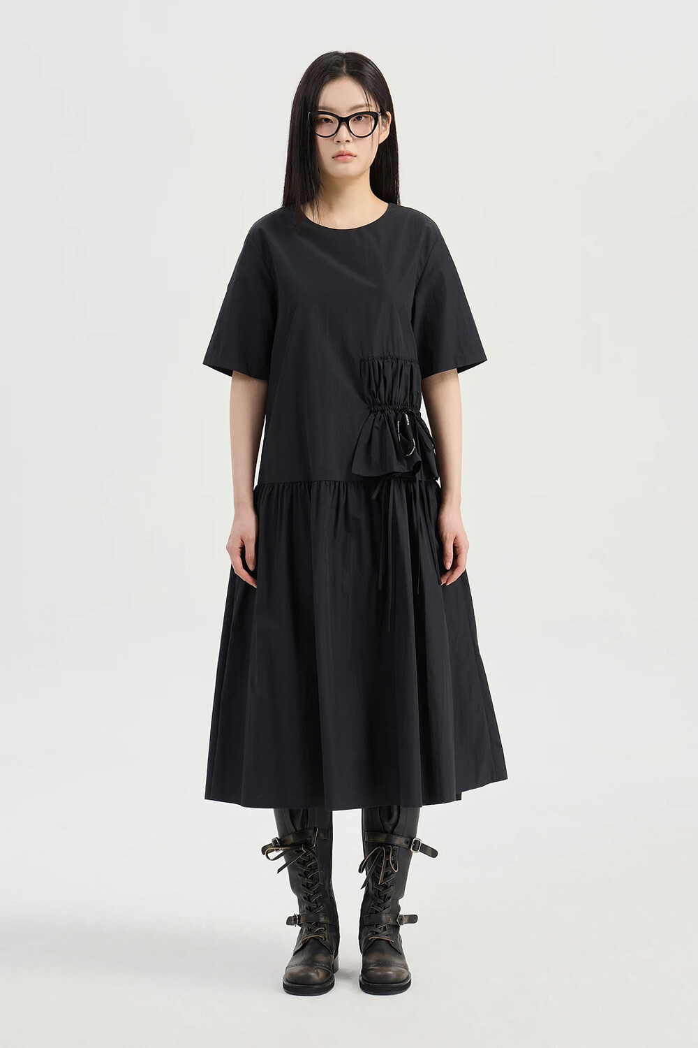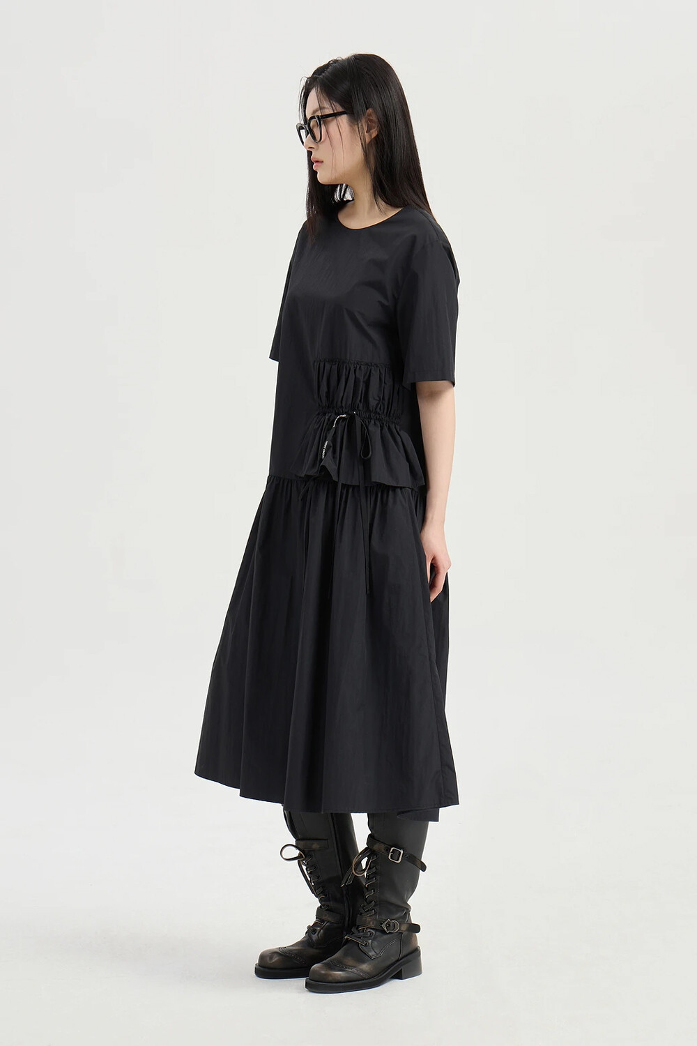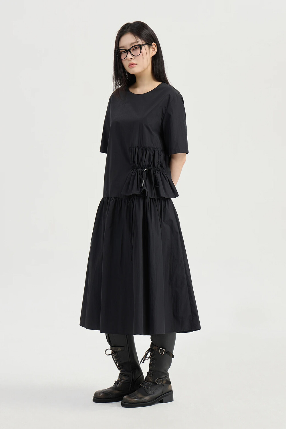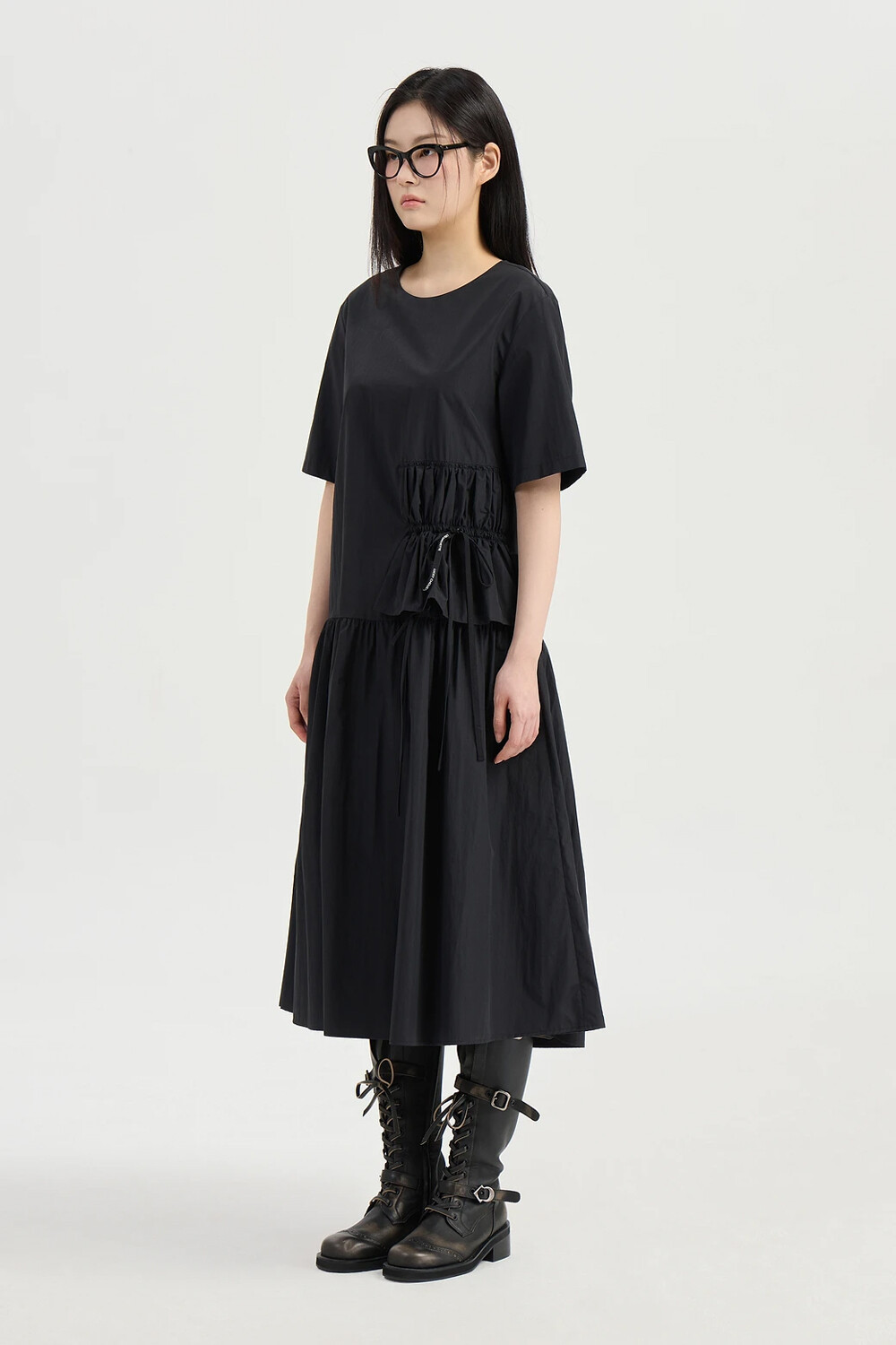 - 여유 있는 실루엣의 반팔 롱 원피스.