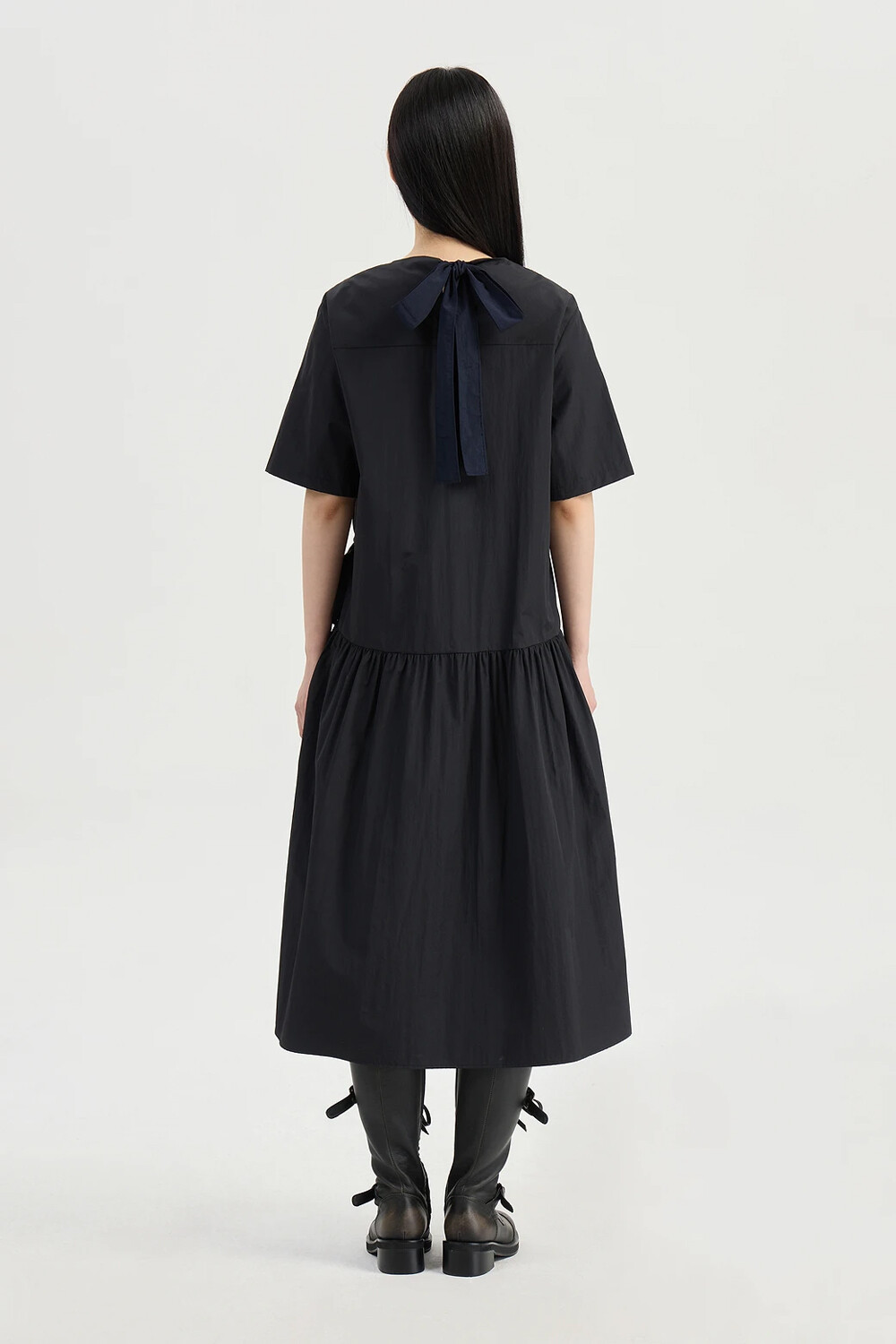 LUCKY CHOUETTE. Ribbon Point Short-Sleeved Long Dress