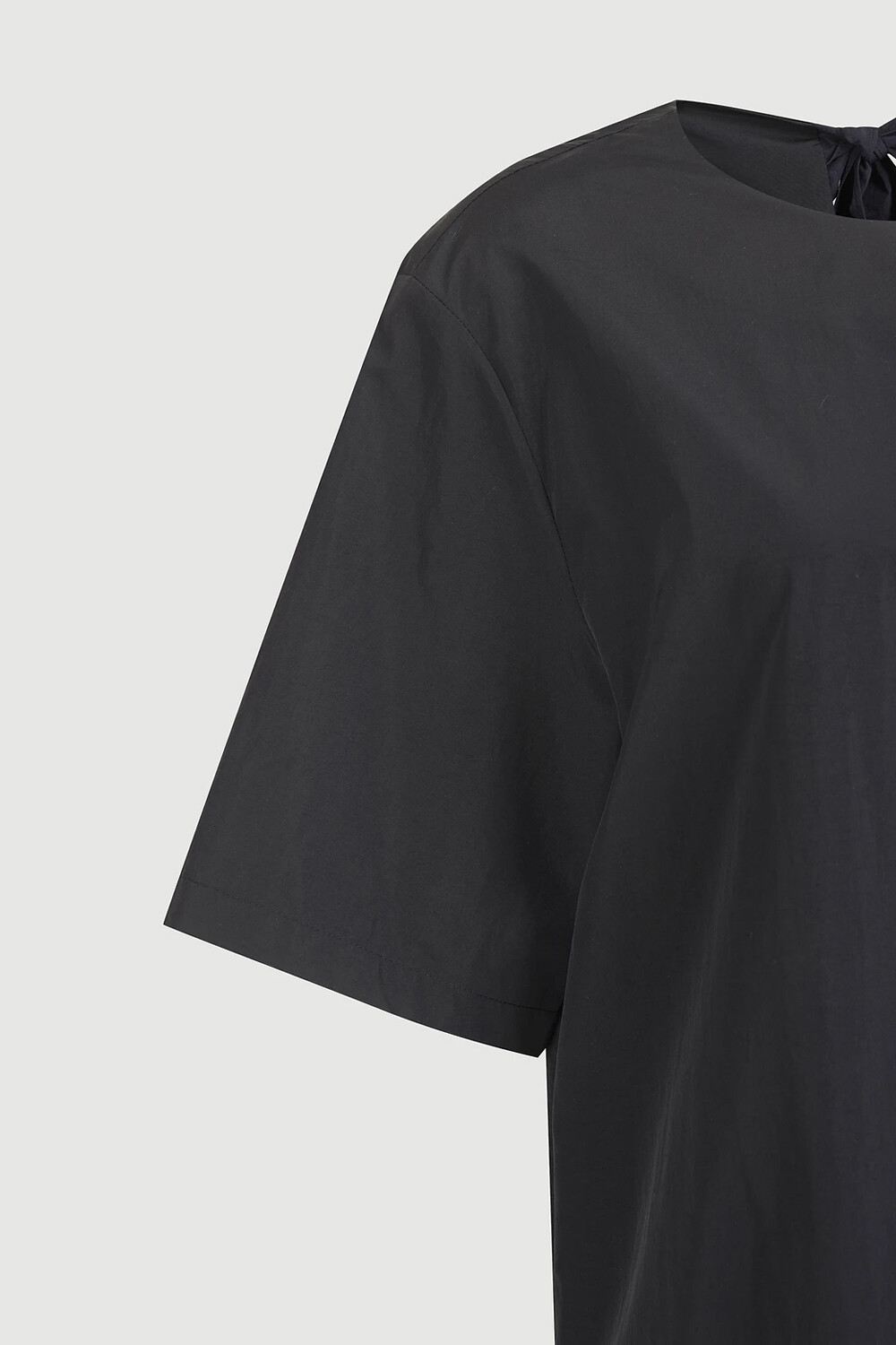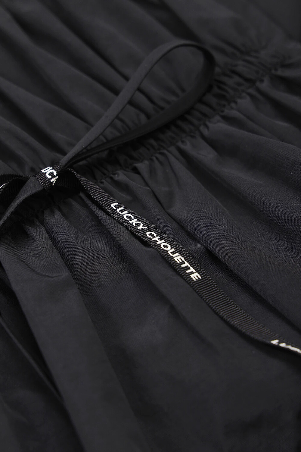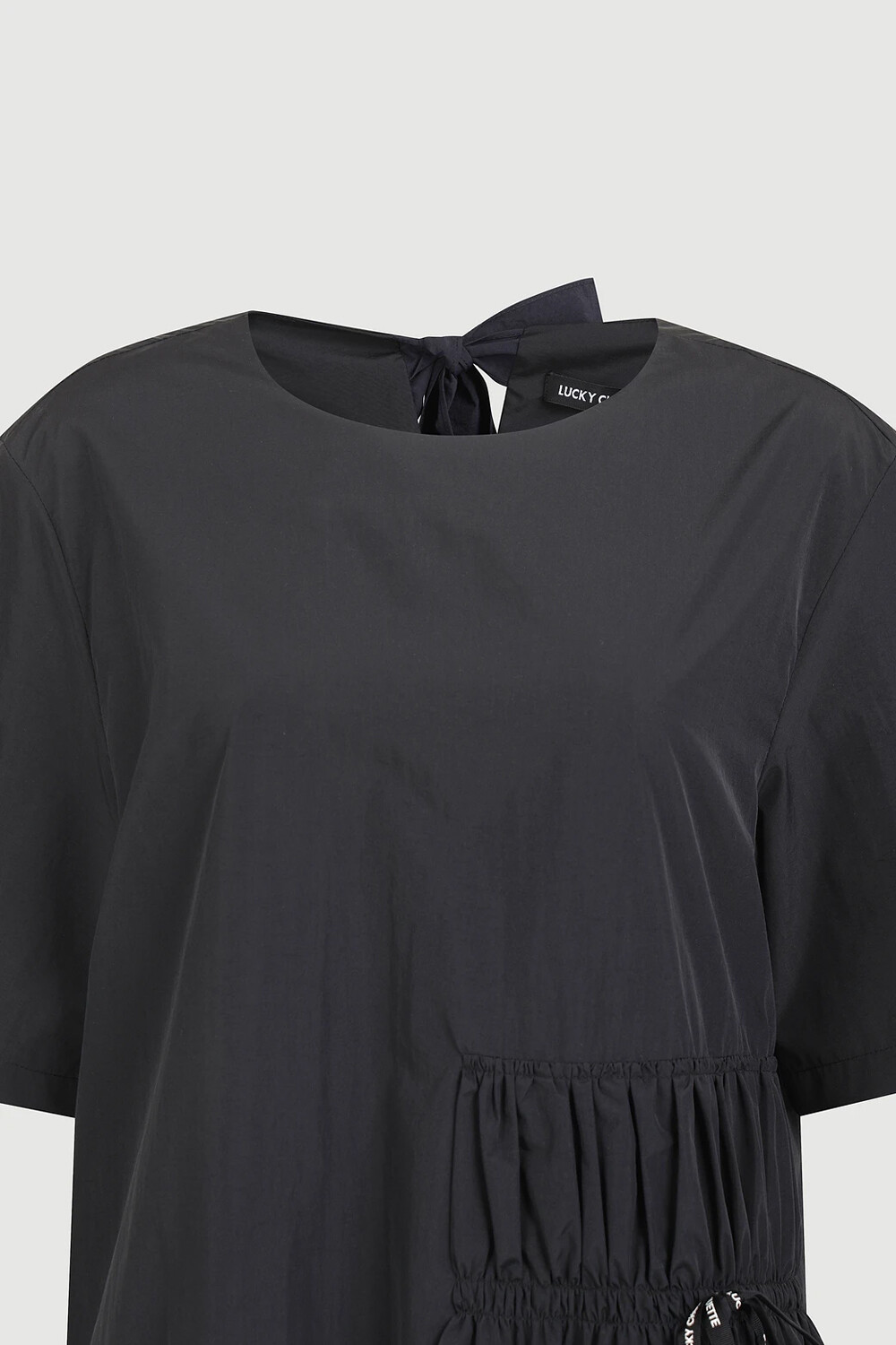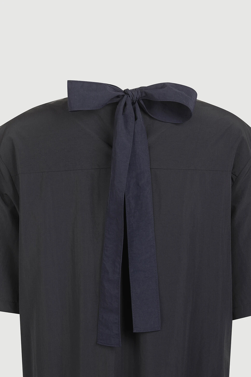 - 앞 리본 디테일이 달린 러플 디테일과 뒷 넥 끈으로 포인트를 줌.
