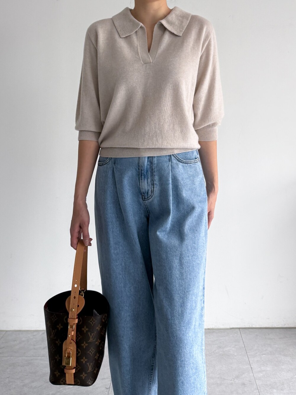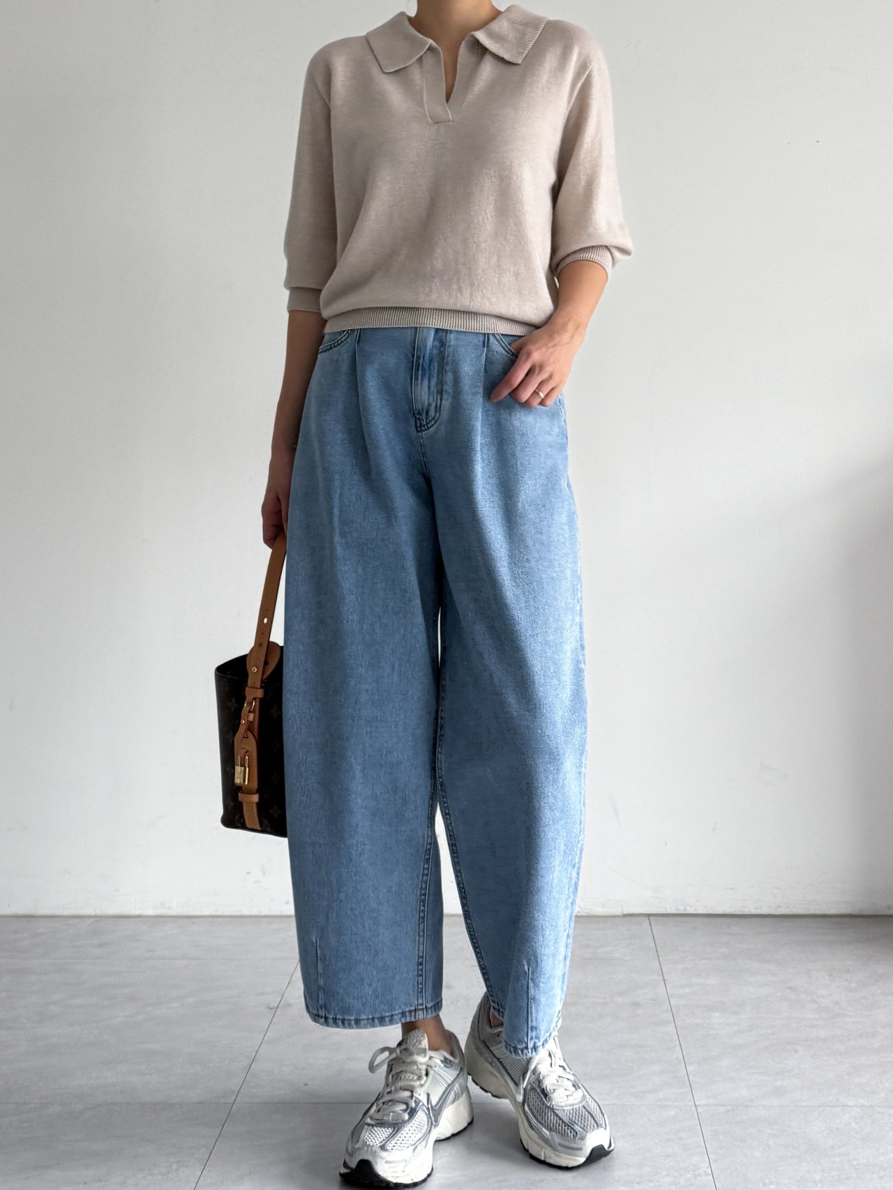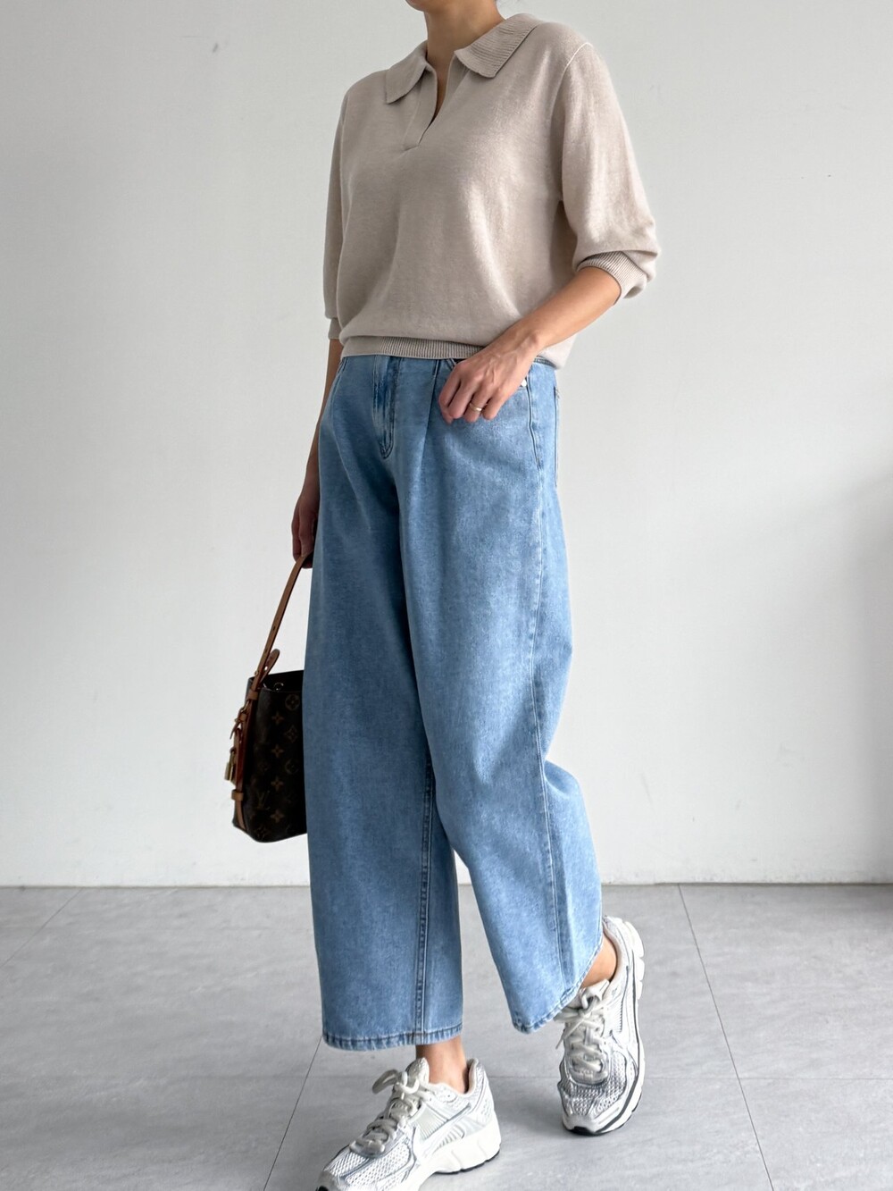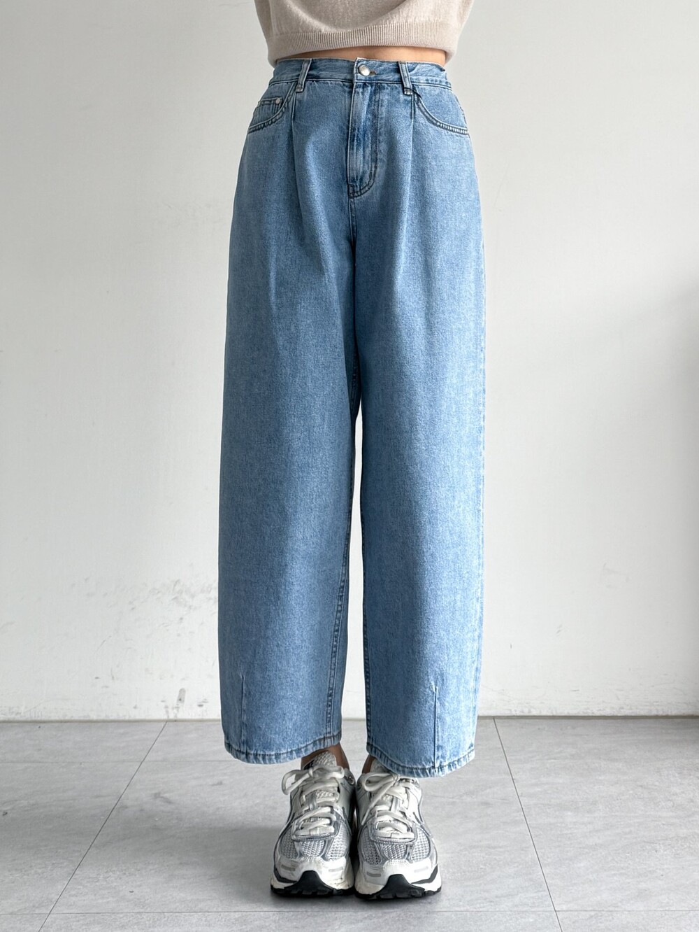 제이코코. 원턱 와이드 크롭 데님 팬츠