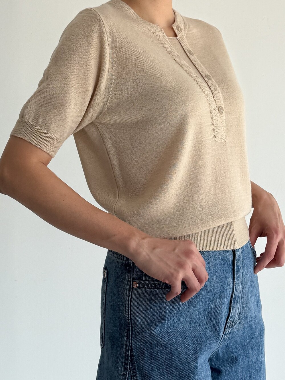 돋보이는 울 혼방 니트 탑으로,