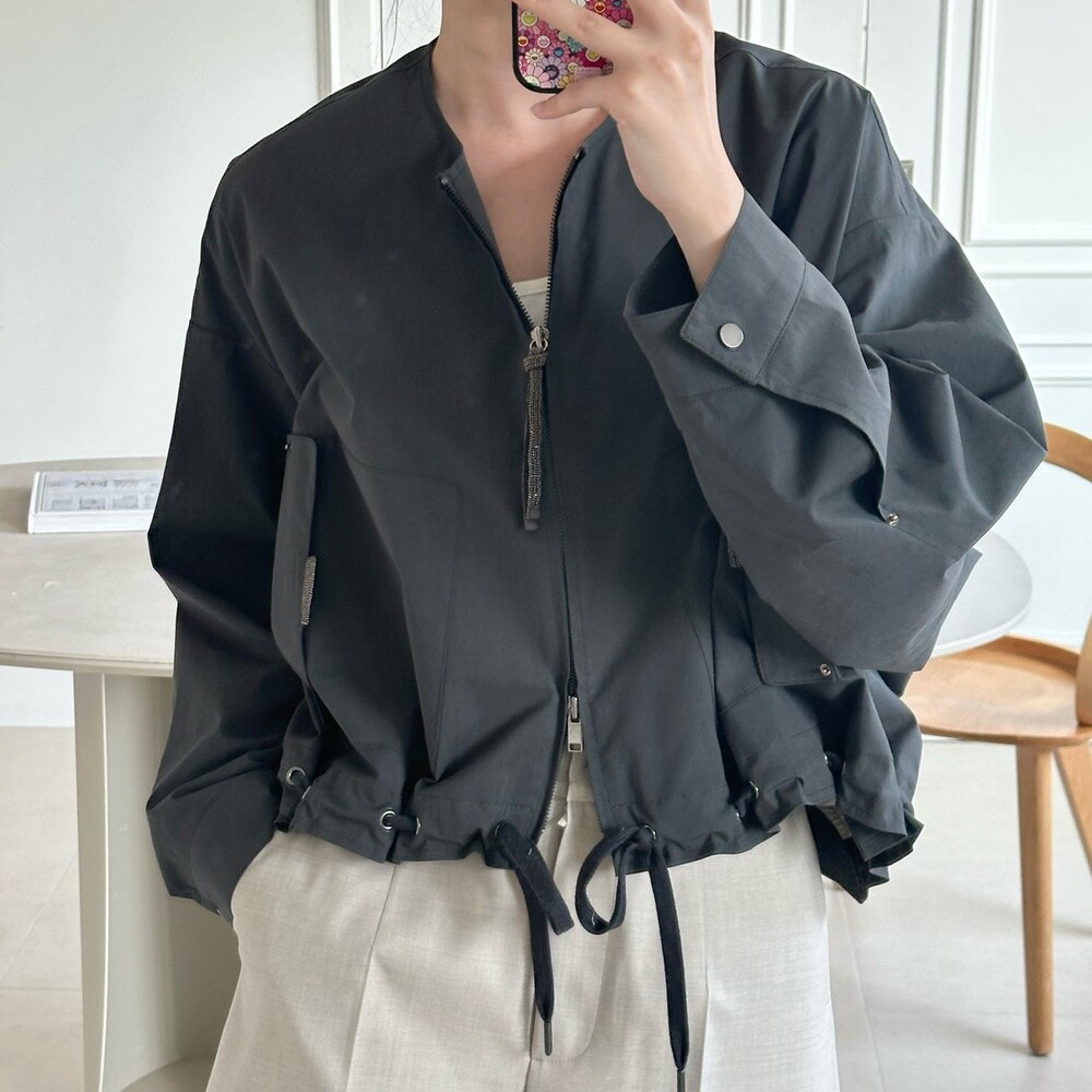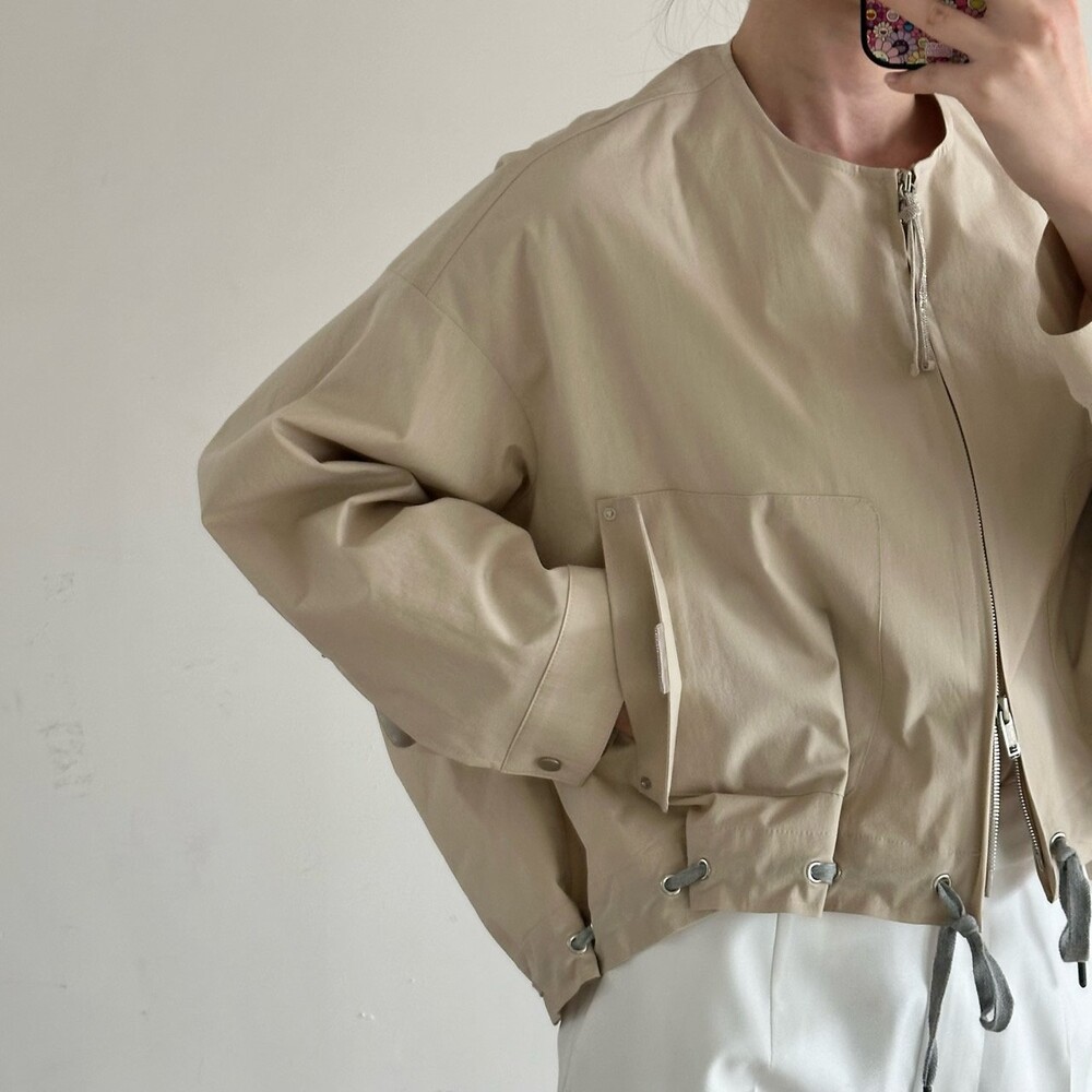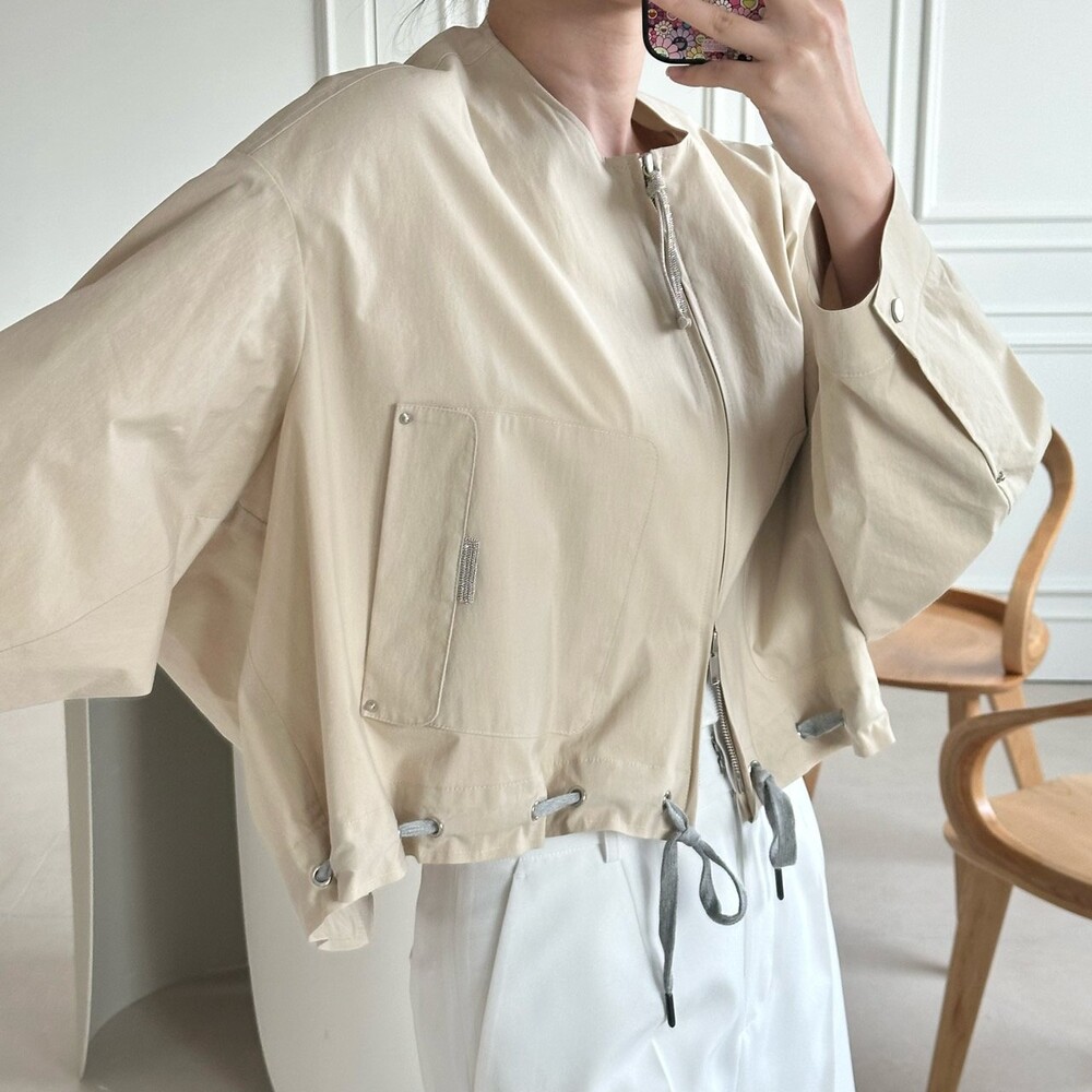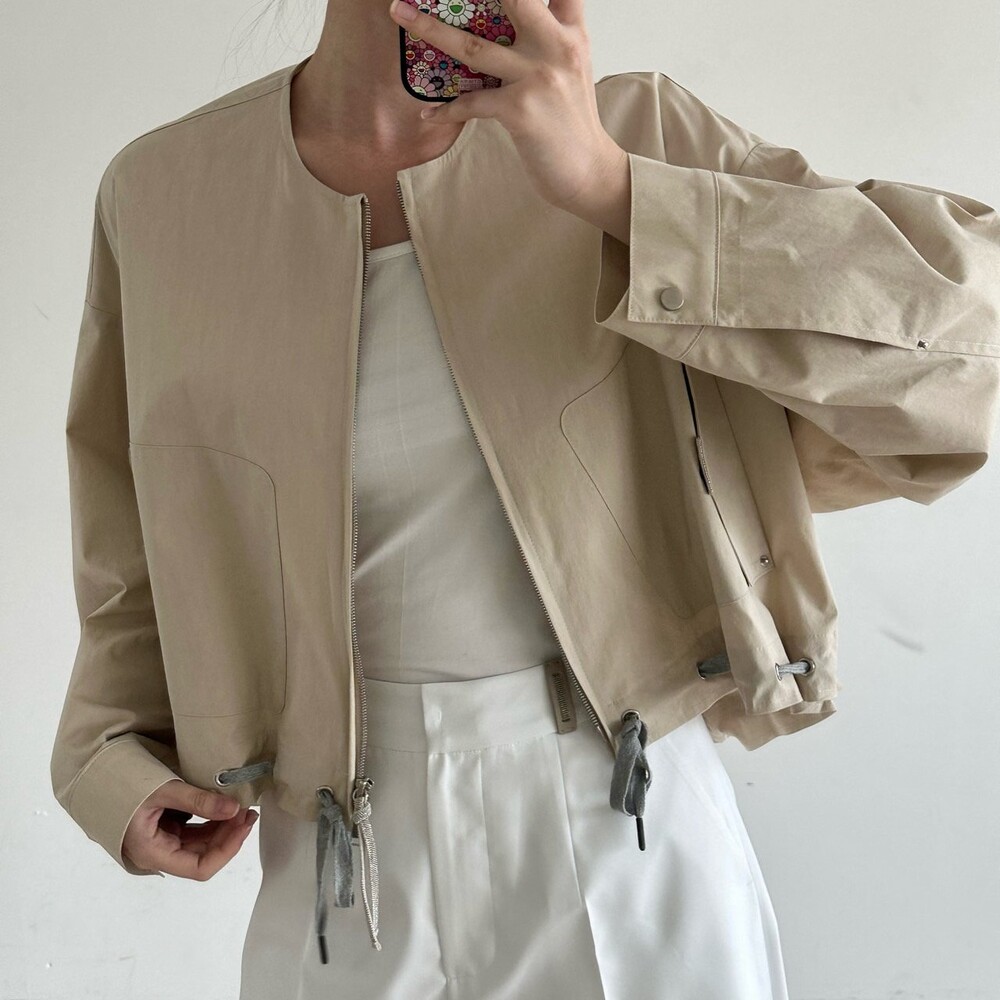 면 혼방 칼라리스 크롭 자켓으로,