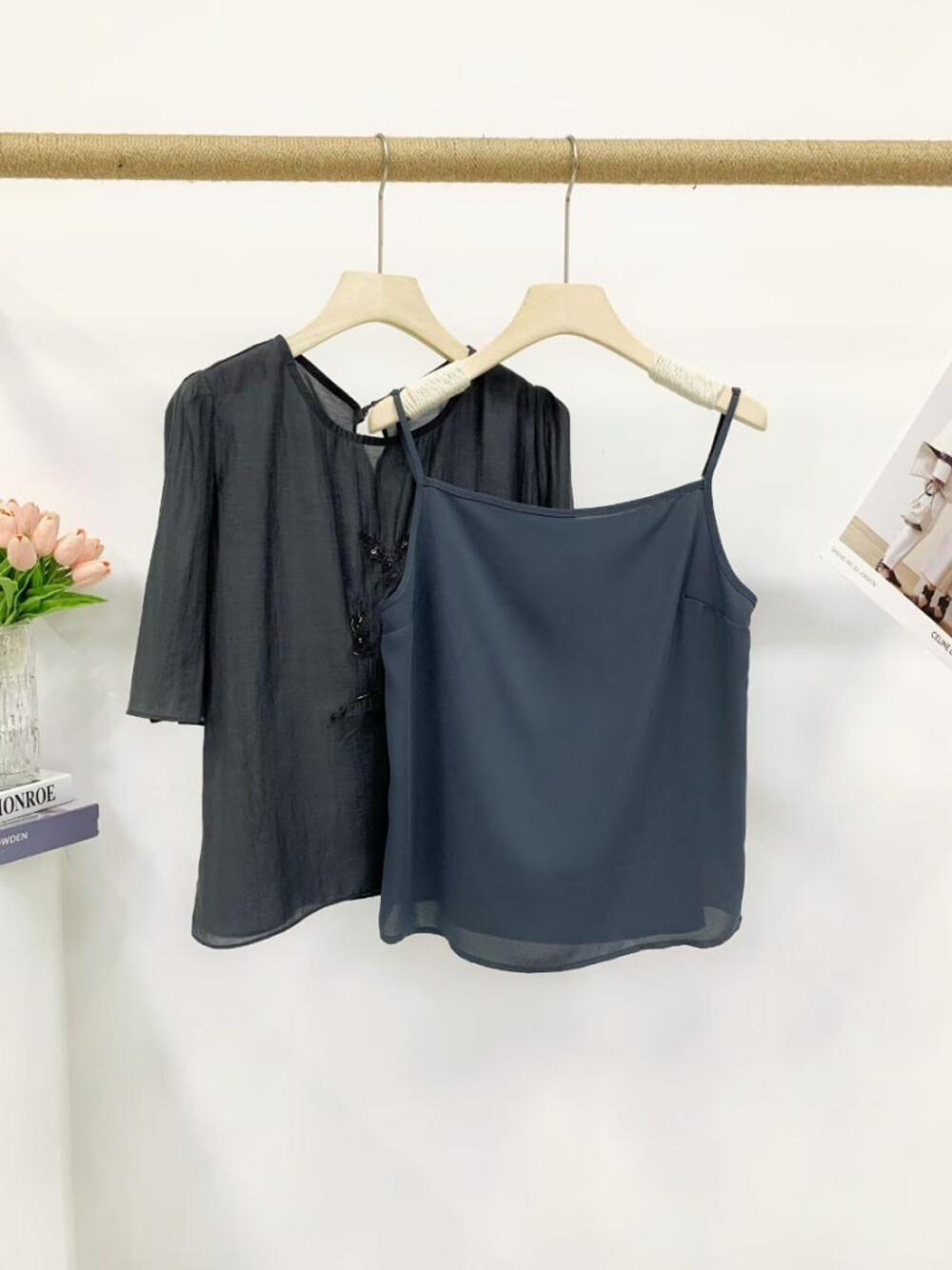 블라우스 66 : 총장 55.5cm, 어깨단면 37cm, 가슴둘레 110cm