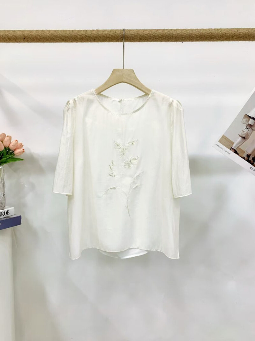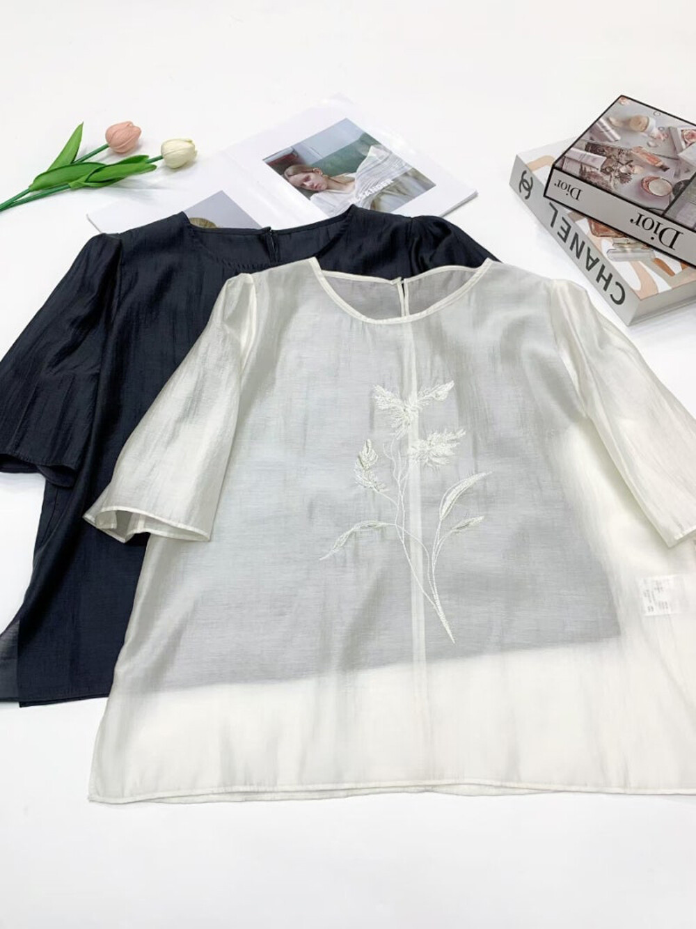 블라우스 55 : 총장 54.5cm, 어깨단면 36cm, 가슴둘레 106cm