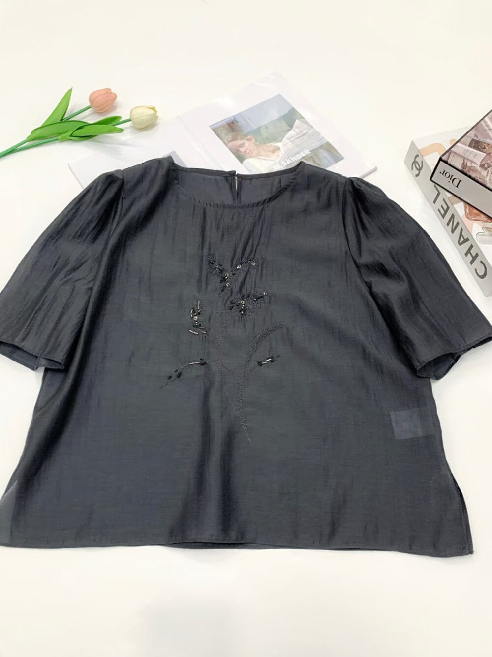 MICHAA. Organza Beading Blouse
