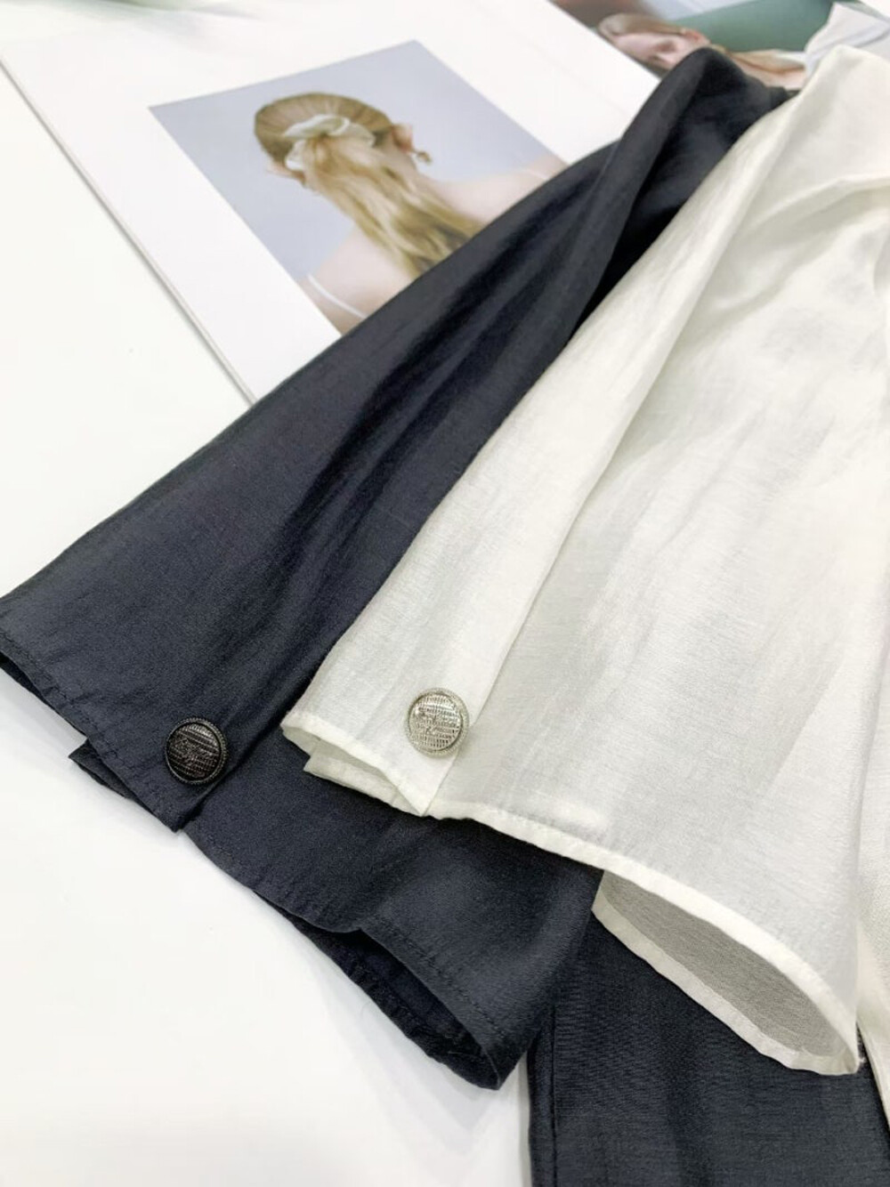 여성스러운 시스루 블라우스입니다.