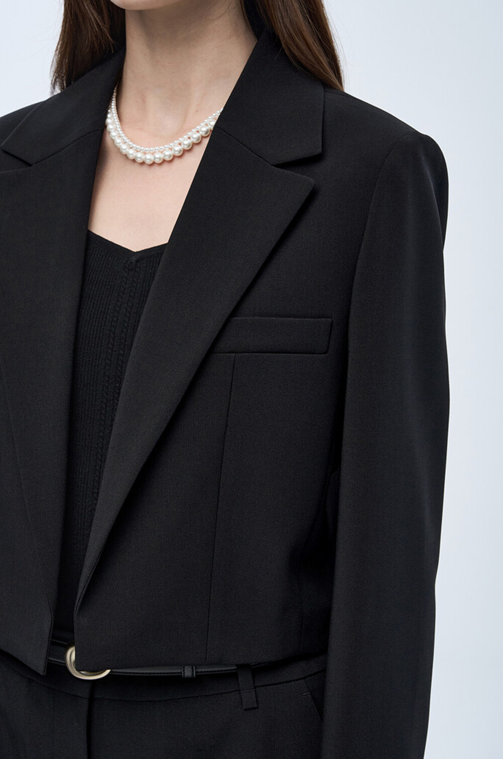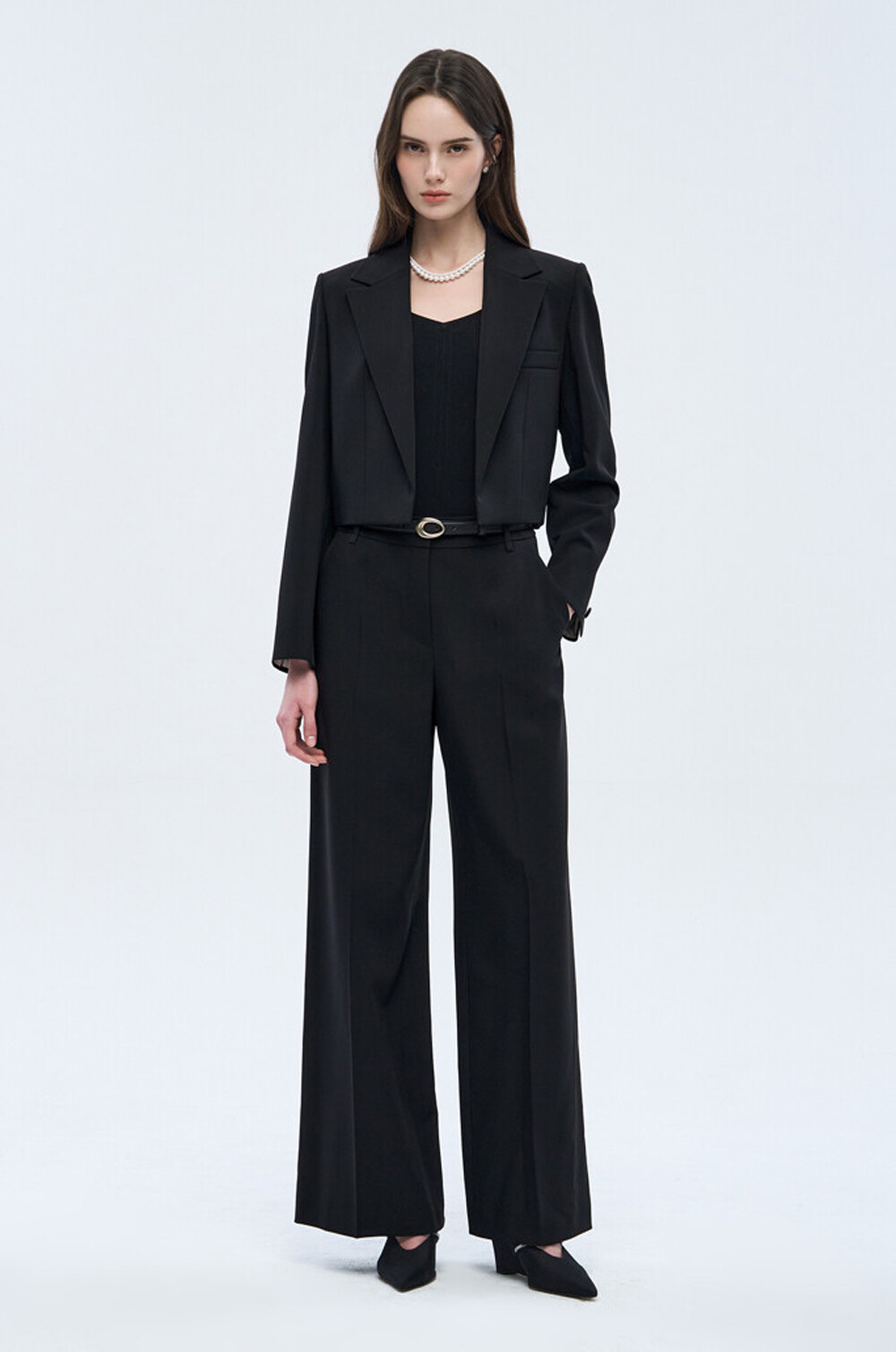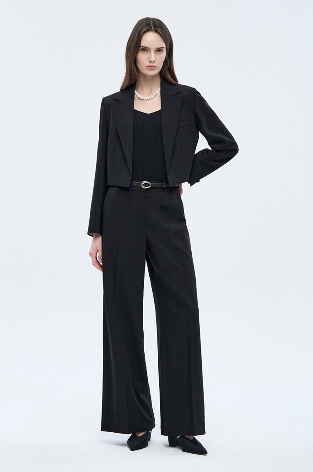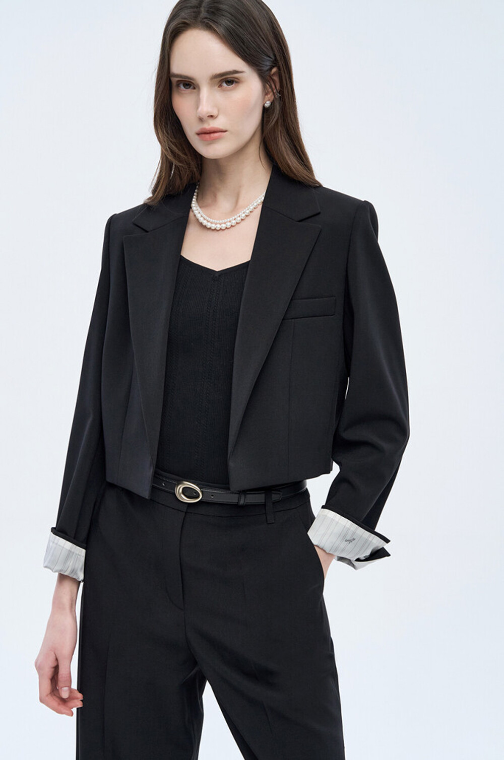 오브제 노치드 라펠 오픈 크롭 자켓 & 팬츠