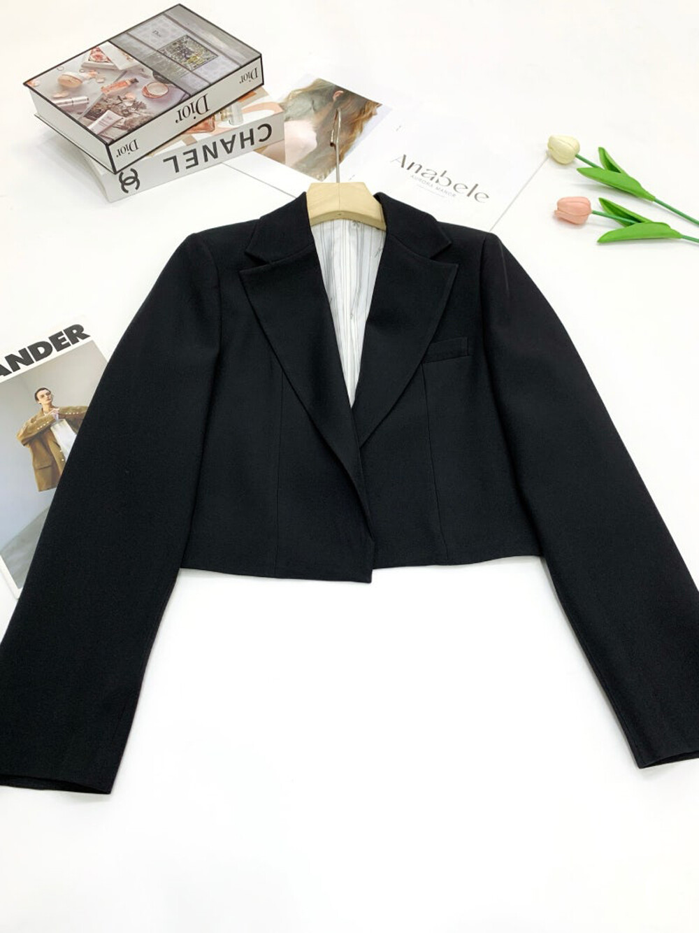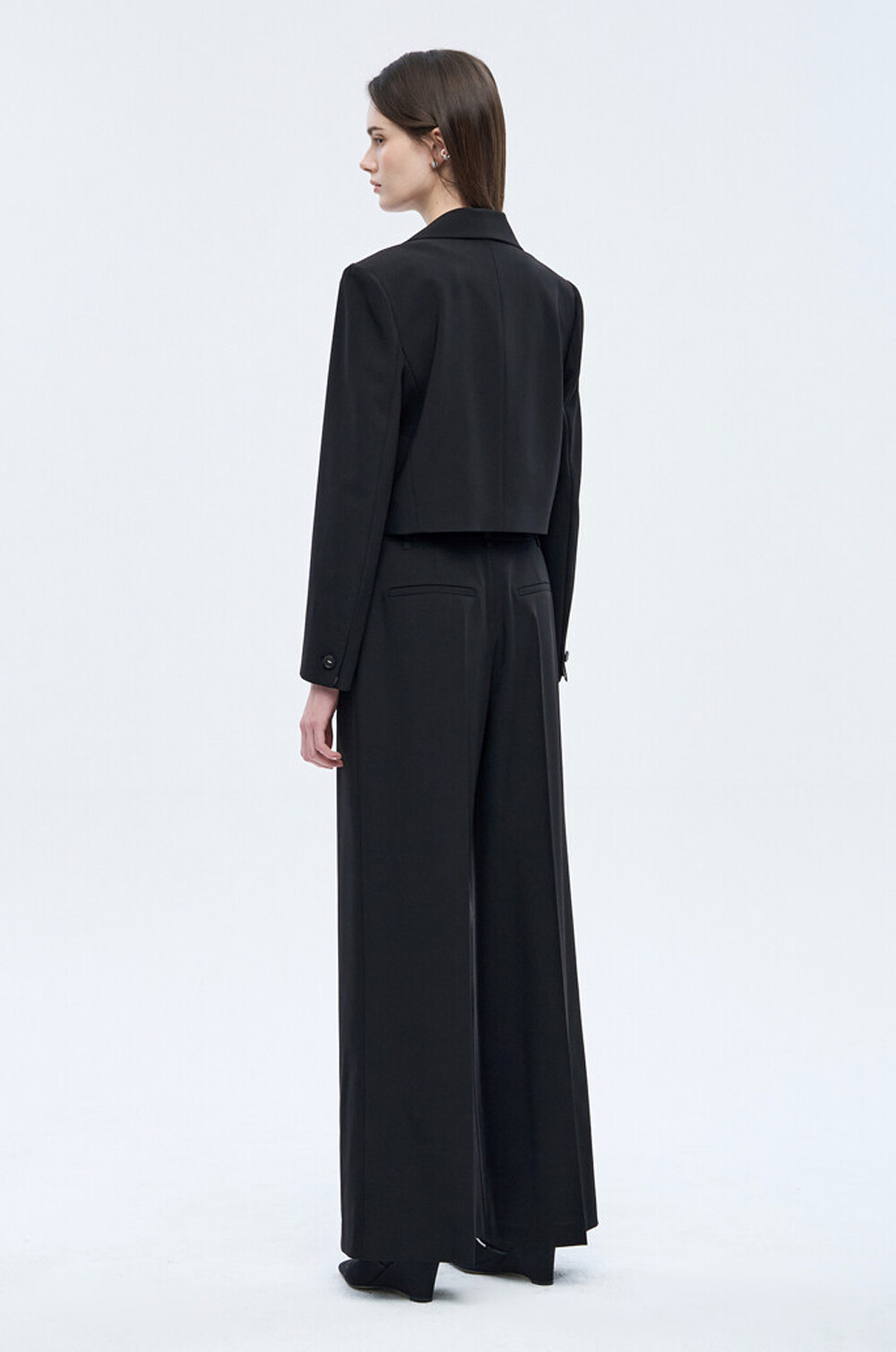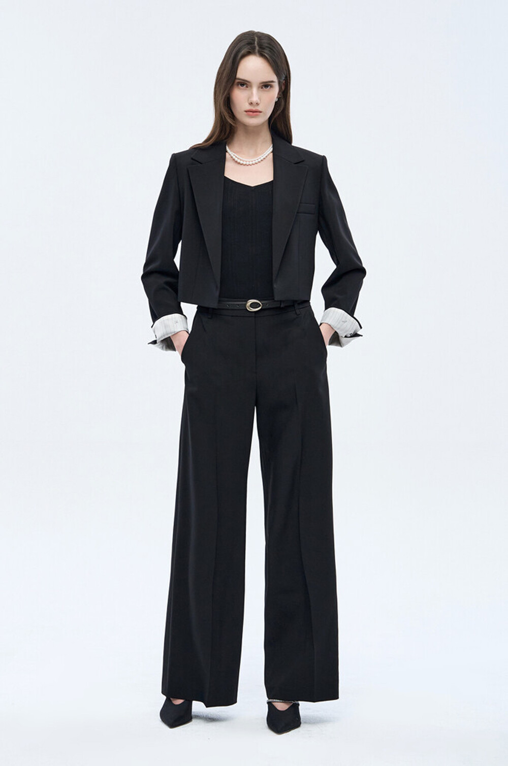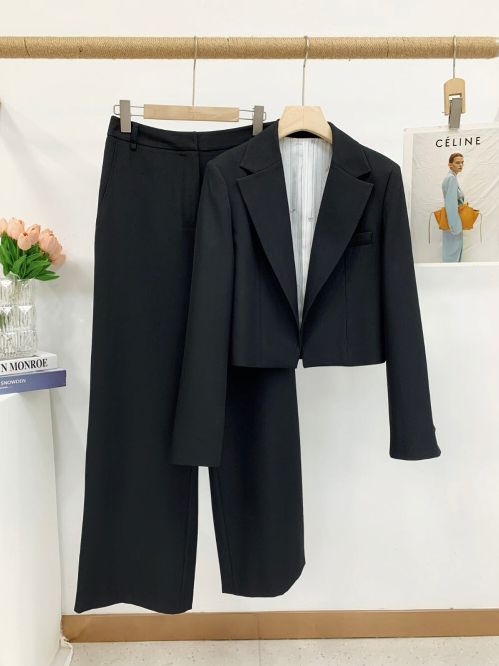 오브제 노치드 라펠 오픈 크롭 자켓 & 팬츠
