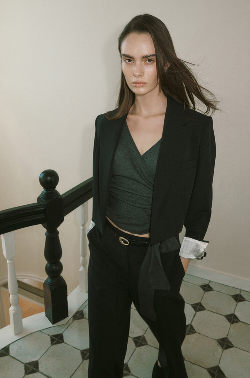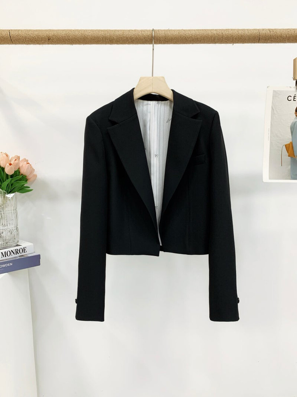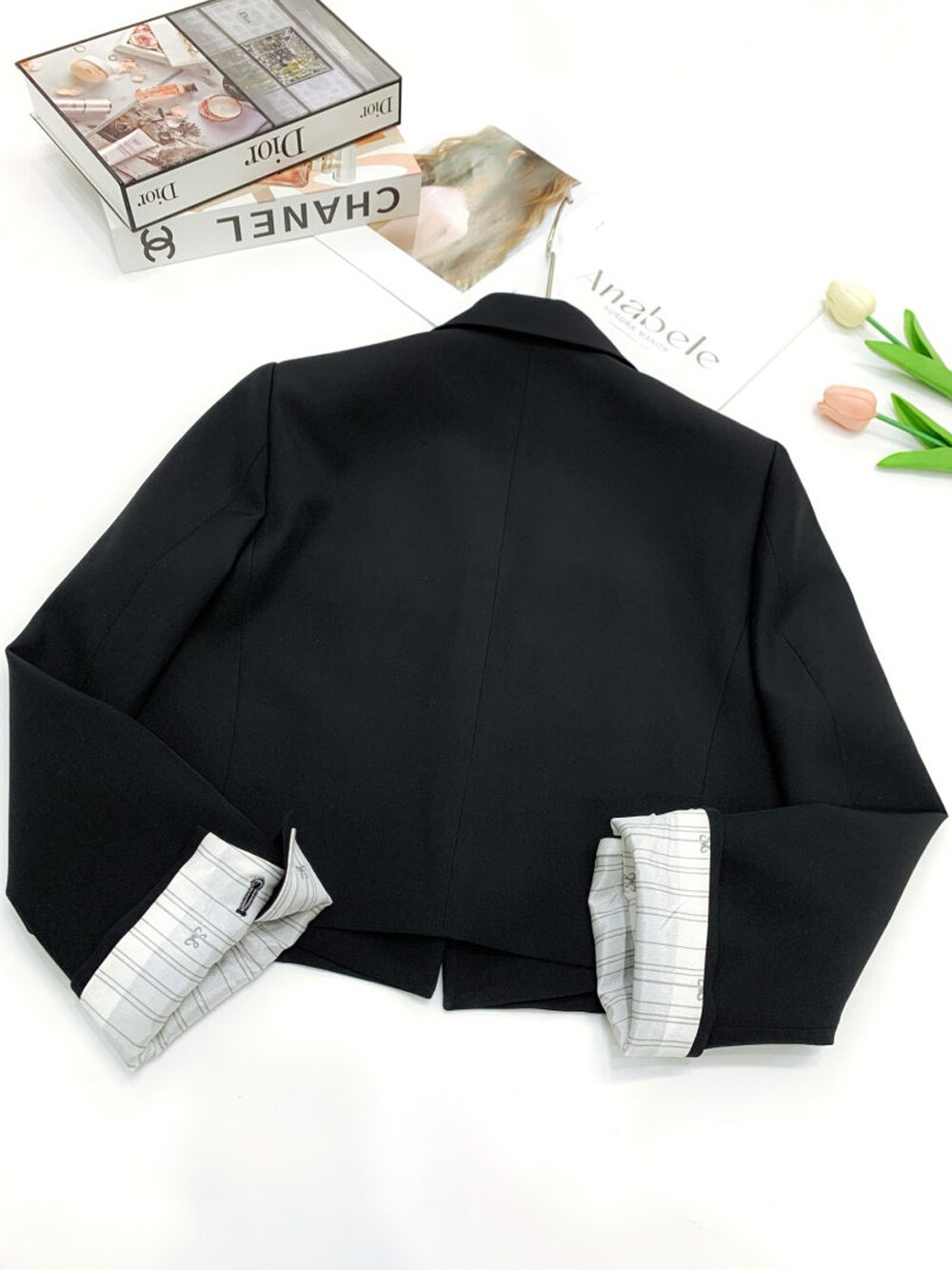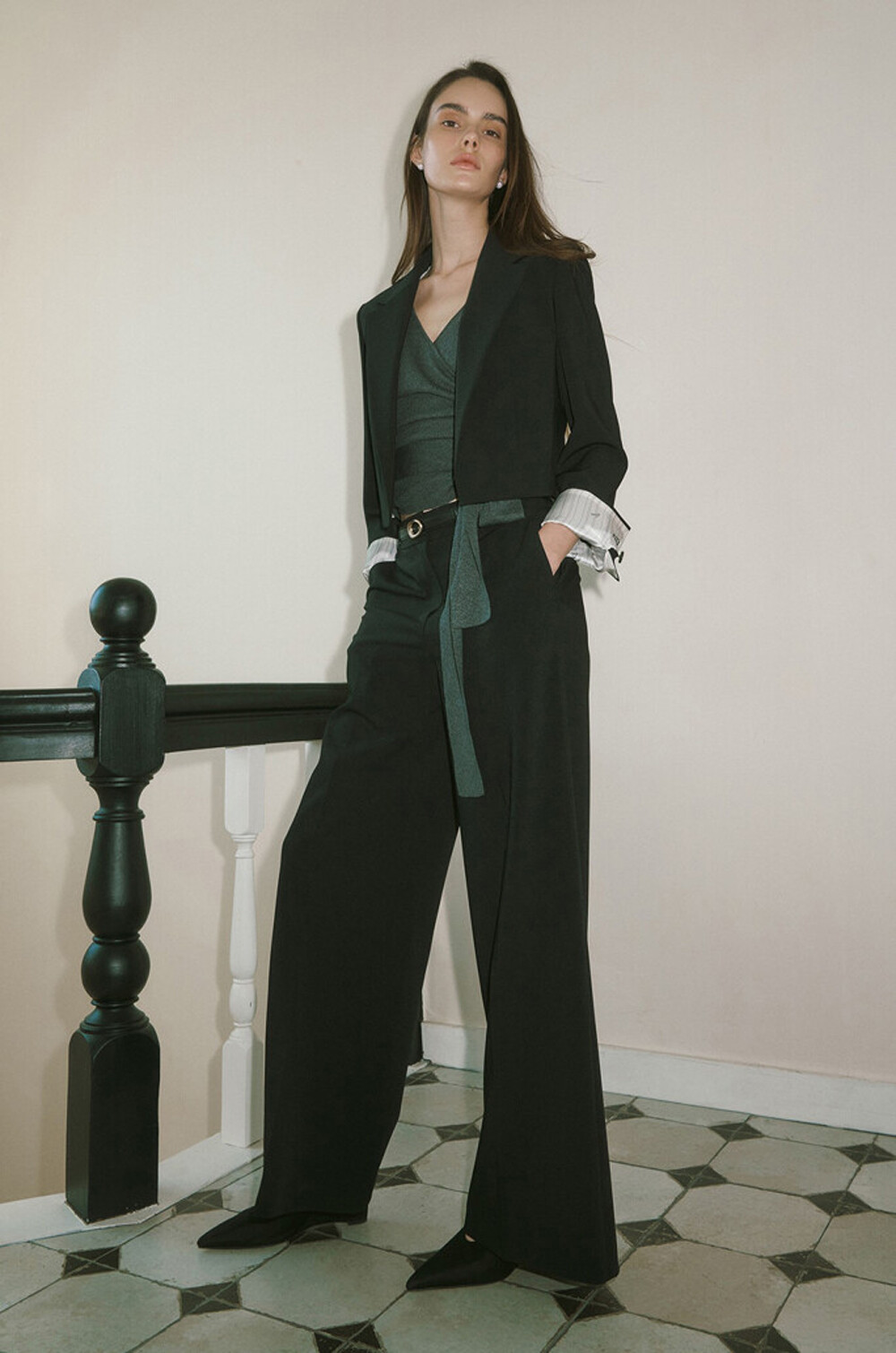 오브제 노치드 라펠 오픈 크롭 자켓 & 팬츠