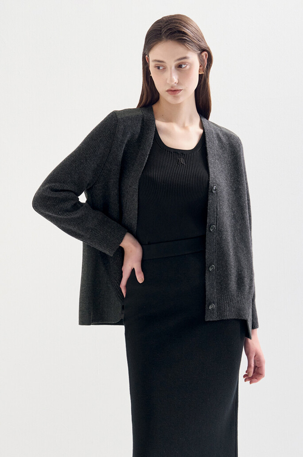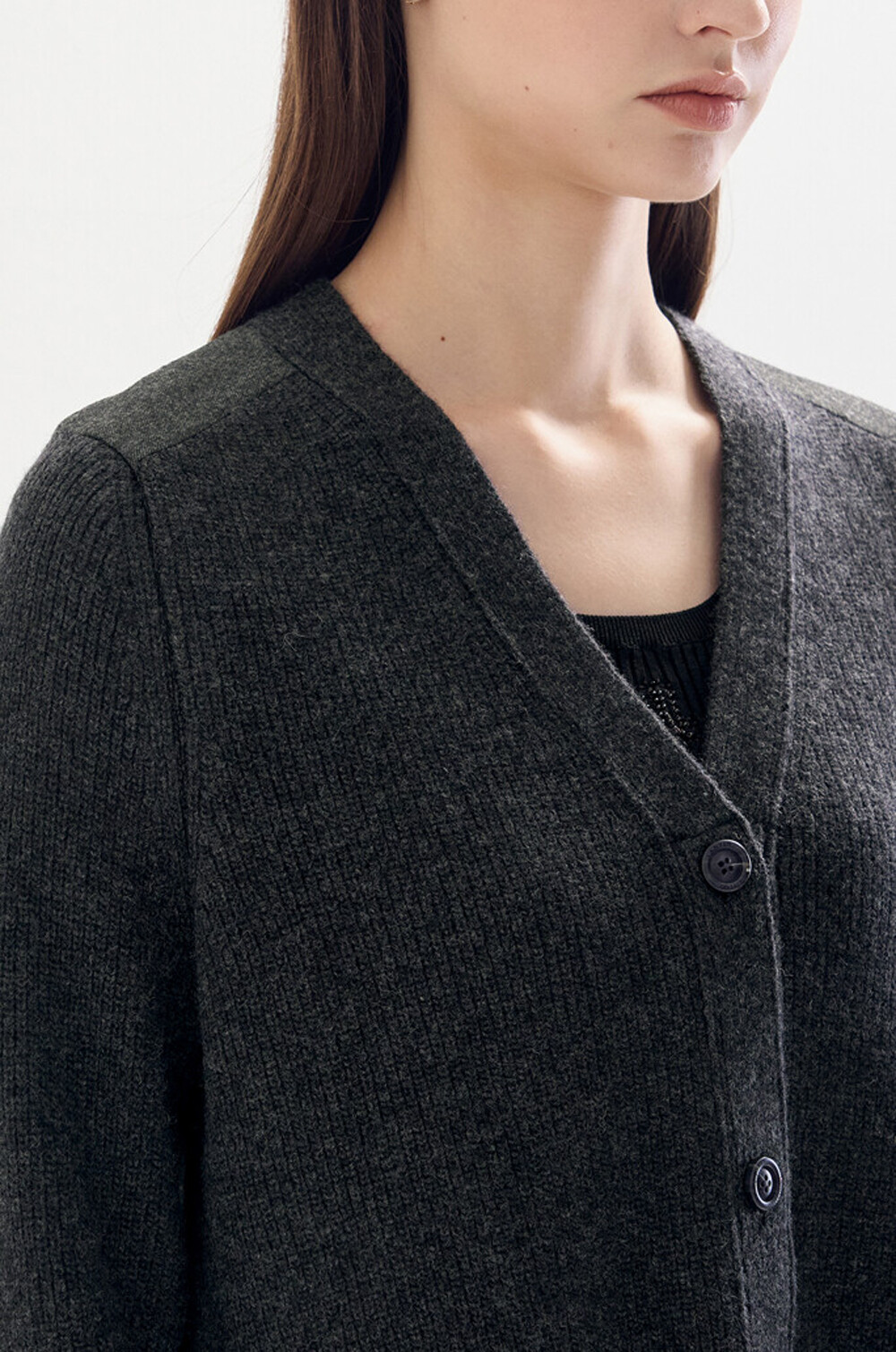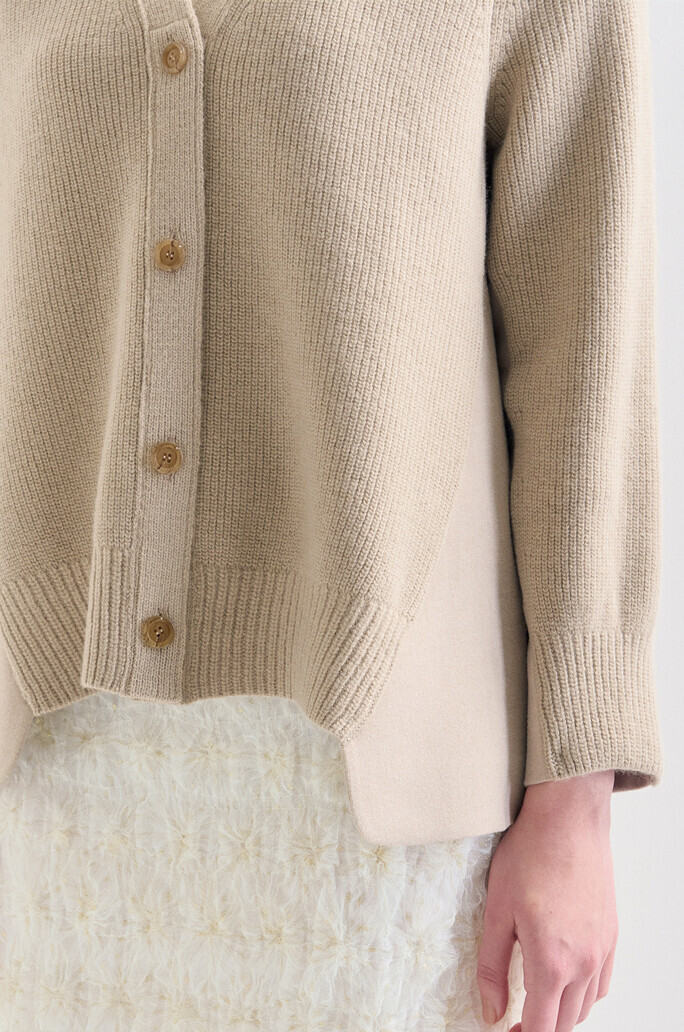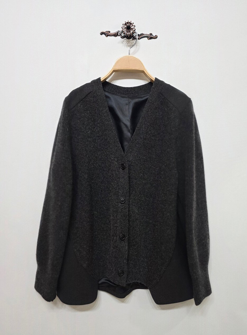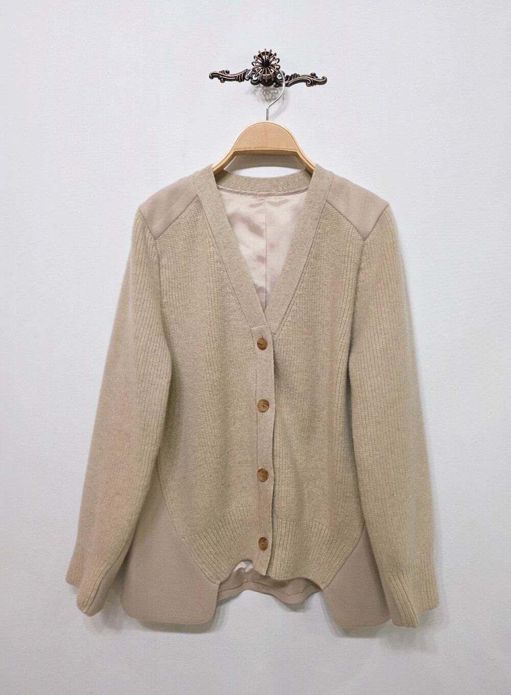 100% 울 브이넥 니트 자켓으로,