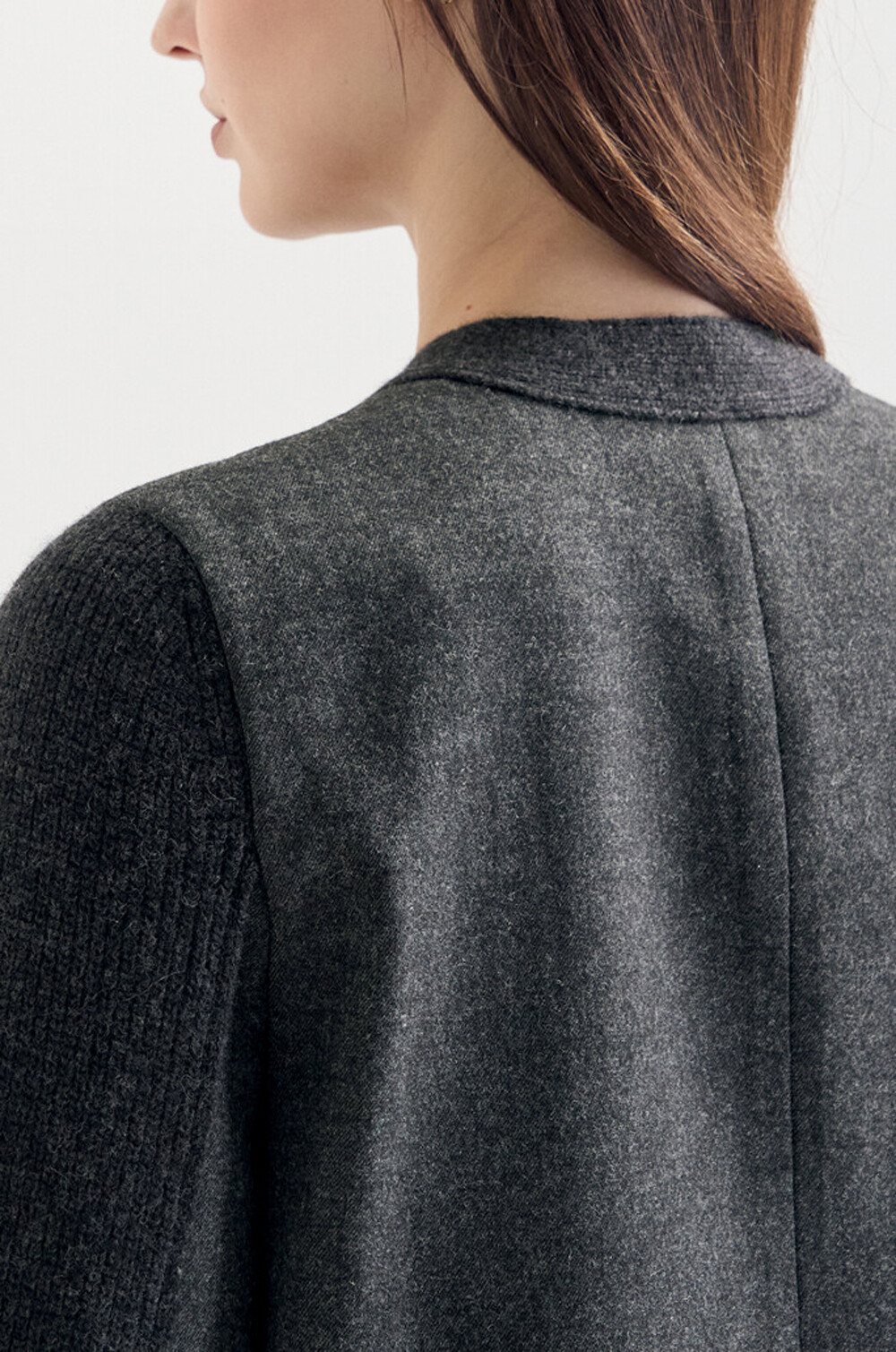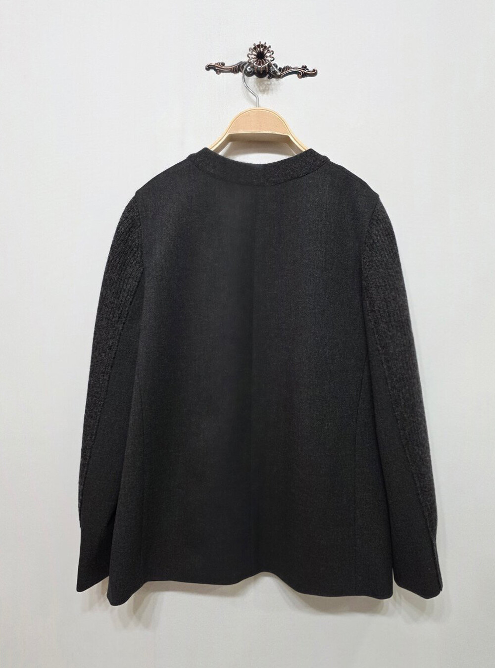 랑방컬렉션 울 텍스처 블록 니트 자켓