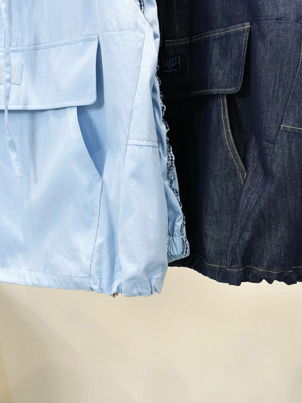 - 빅 사이즈의 포켓 플라켓과 중심의 와펜 디테일로 포인트를 줌.