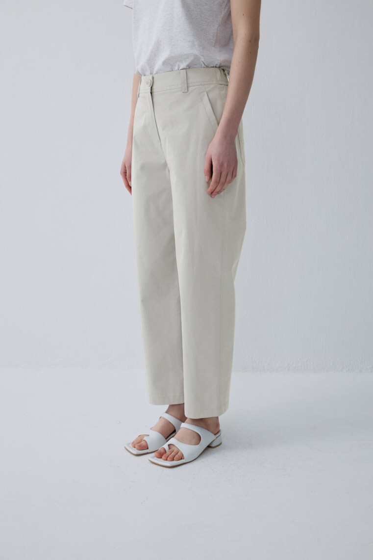 - 코튼, 폴리 혼방 소재의 세미 배기 핏 팬츠