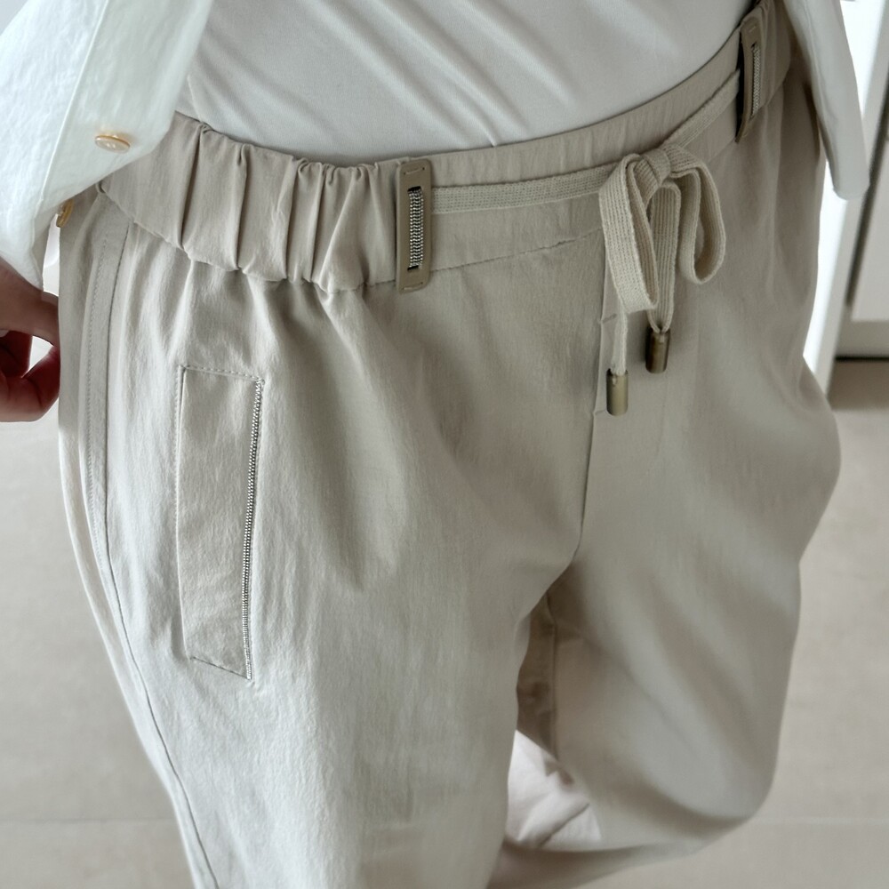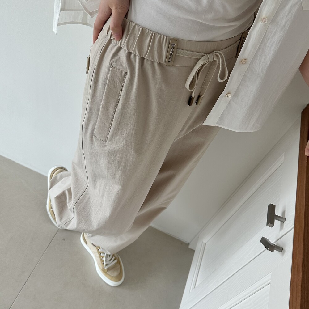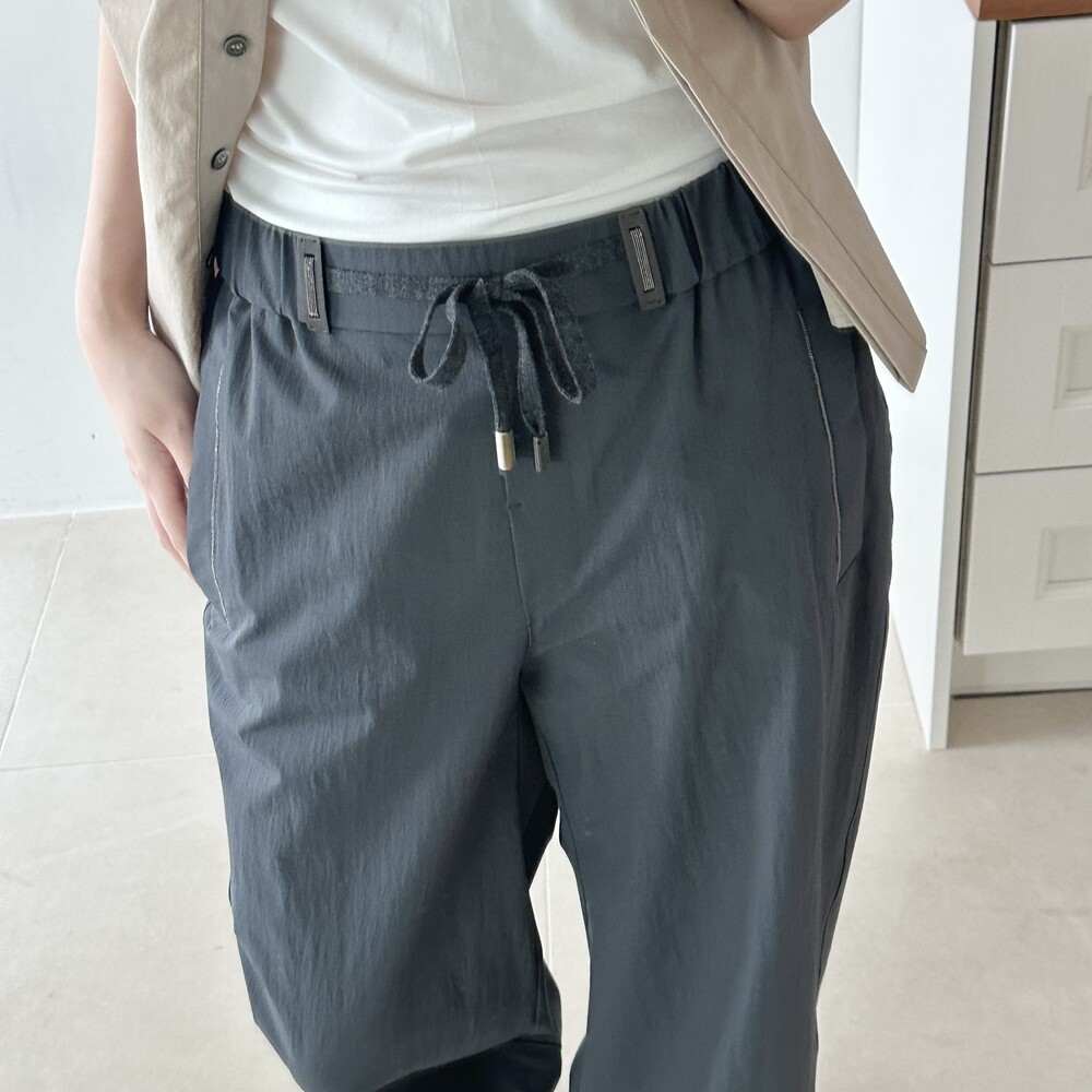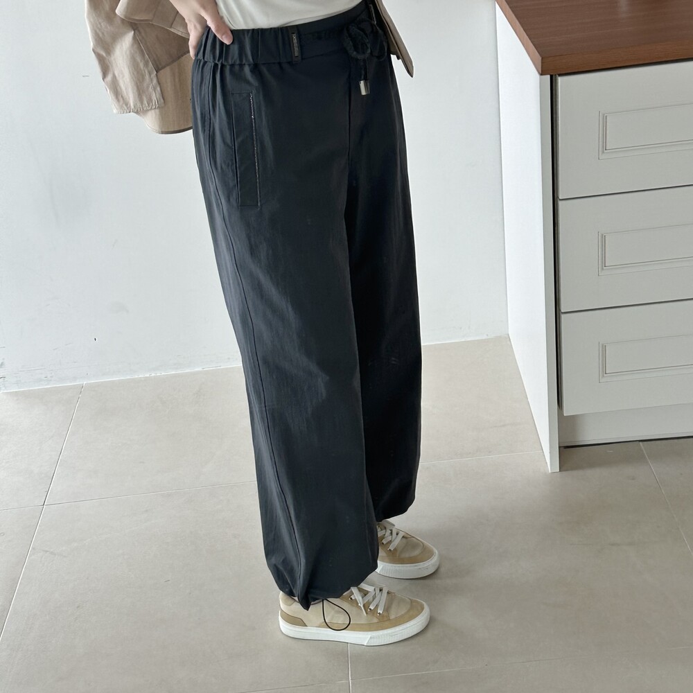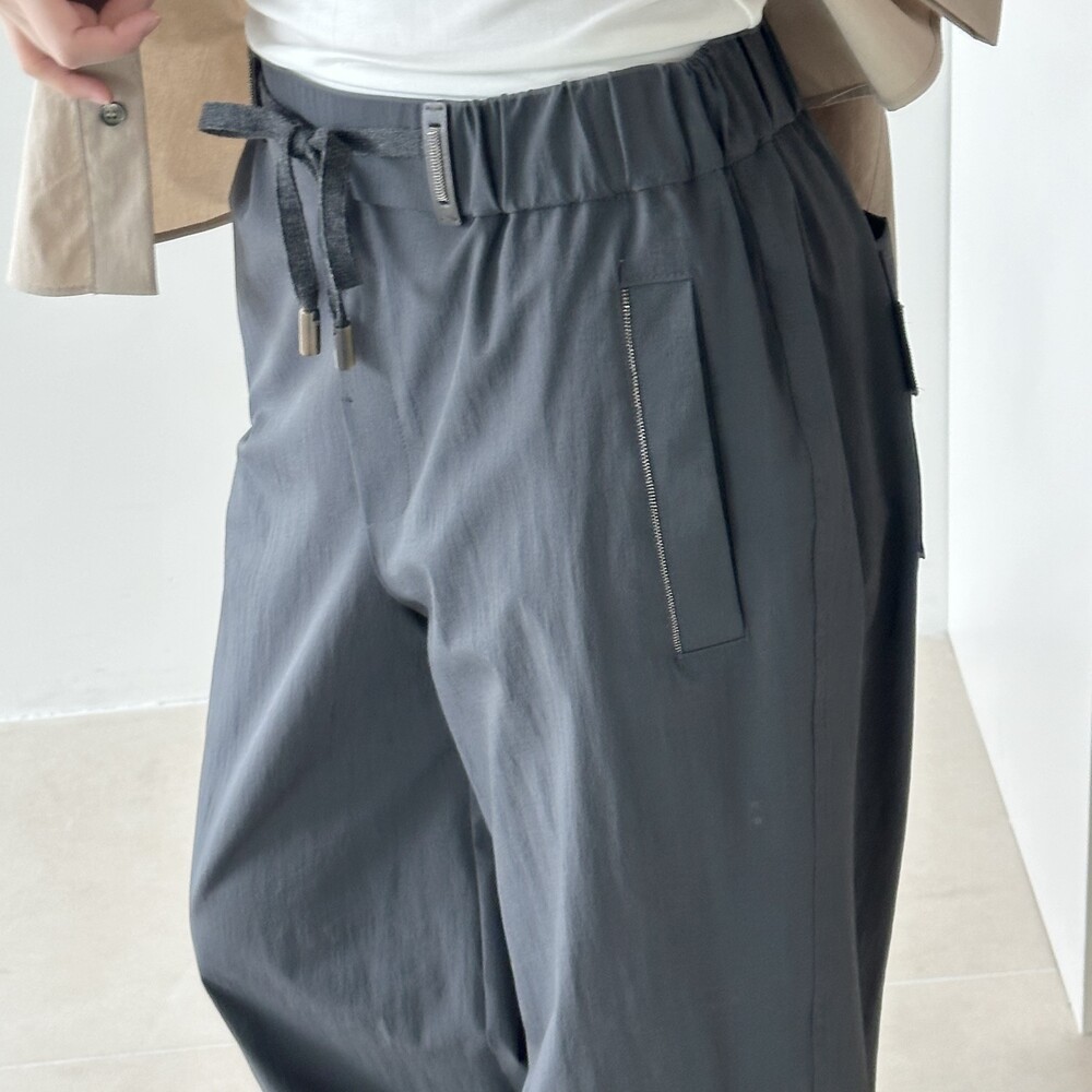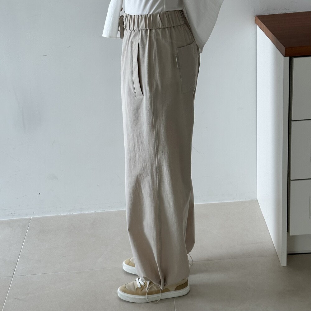 맨션. 쿠치 드로우스트링 헴 와이드 밴딩 팬츠