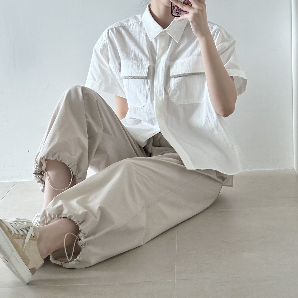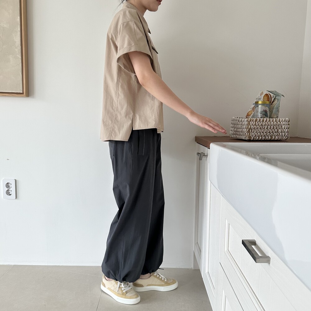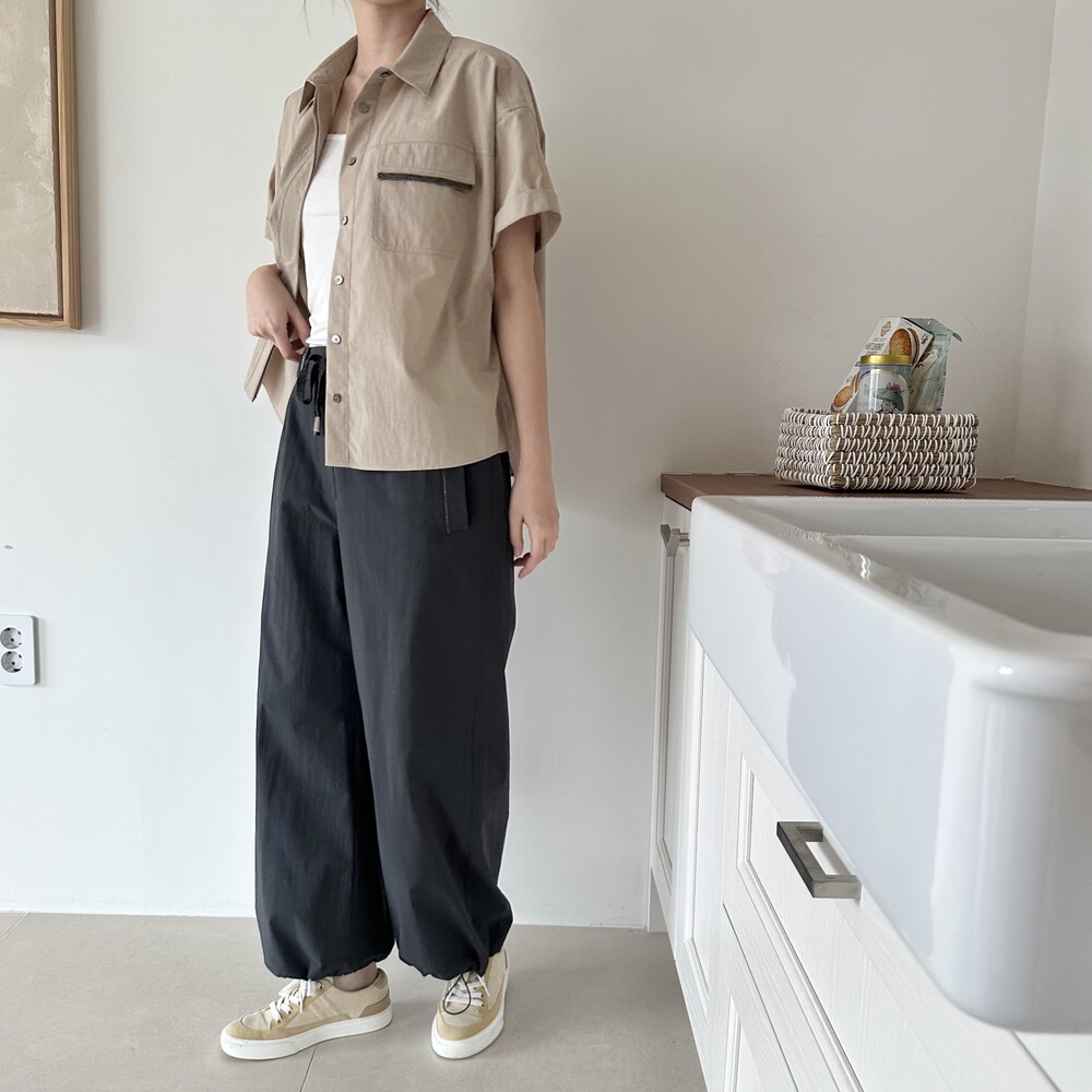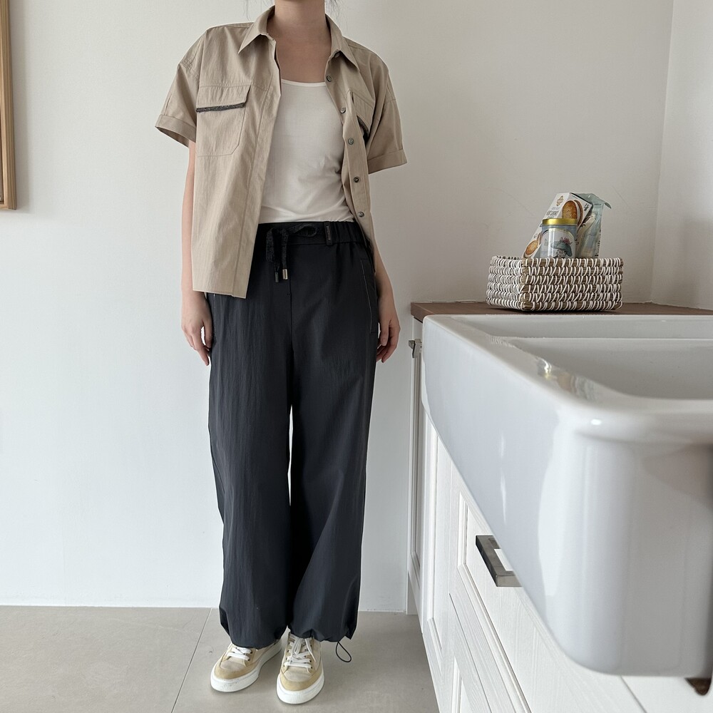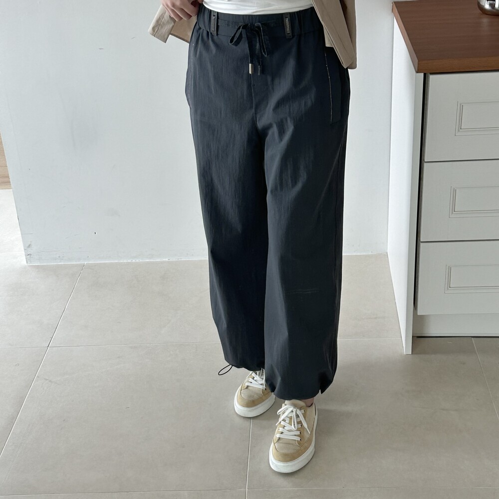 맨션. 쿠치 드로우스트링 헴 와이드 밴딩 팬츠