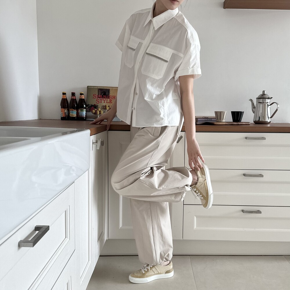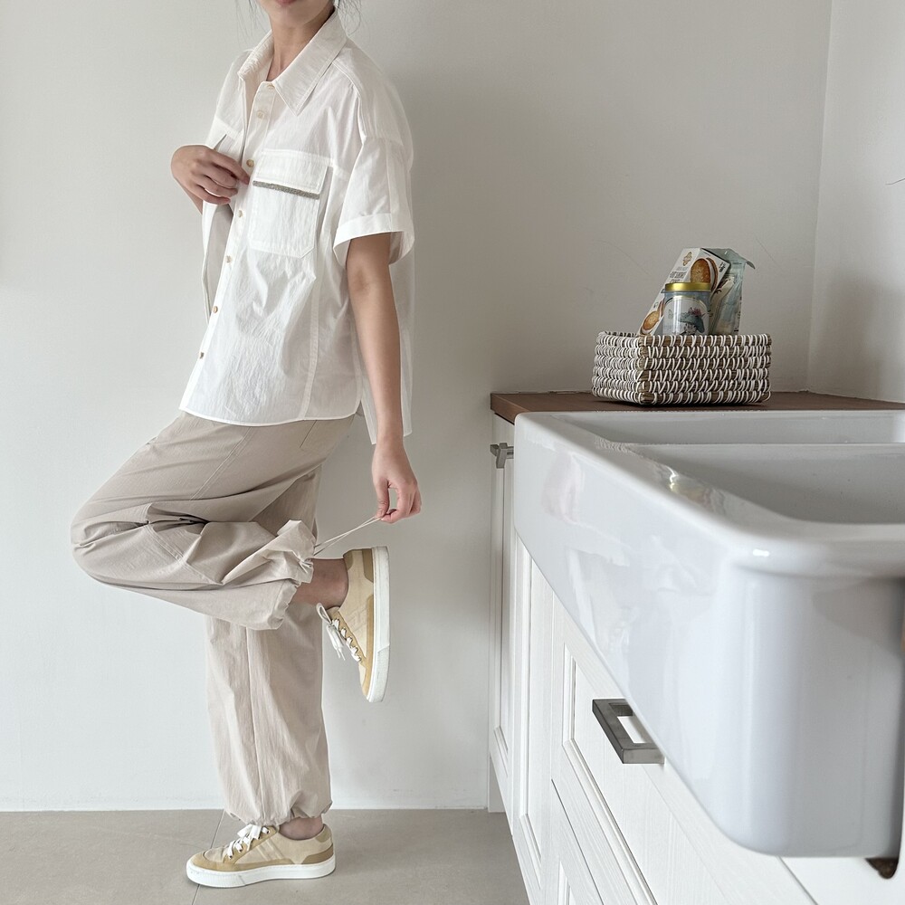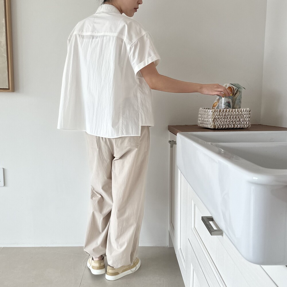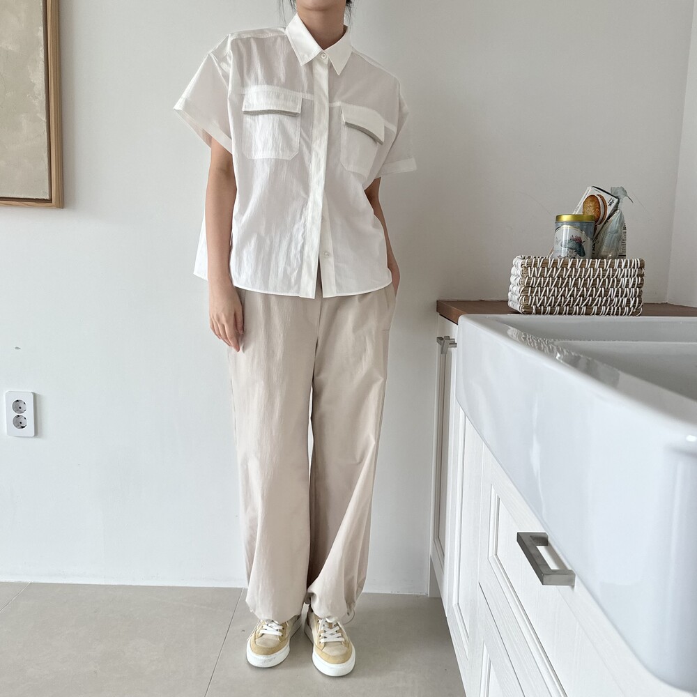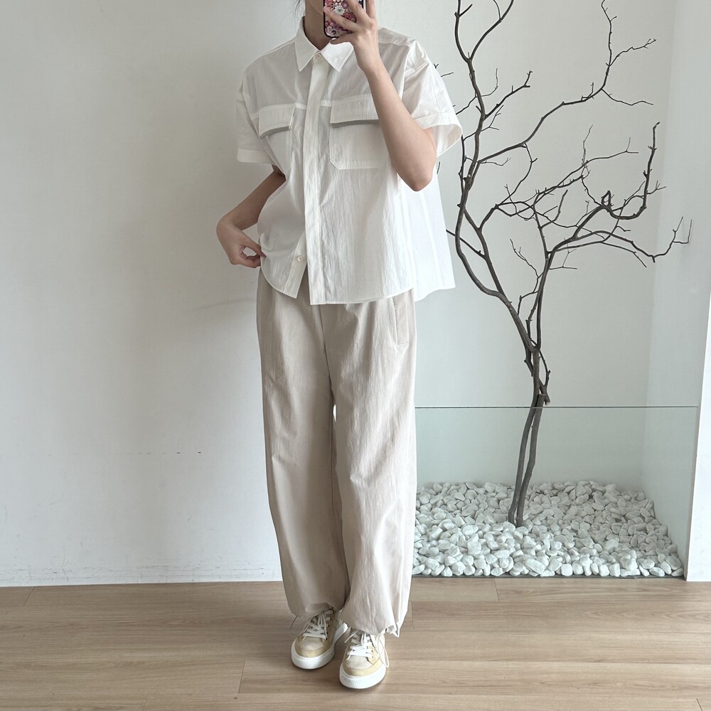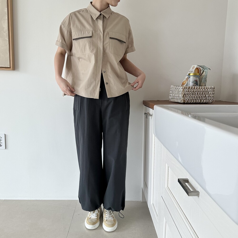 맨션. 쿠치 드로우스트링 헴 와이드 밴딩 팬츠