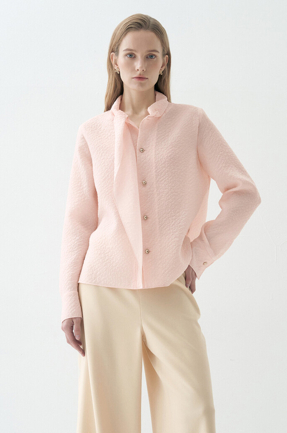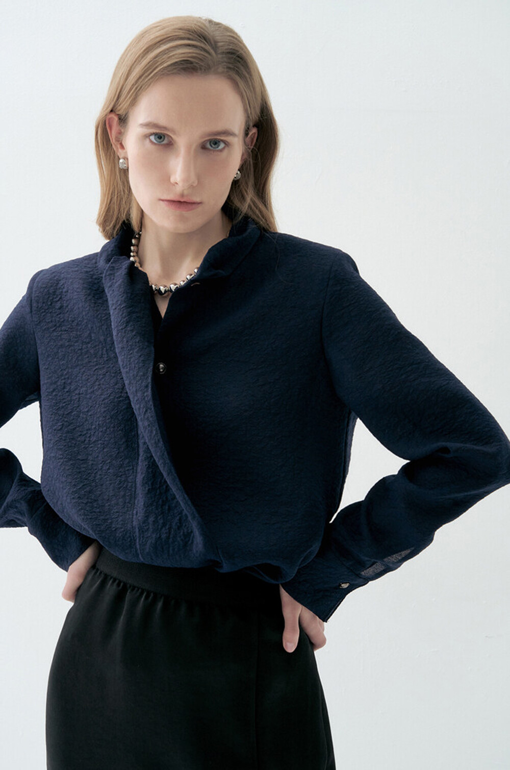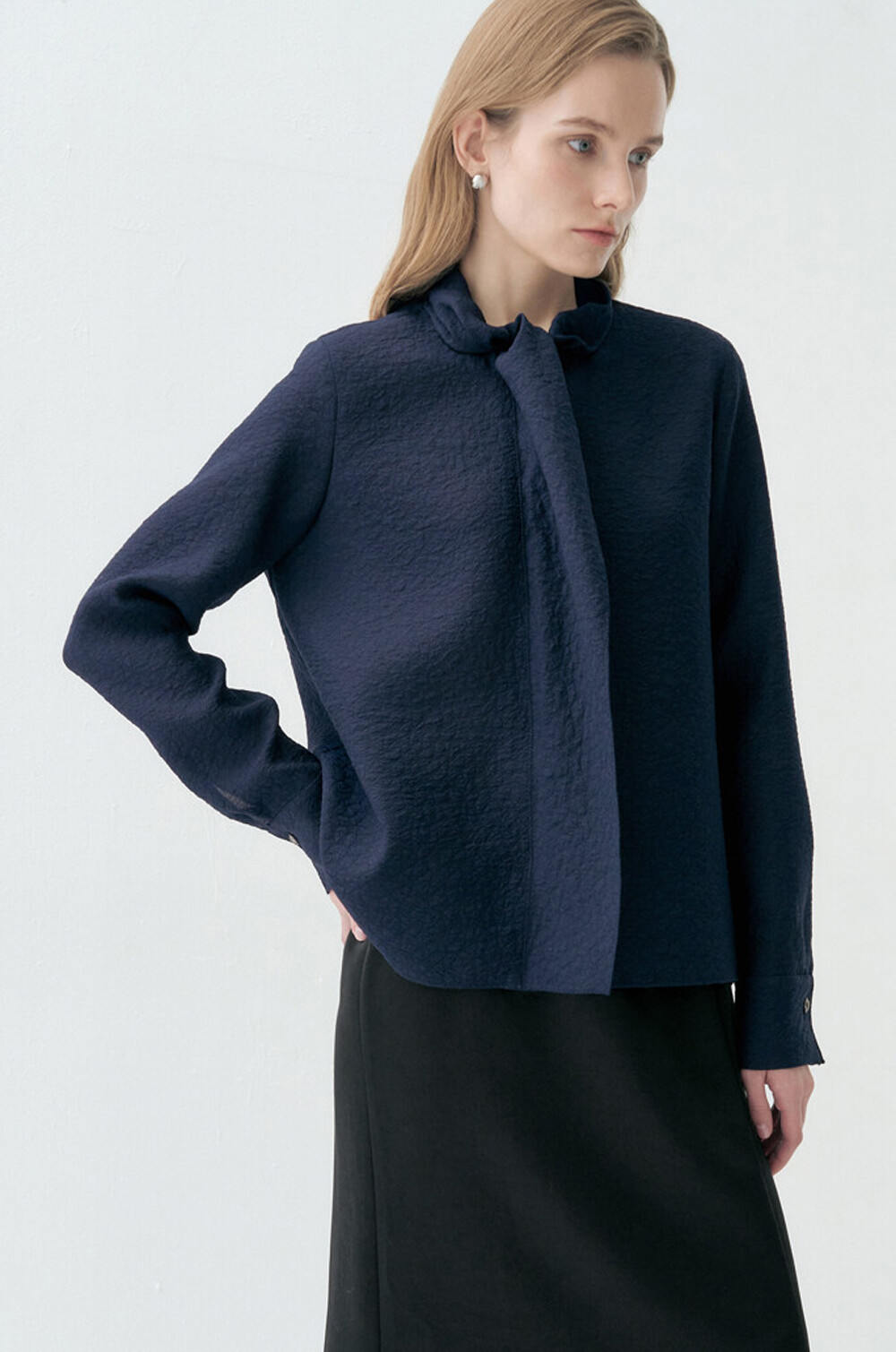 랑방컬렉션 크링클 패널 모크넥 블라우스