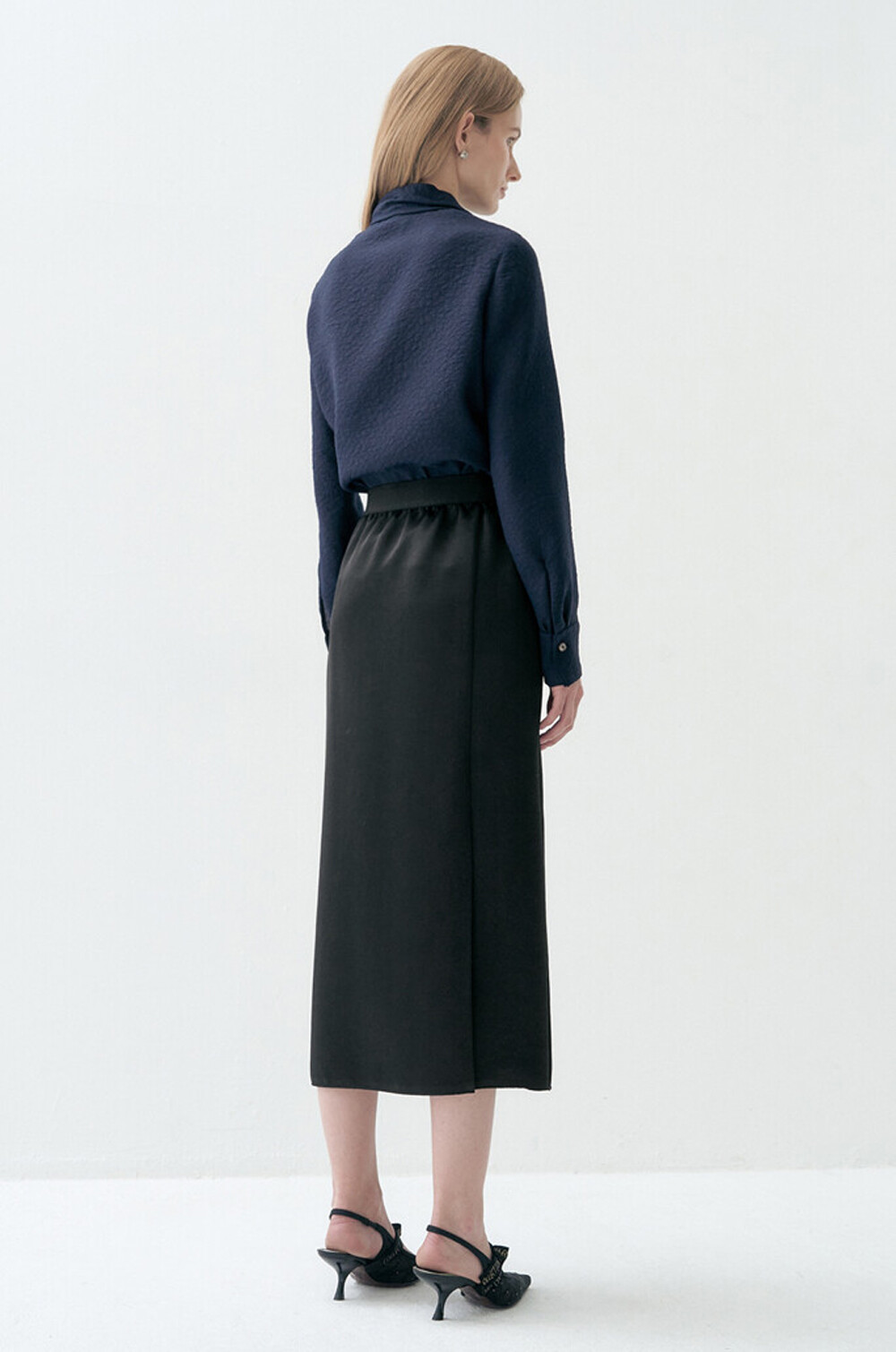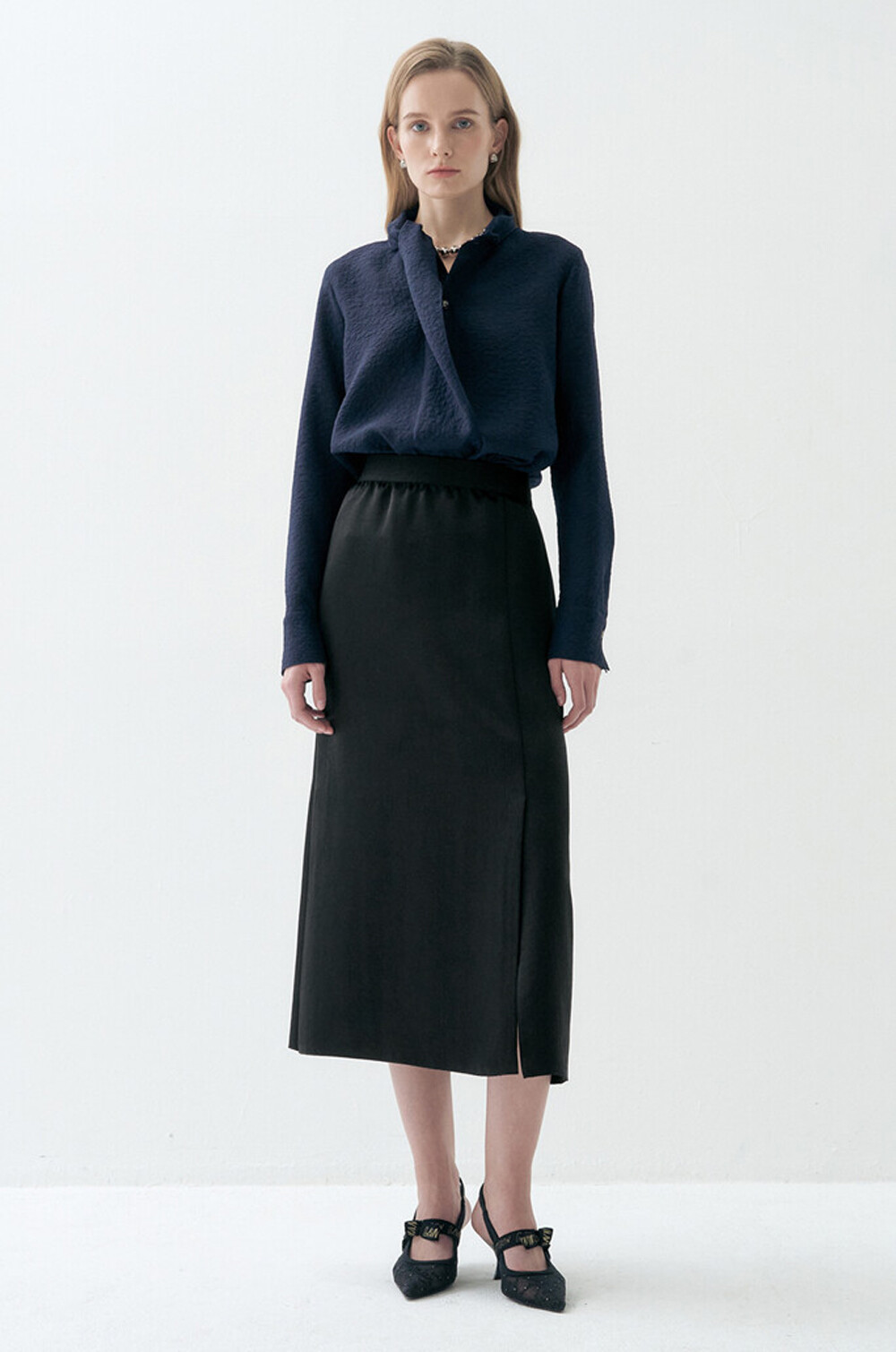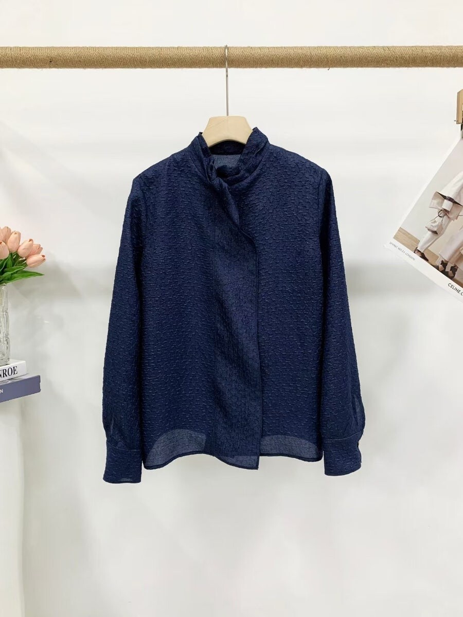 랑방컬렉션 크링클 패널 모크넥 블라우스