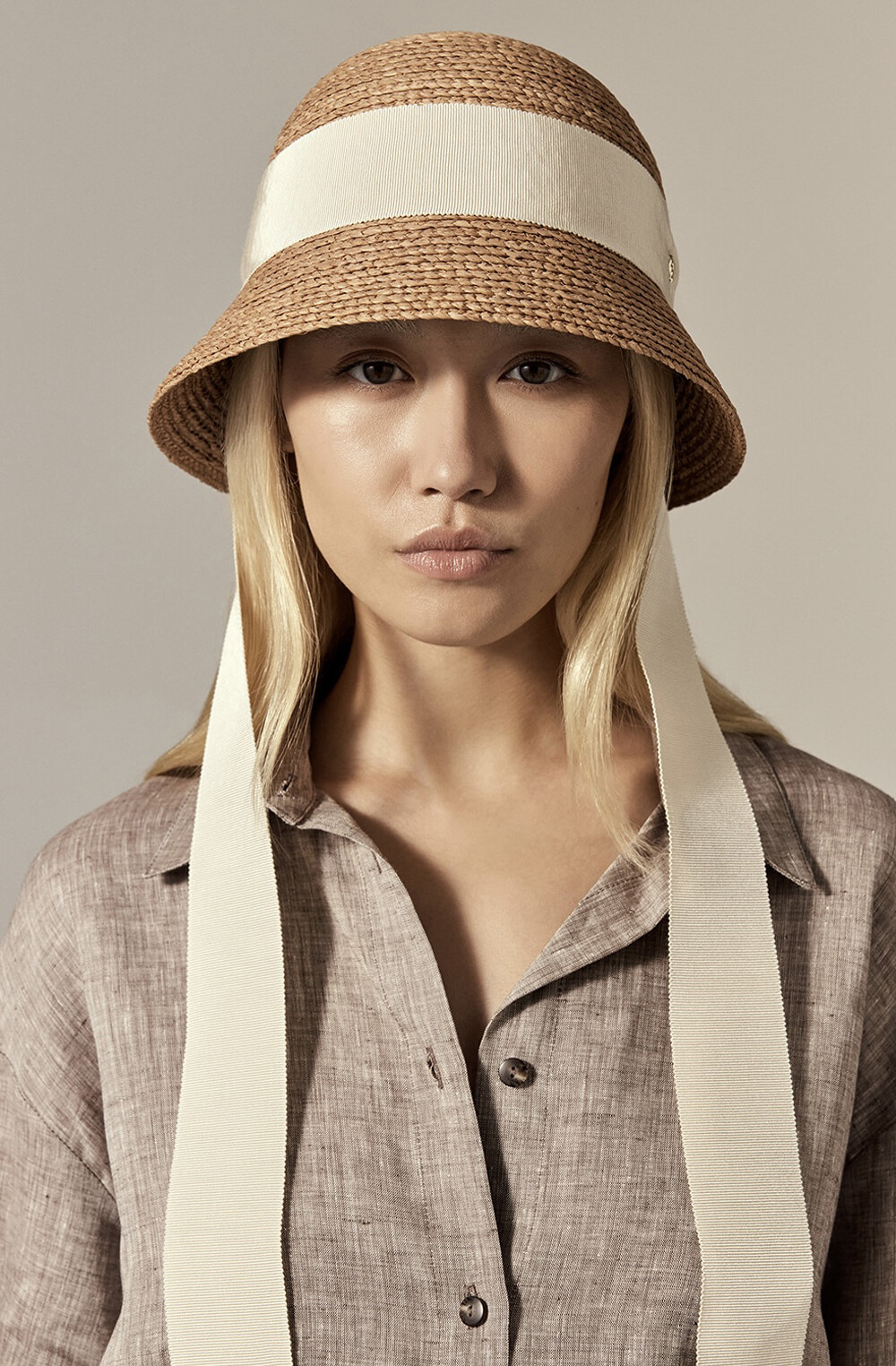 - 라피아 브레이드와 리본 트림이 로맨틱한 무드를 선사하는 피펫 클로슈.