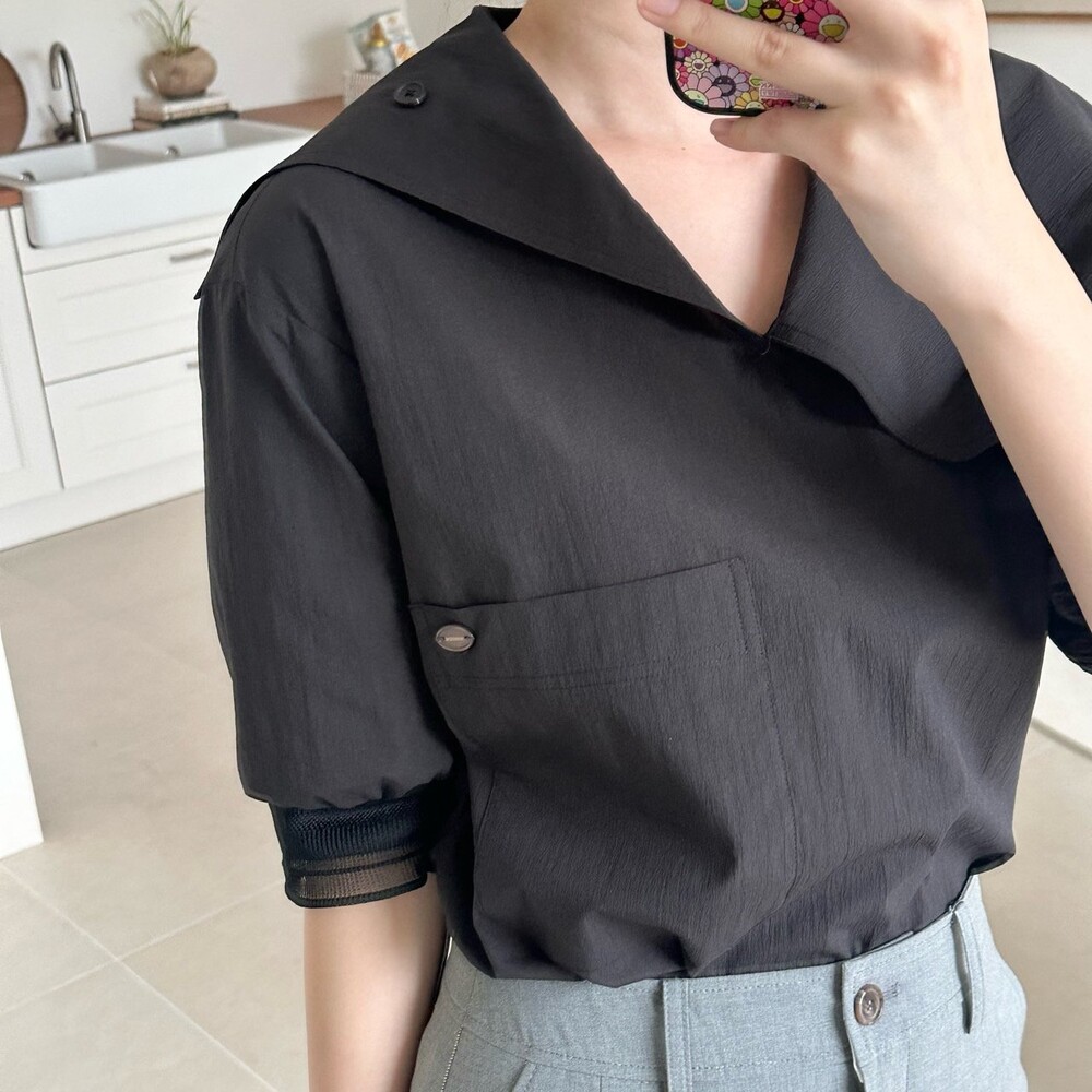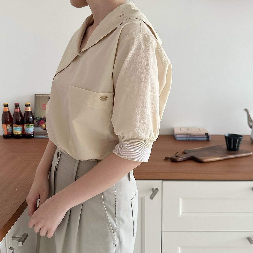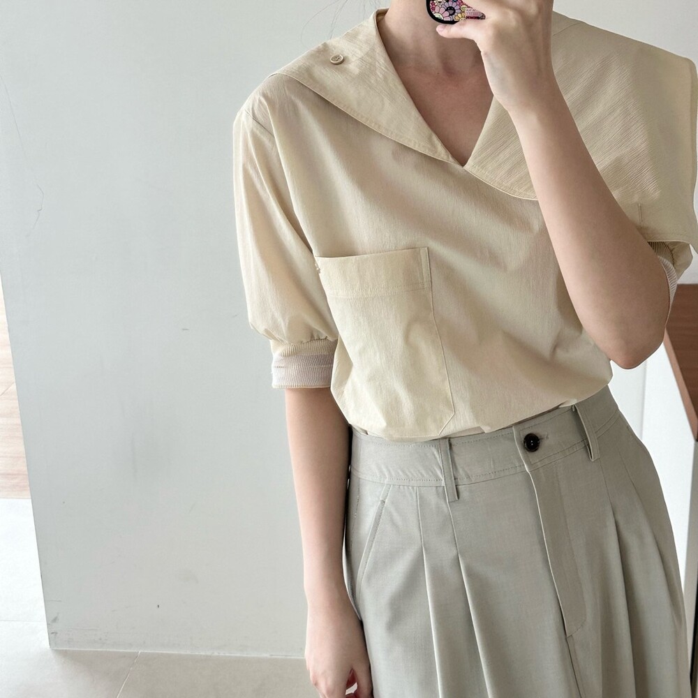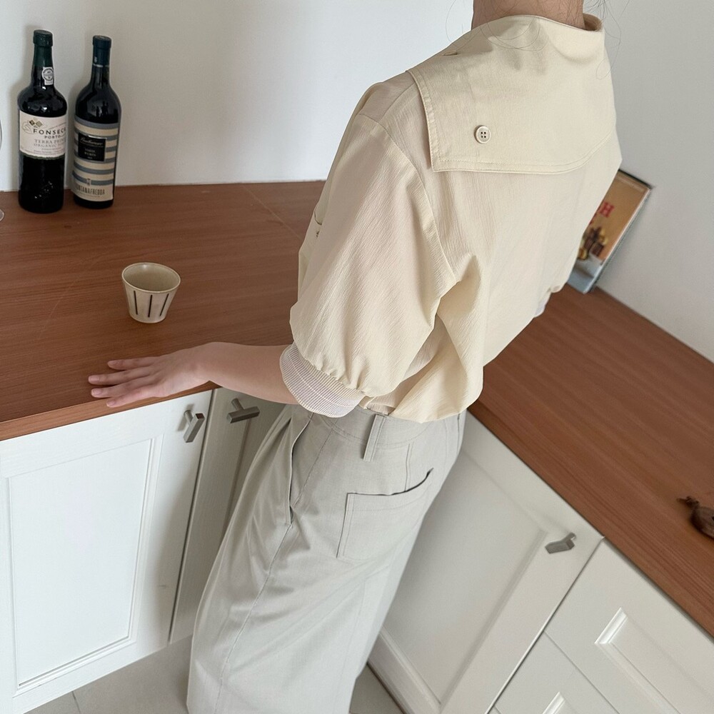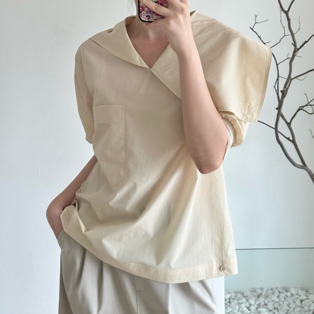 델라 패널 하프 슬리브 블라우스