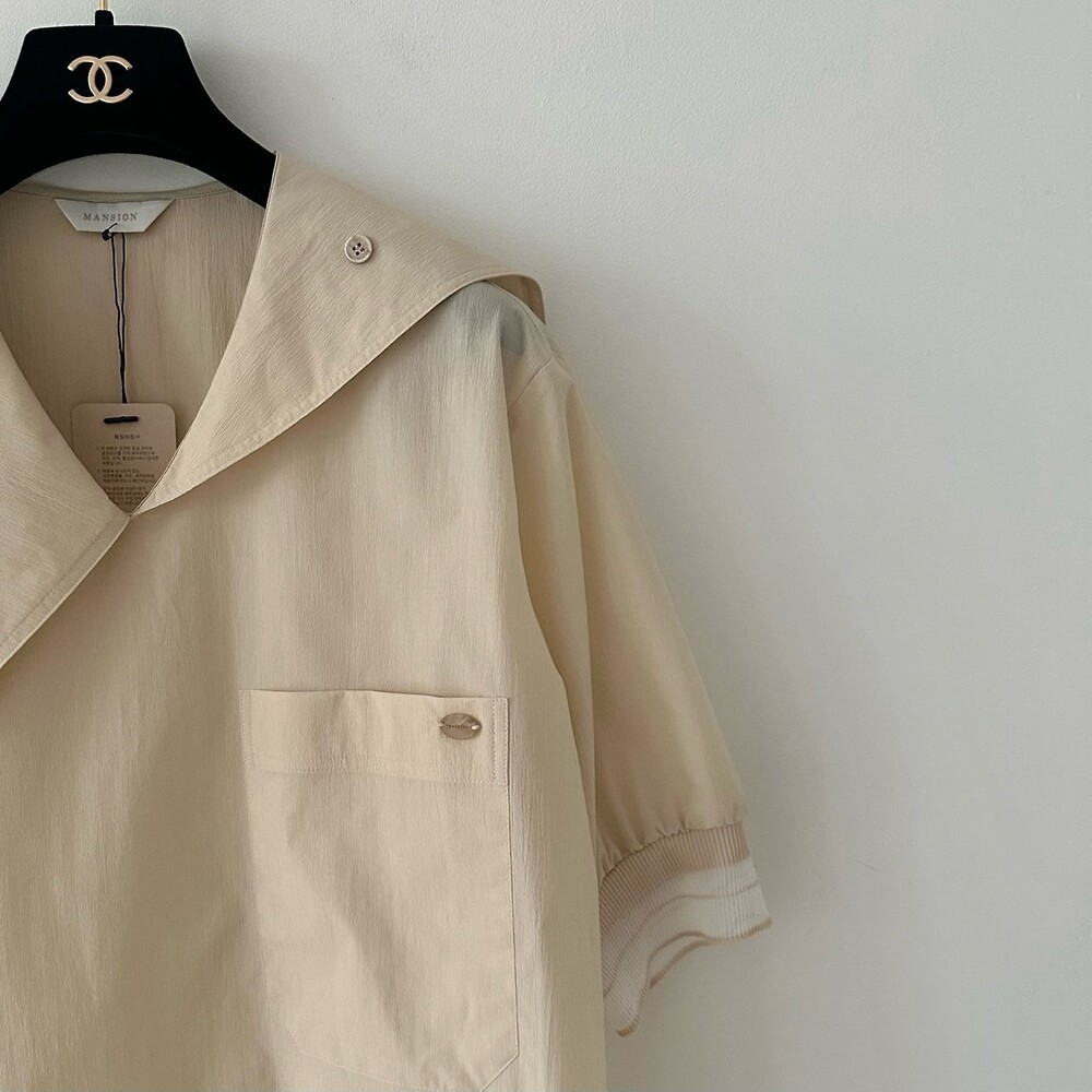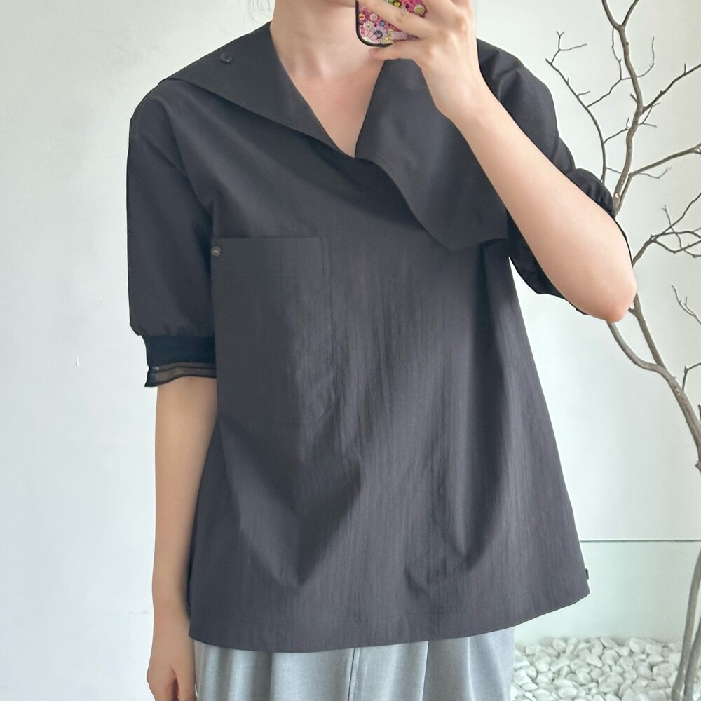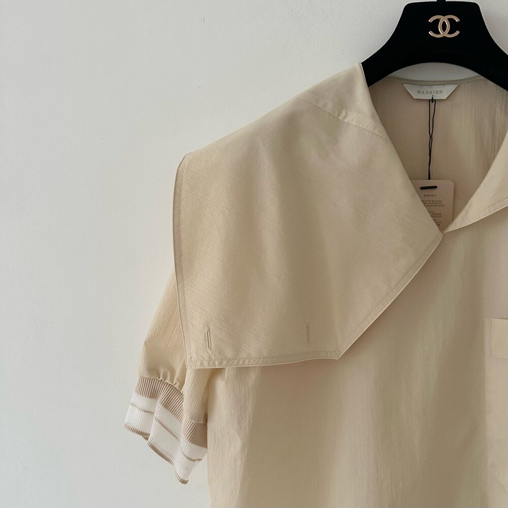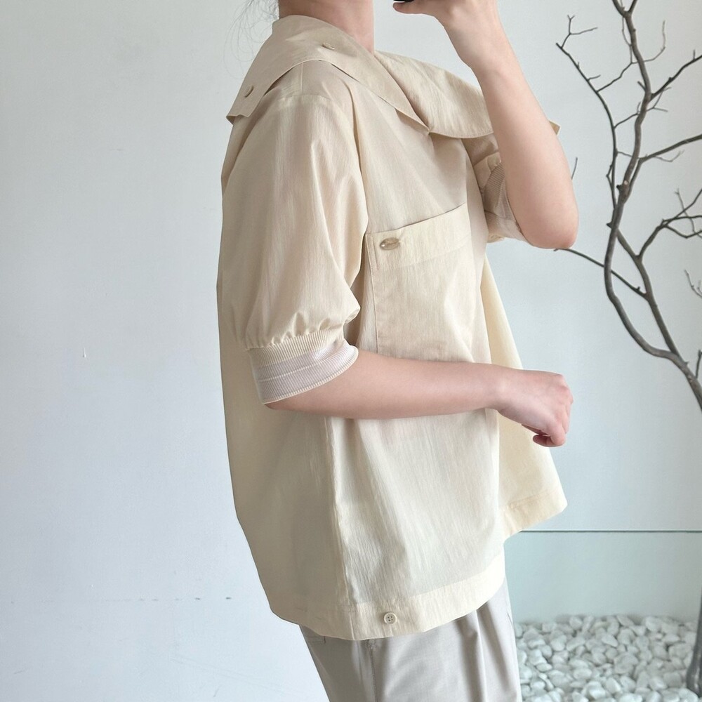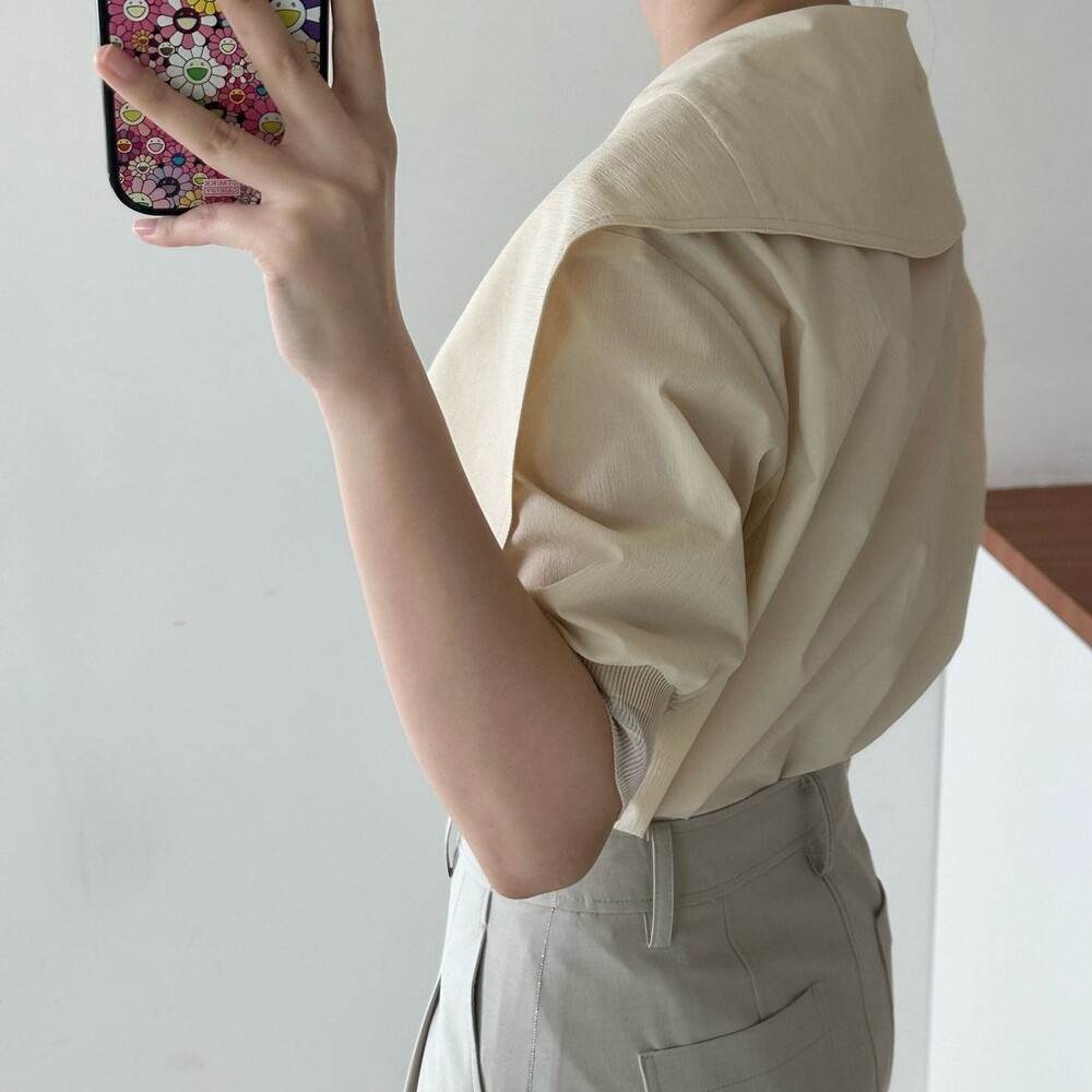 델라 패널 하프 슬리브 블라우스