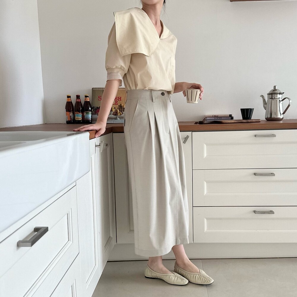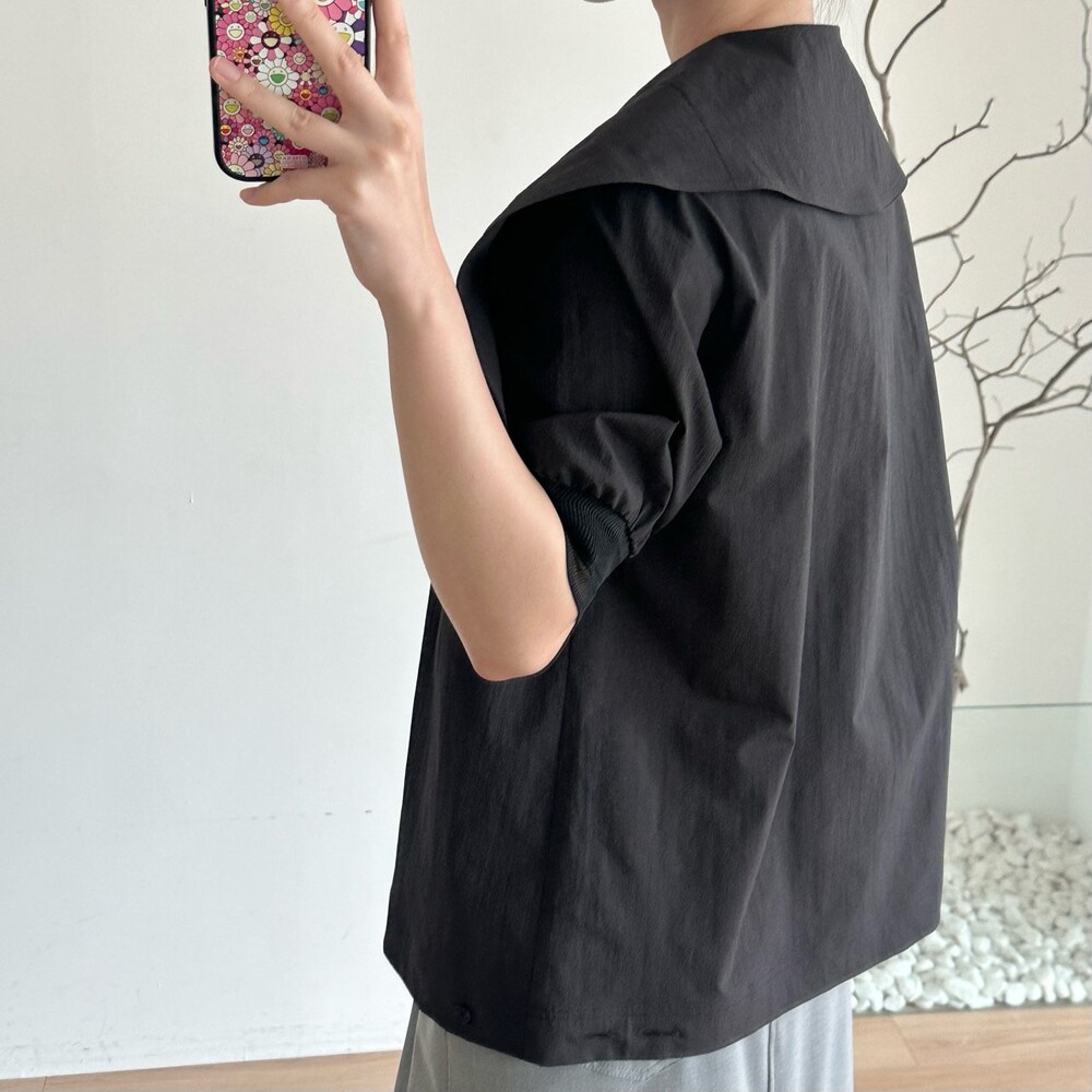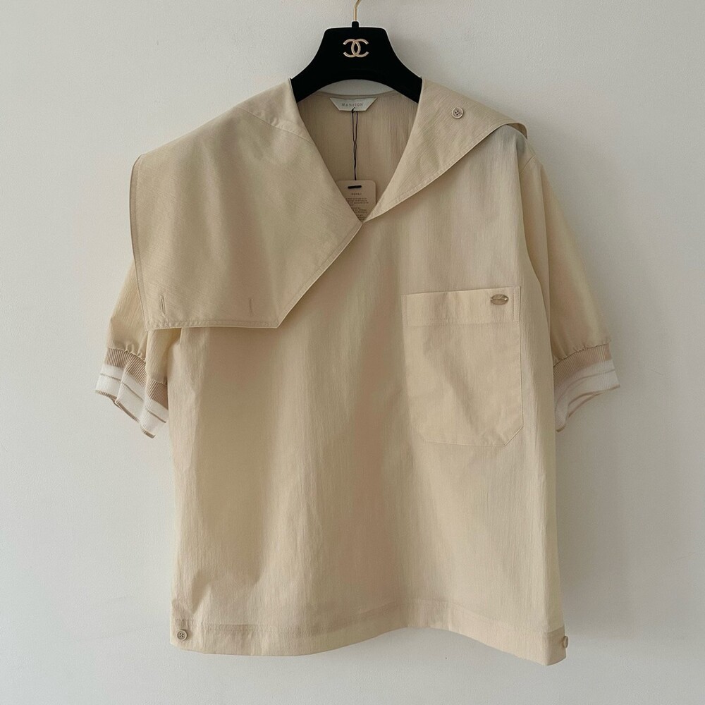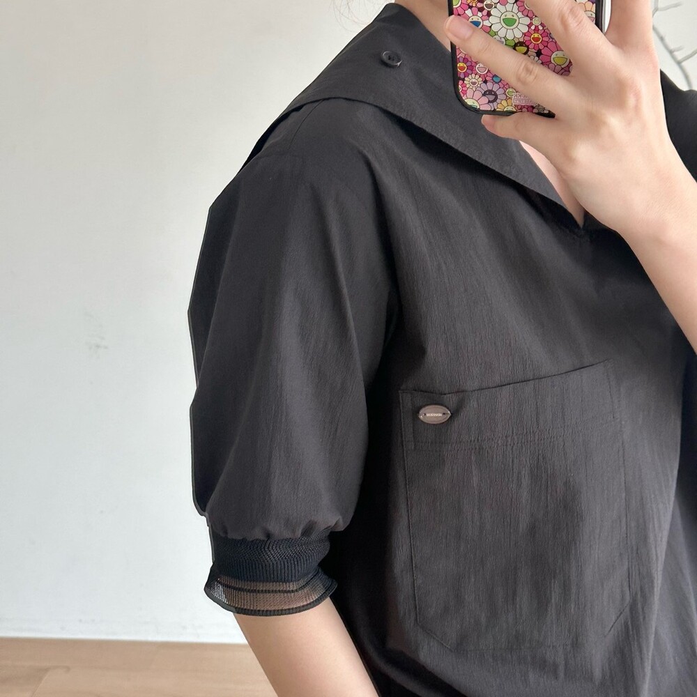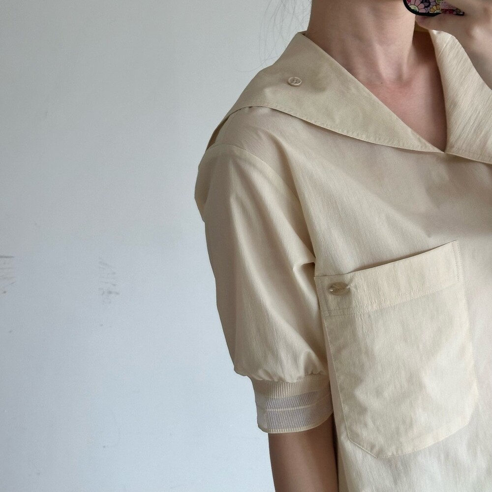 델라 패널 하프 슬리브 블라우스