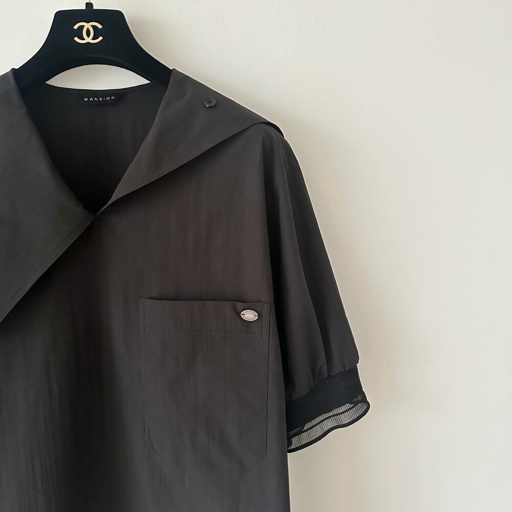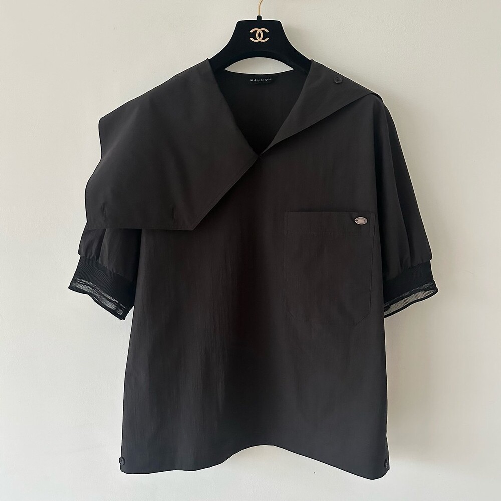 맨션. 델라 패널 하프 슬리브 블라우스