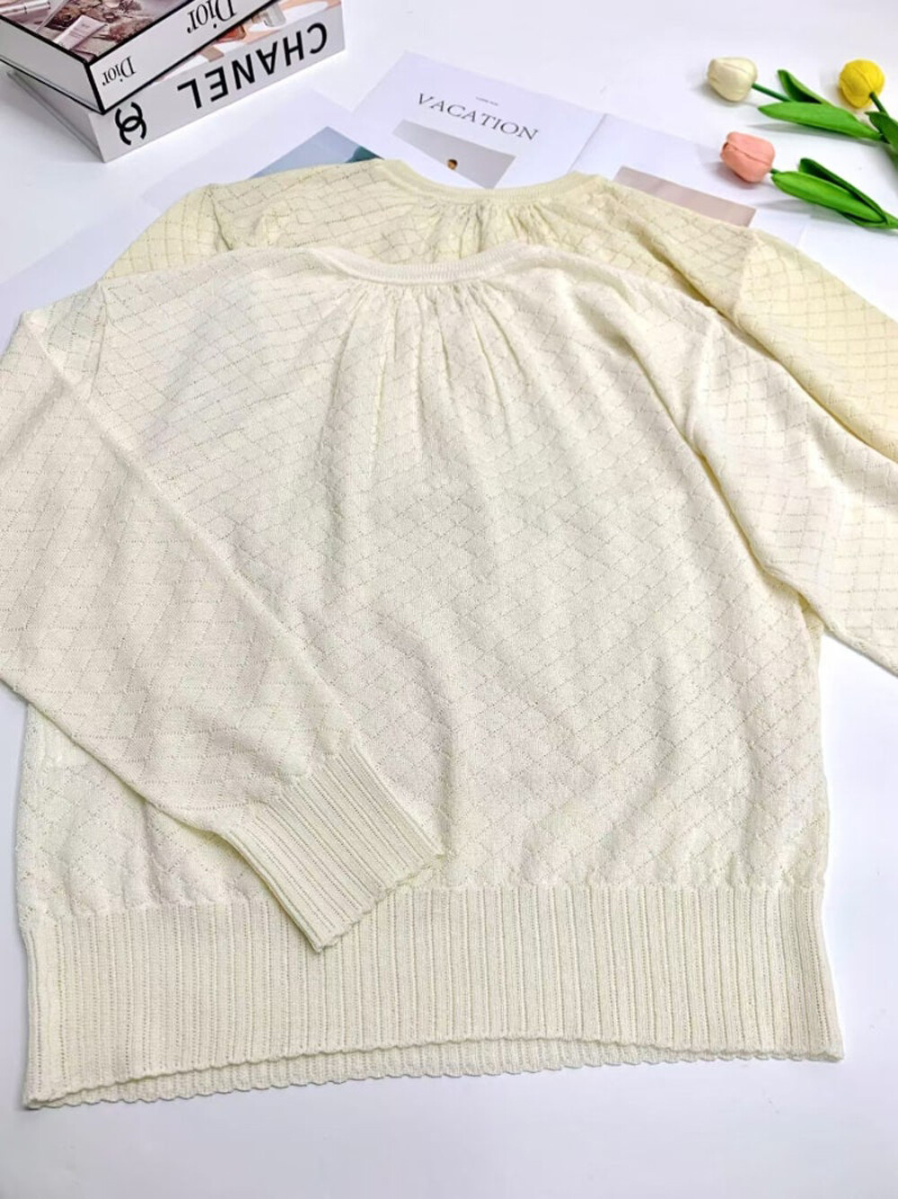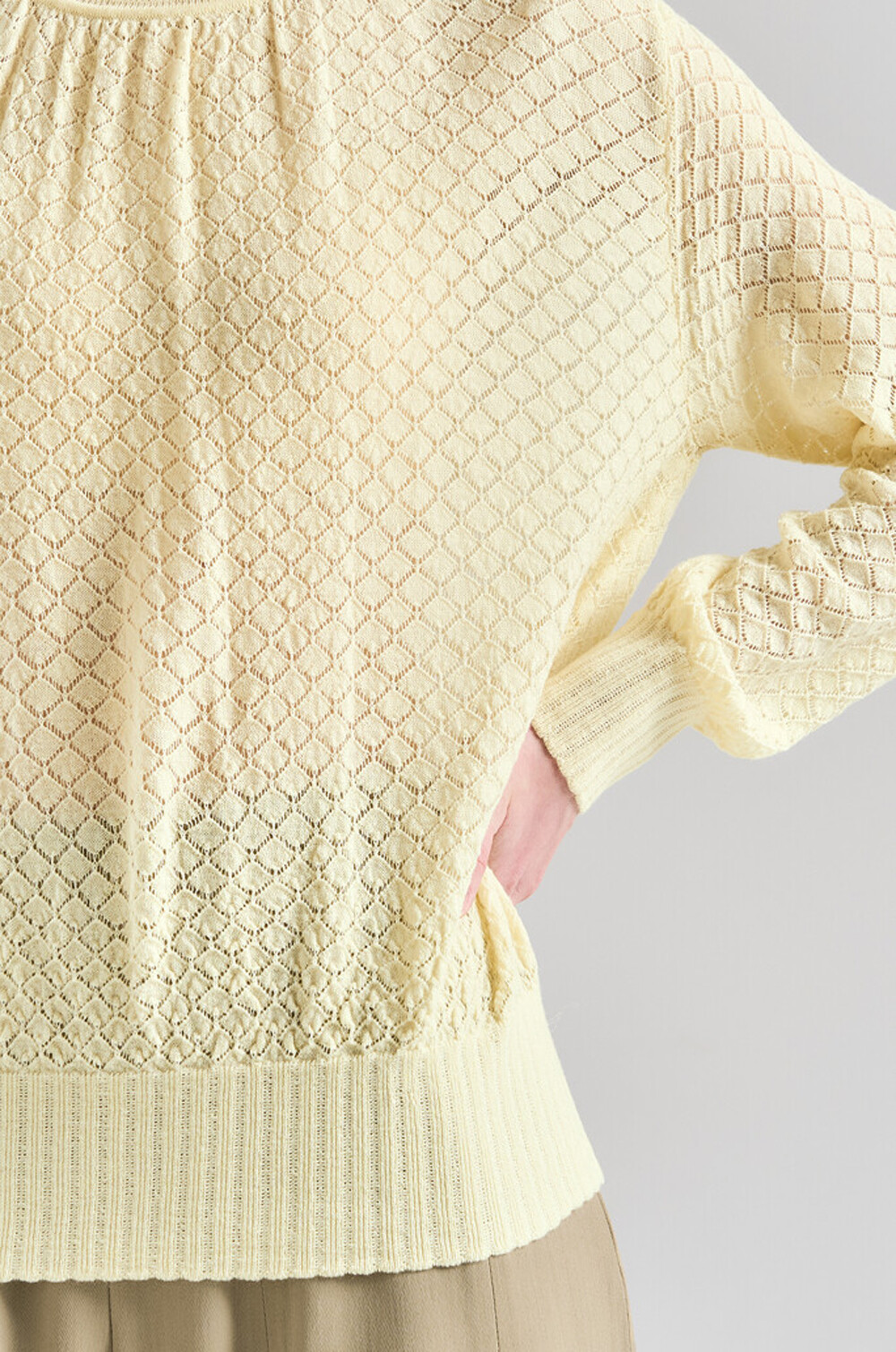 - 소맷단과 밑단에 리브 마감과 스캘럽 디자인