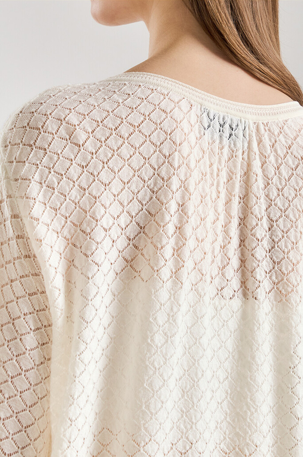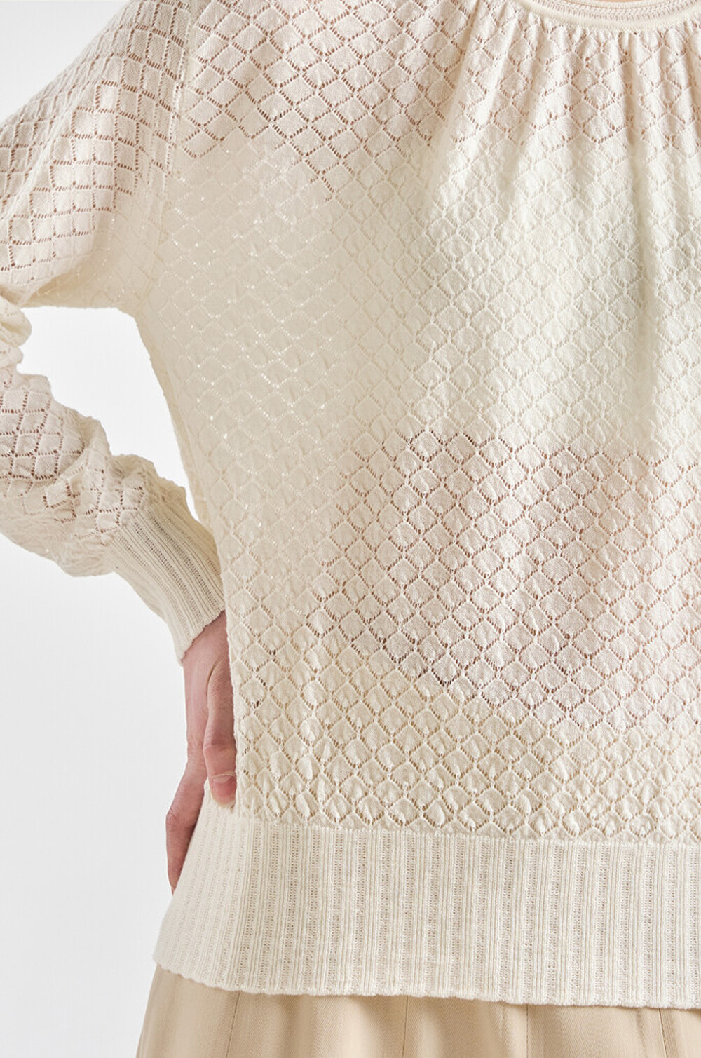 랑방컬렉션 울 다이아몬드 시스루 니트 탑